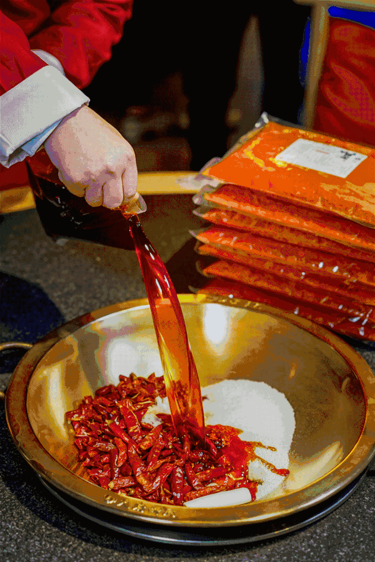 天府神厨全部采用一次性锅底,24种植物香料经“独家配比”外加自动化炒制,麻辣鲜香且不干不燥,让人彻底沉浸在火锅带来的享受中。
