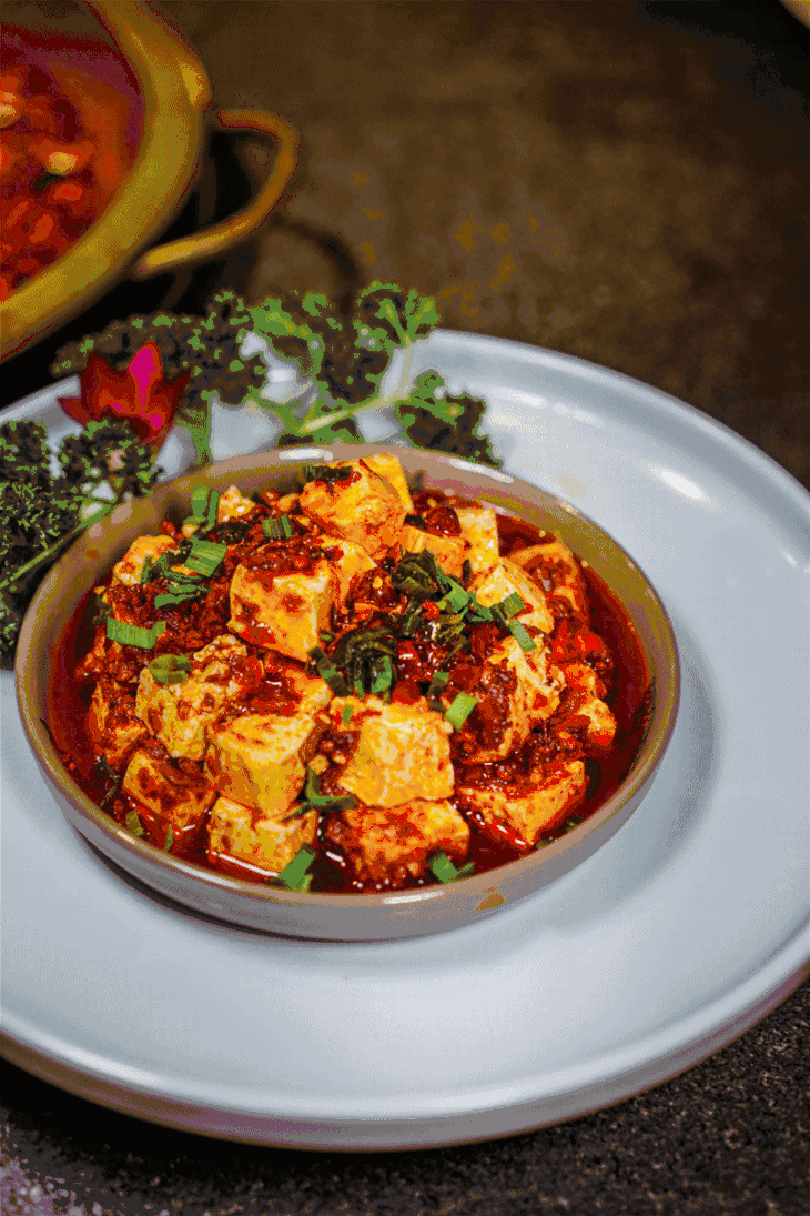 一盘麻辣鲜香已深入骨髓的麻婆豆腐上桌了!