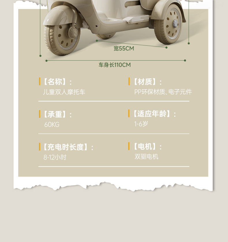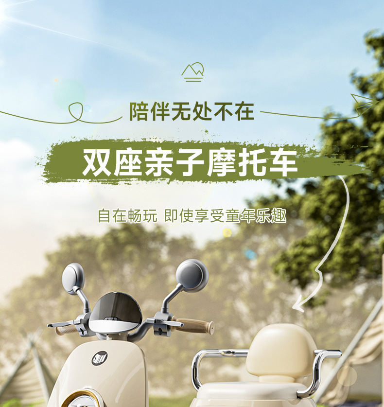 【双座亲子摩托车】儿童电动摩托车三轮车男女孩宝宝电瓶车小孩可坐人充电遥控玩具车