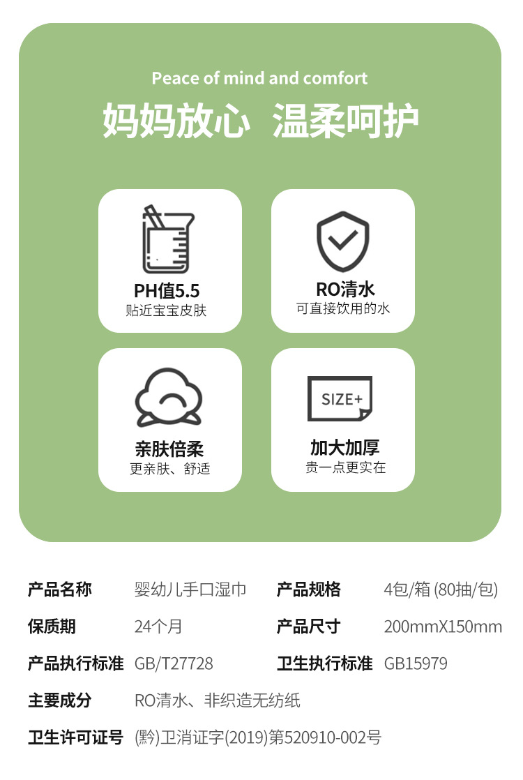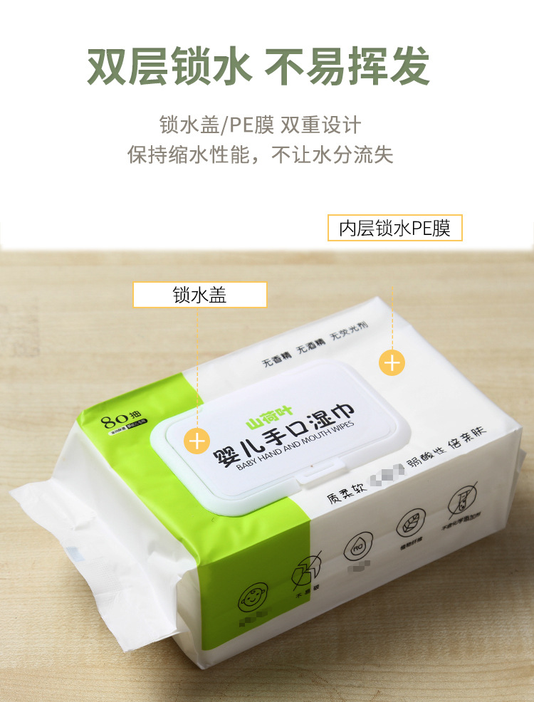 【湿巾】婴儿湿纸巾加厚手口婴儿湿巾80抽带盖