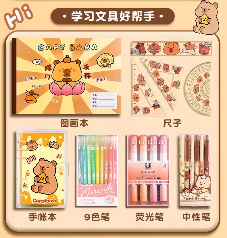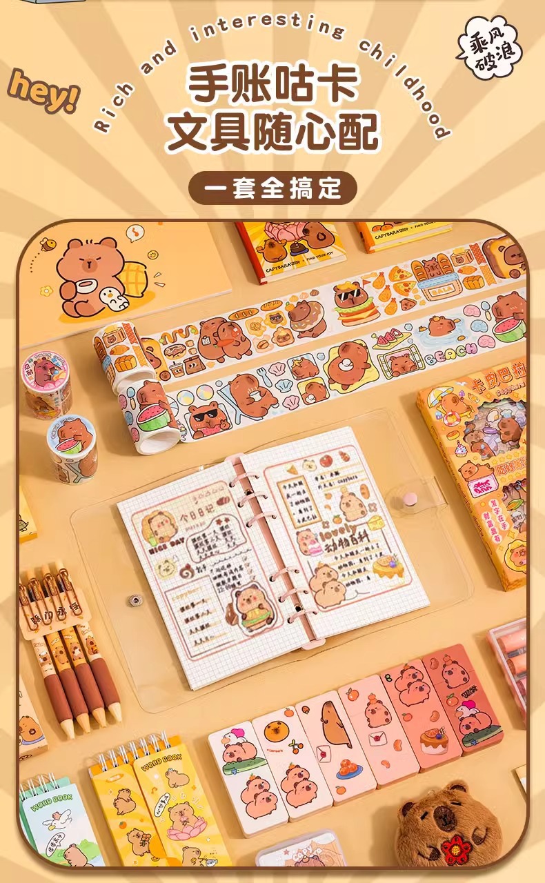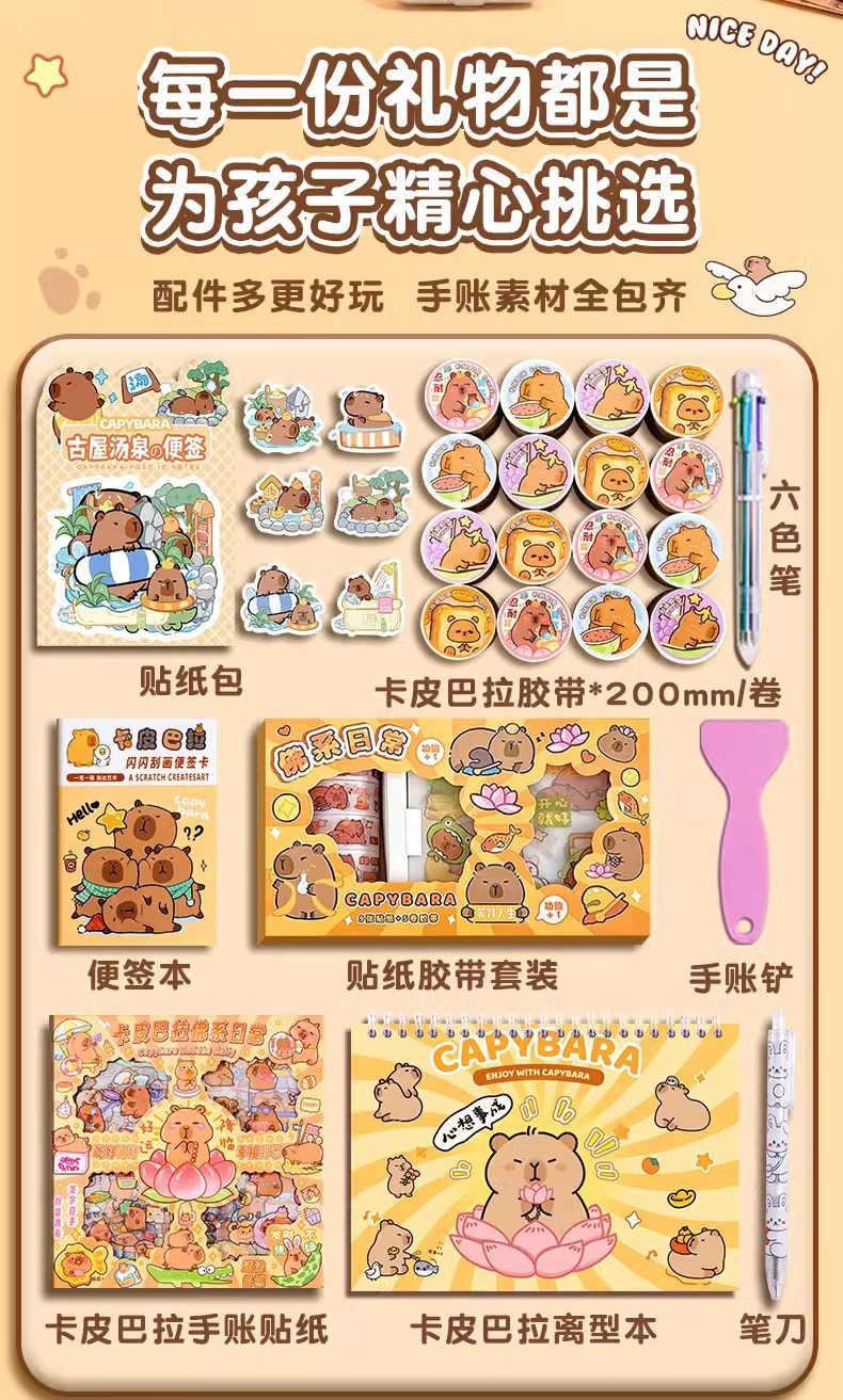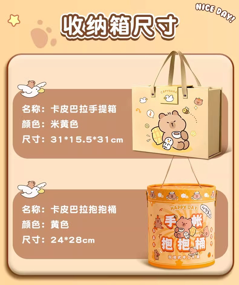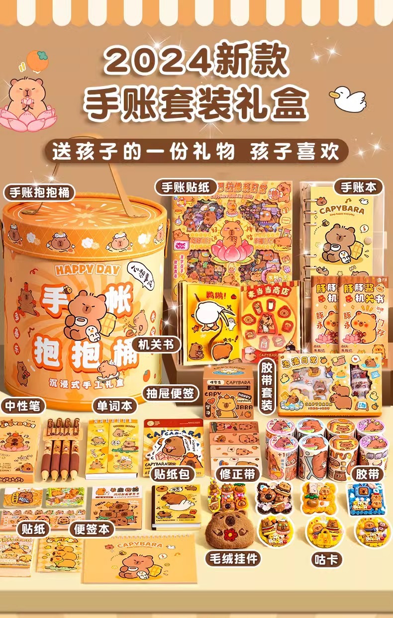 <有书独家>开学季!【放下手机平板,丰富趣味童年!】卡皮巴拉开学季手账套装 可爱卡通玩具抱抱桶礼盒 儿童文具生日礼物-QB