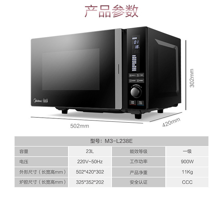 【家用电器】Midea/美的 M3-L238E智能微波炉家用变频光波炉多功能微蒸烤一体