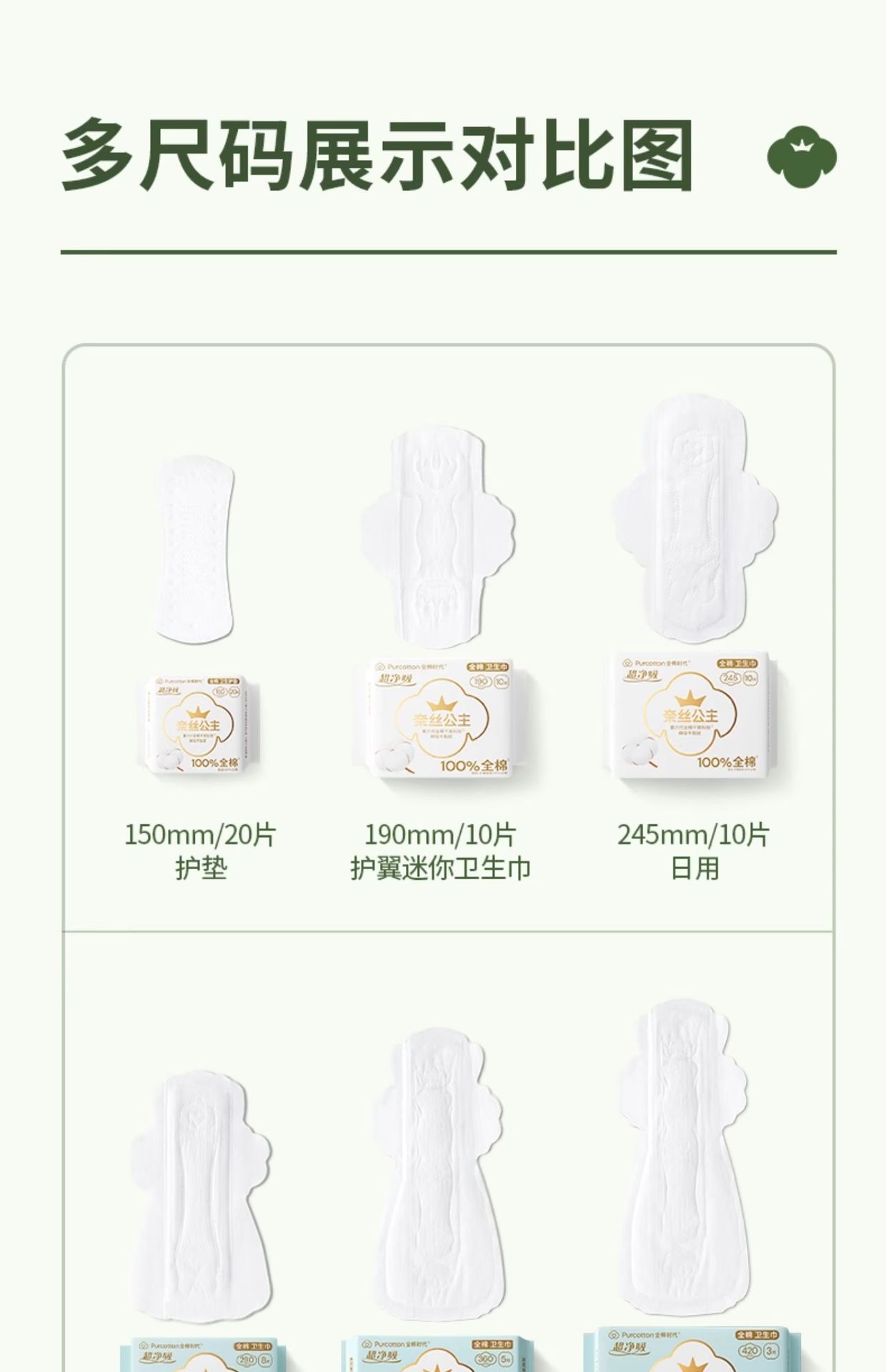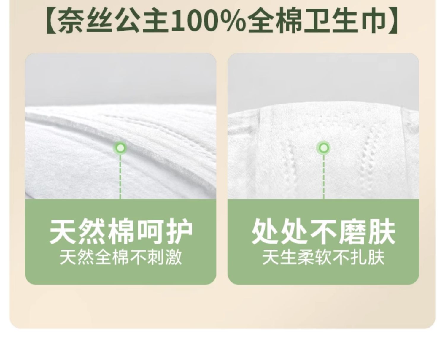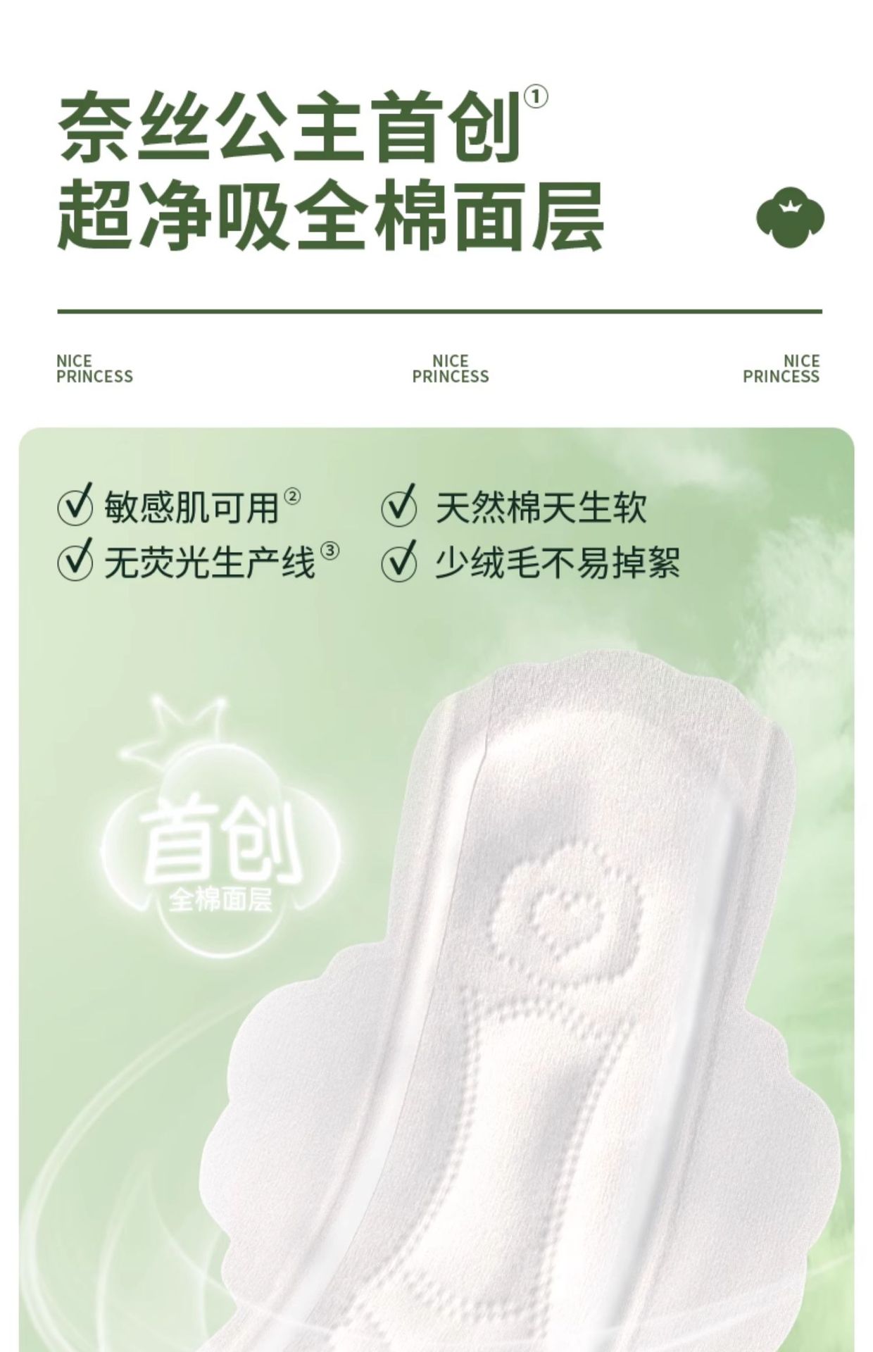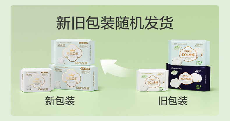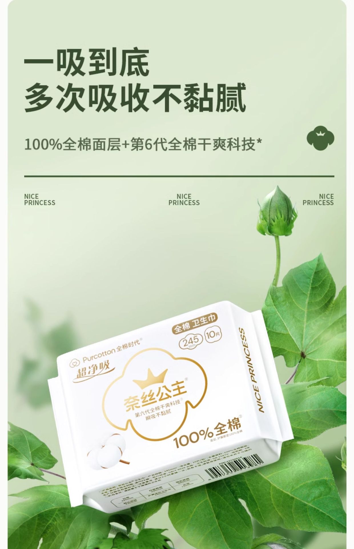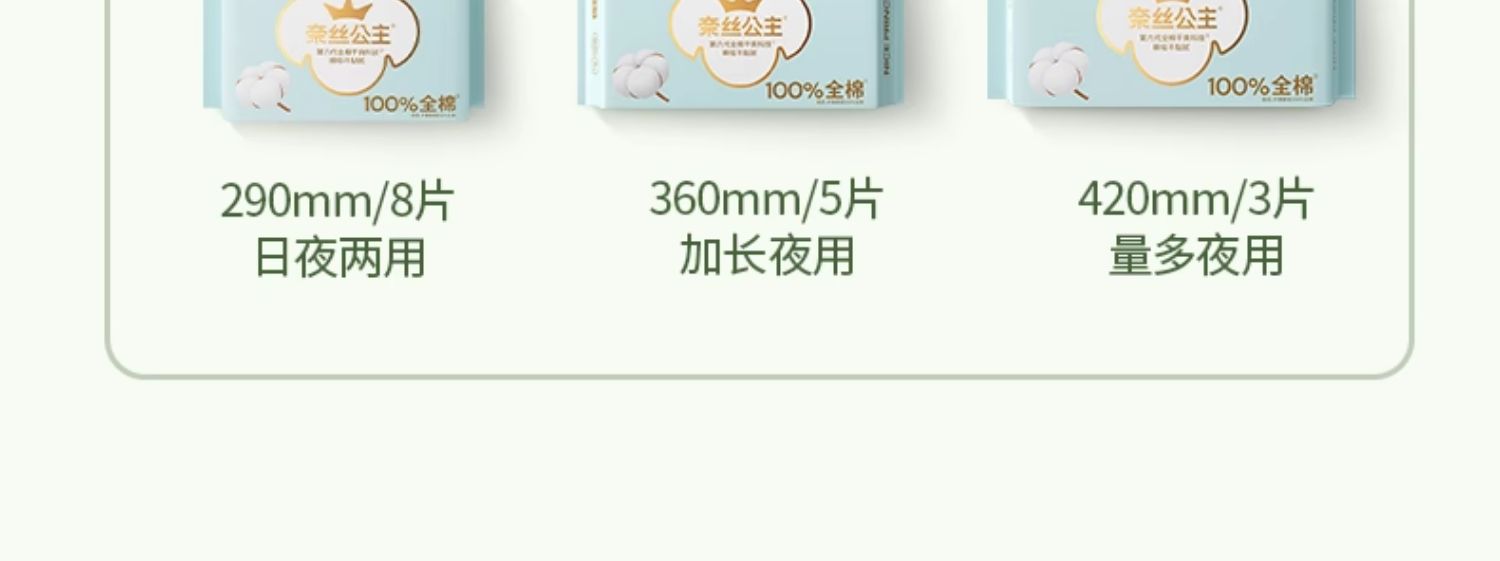 全棉时代奈丝公主超净吸卫生巾290mm8片纯棉姨妈巾透气防漏