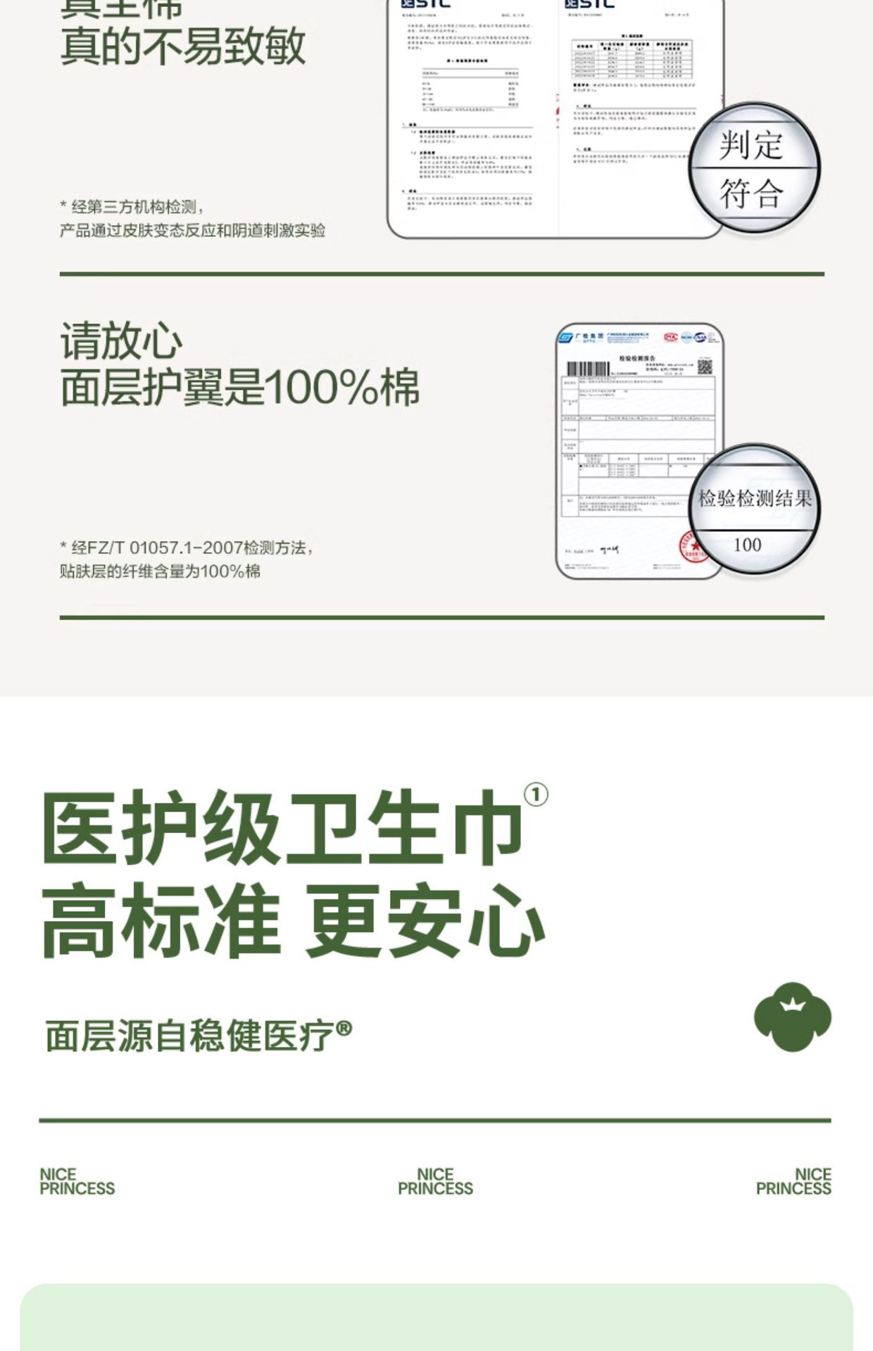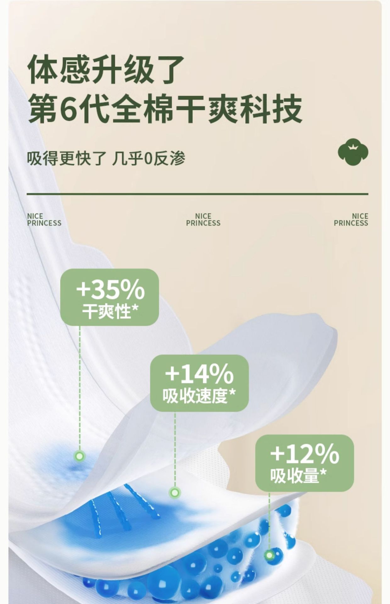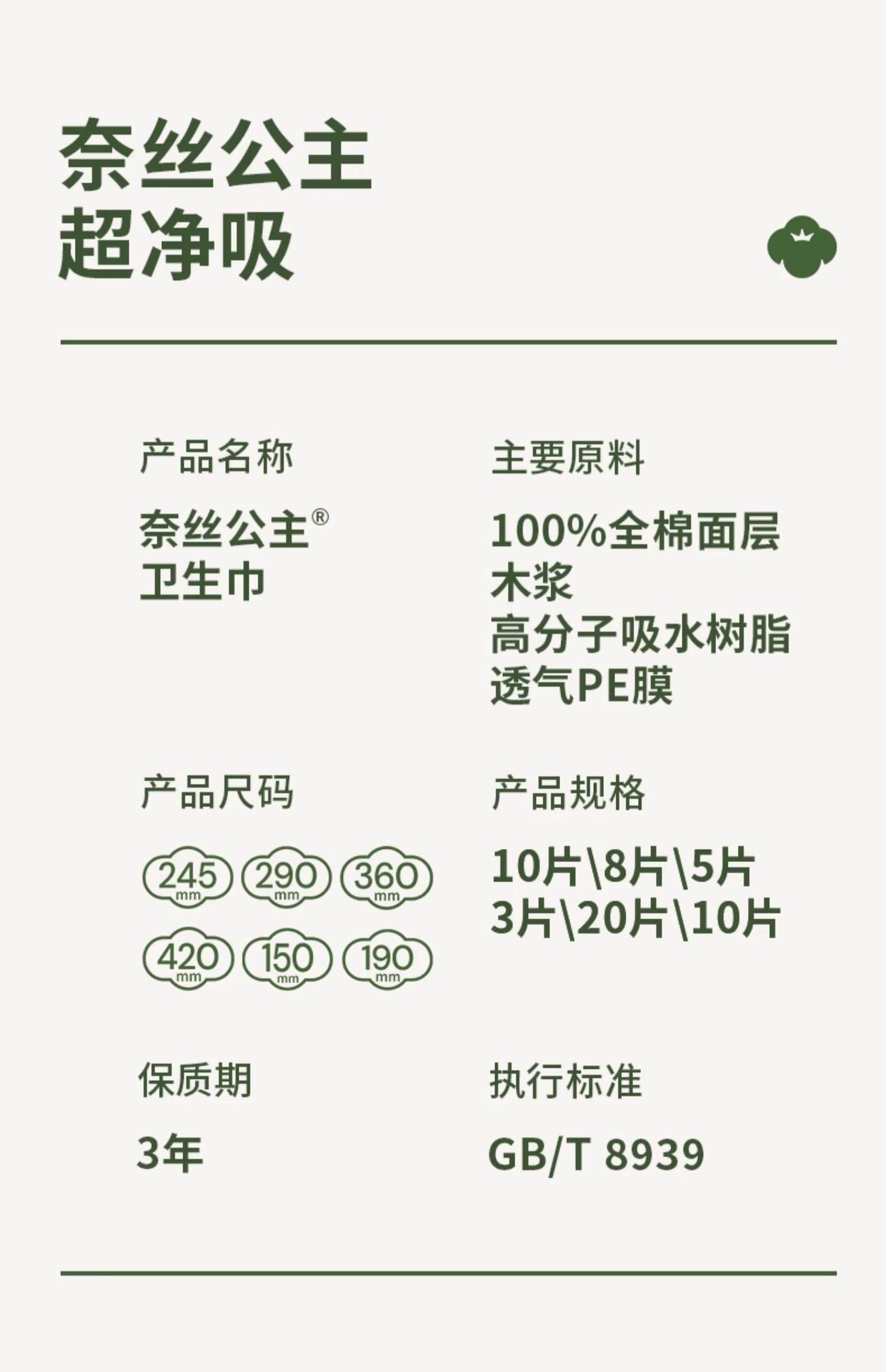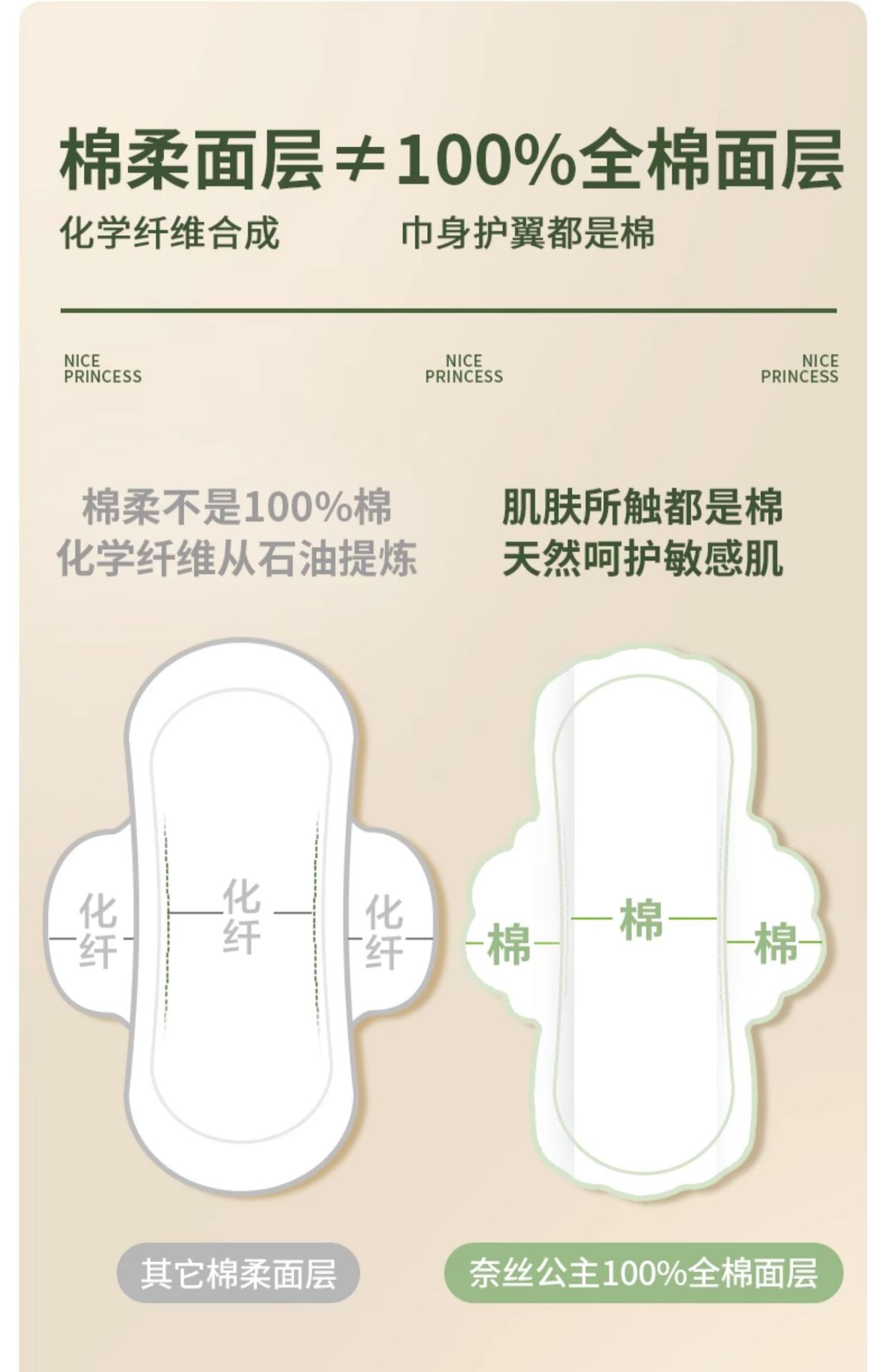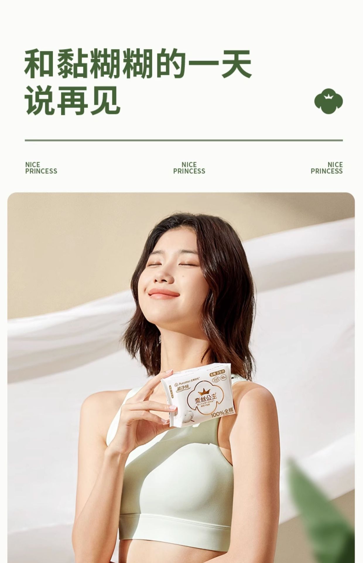 全棉时代奈丝公主超净吸卫生巾290mm8片纯棉姨妈巾透气防漏