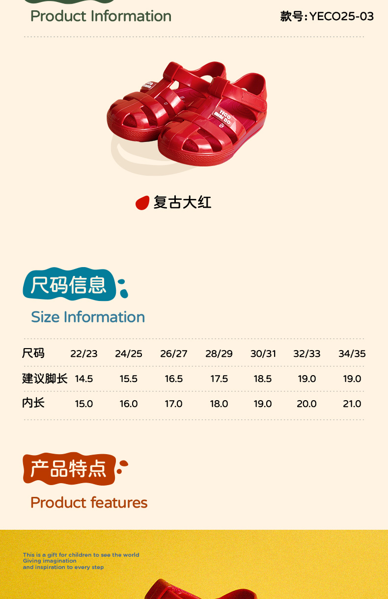 YECOMINIDD 2025新款凉鞋儿童罗马鞋宝宝男童洞洞鞋沙滩女童透气YECO25-03