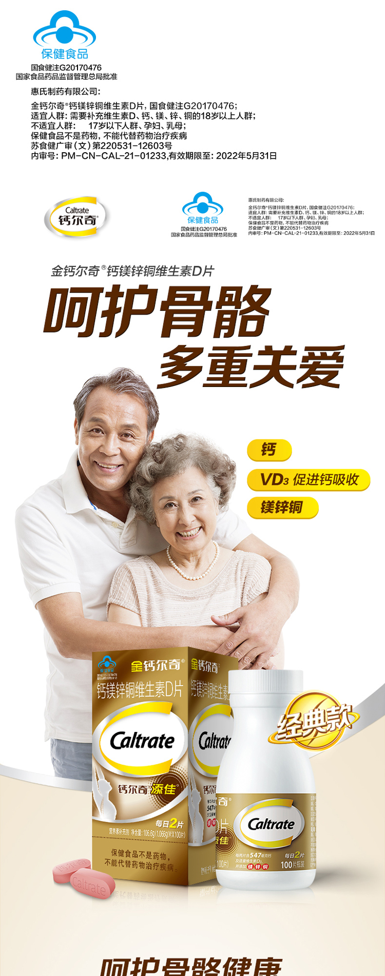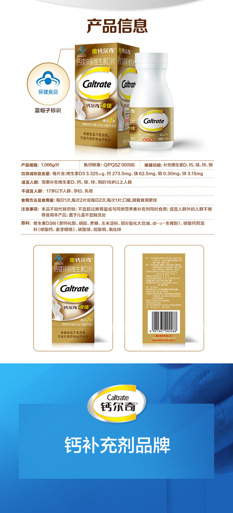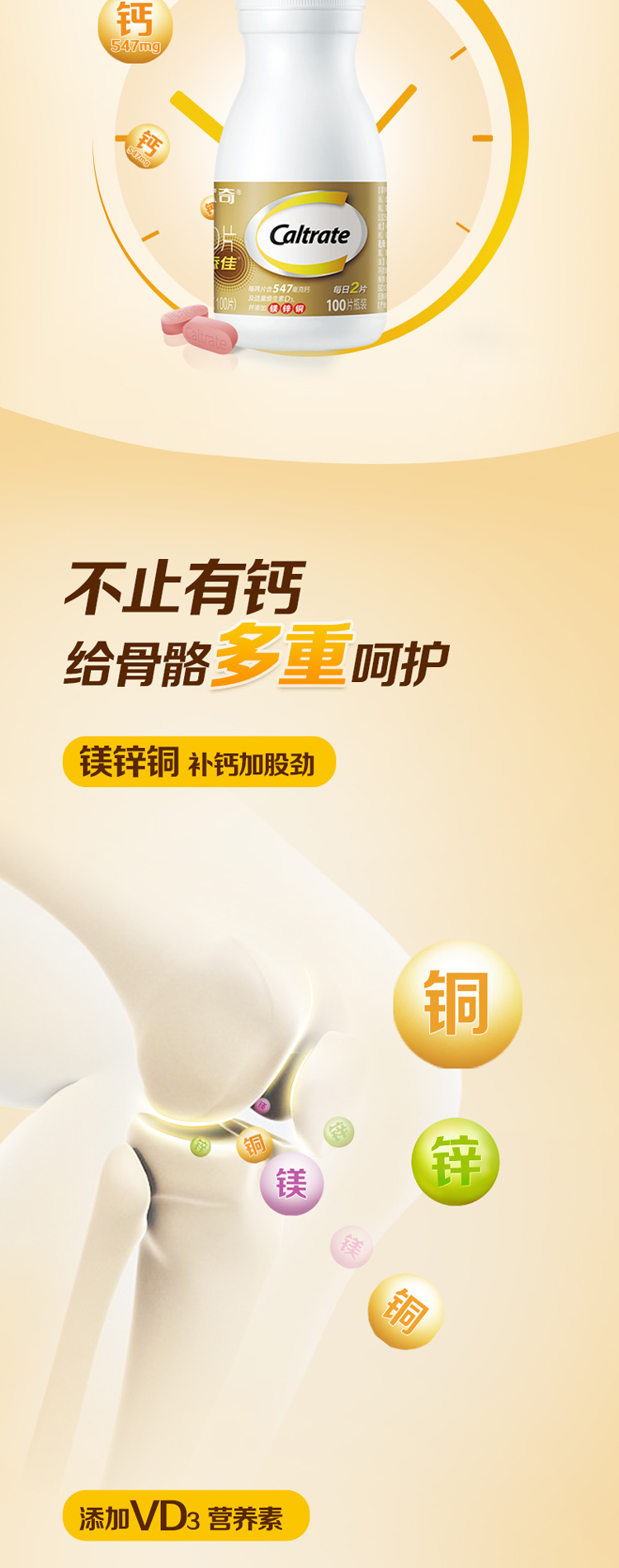 金钙尔奇钙镁锌铜维生素D片添佳钙片100片