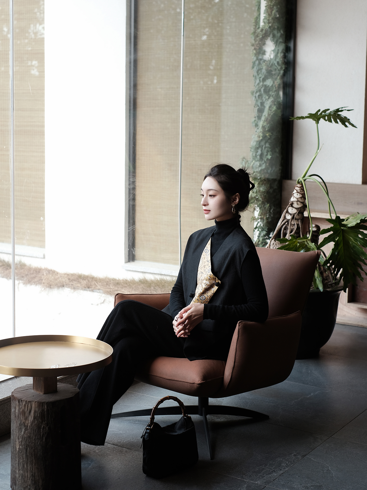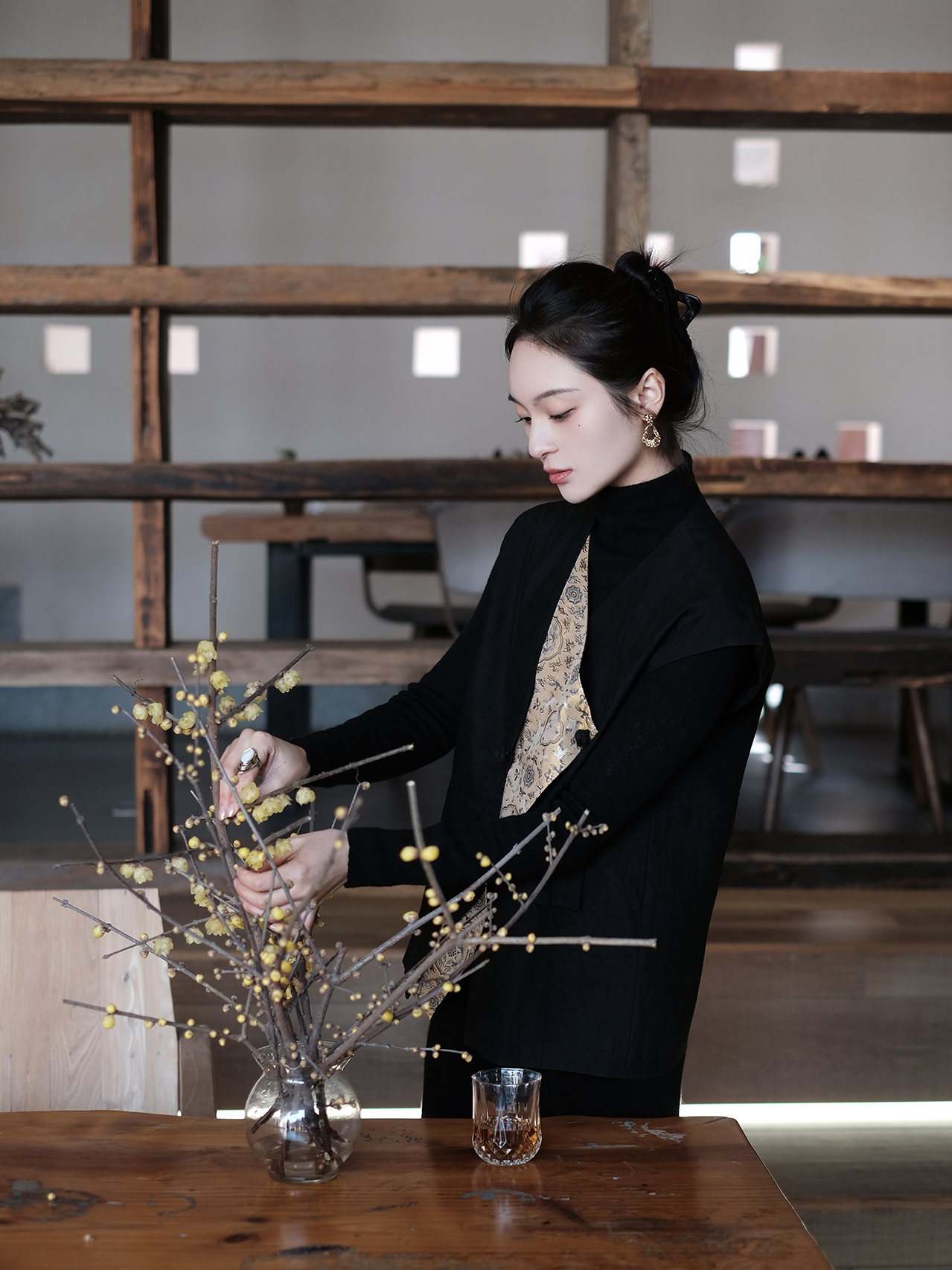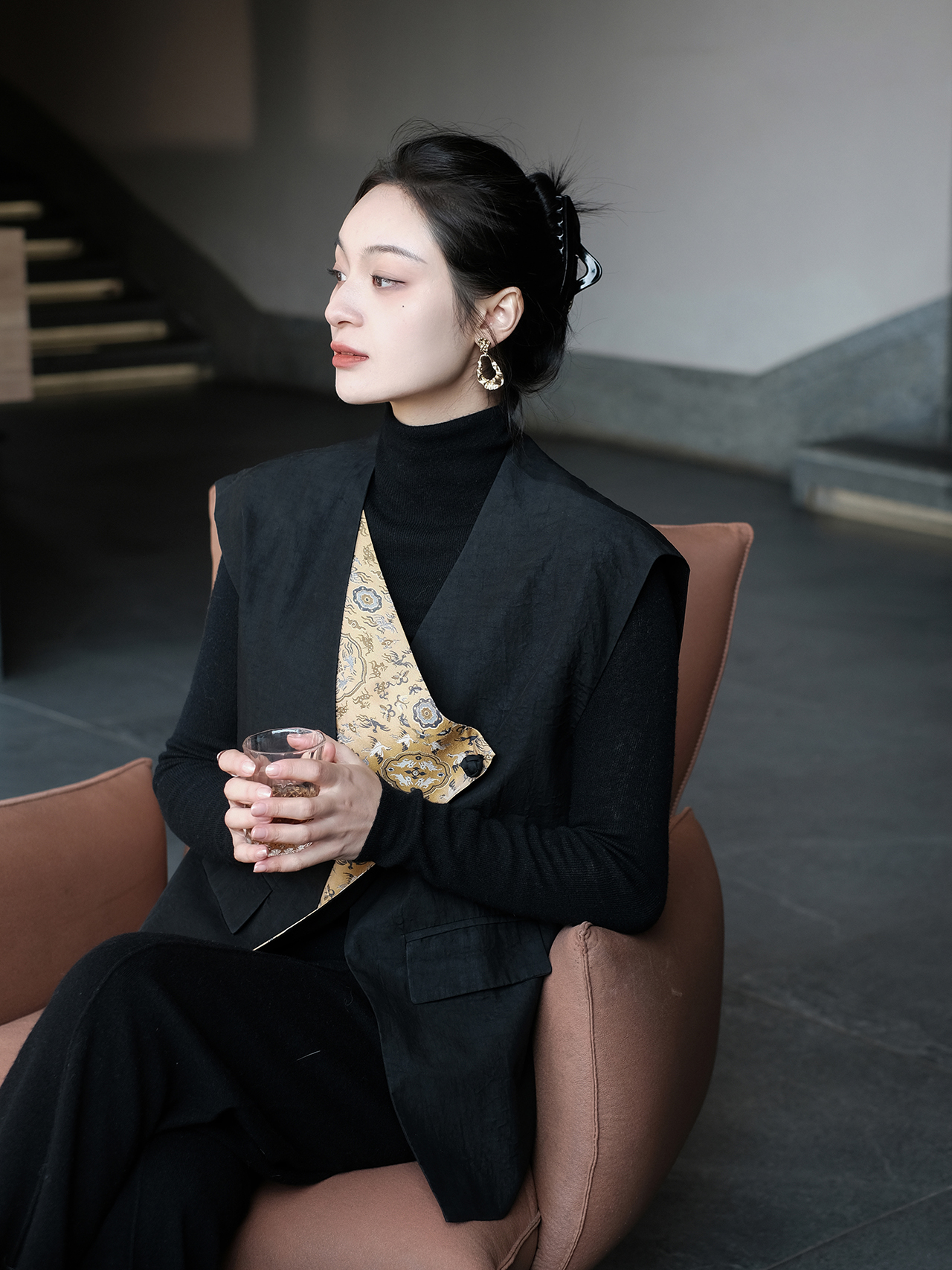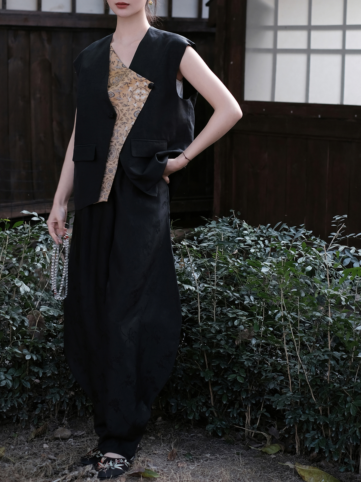 盛唐牡丹 |龟纹香云纱拼宋锦马甲