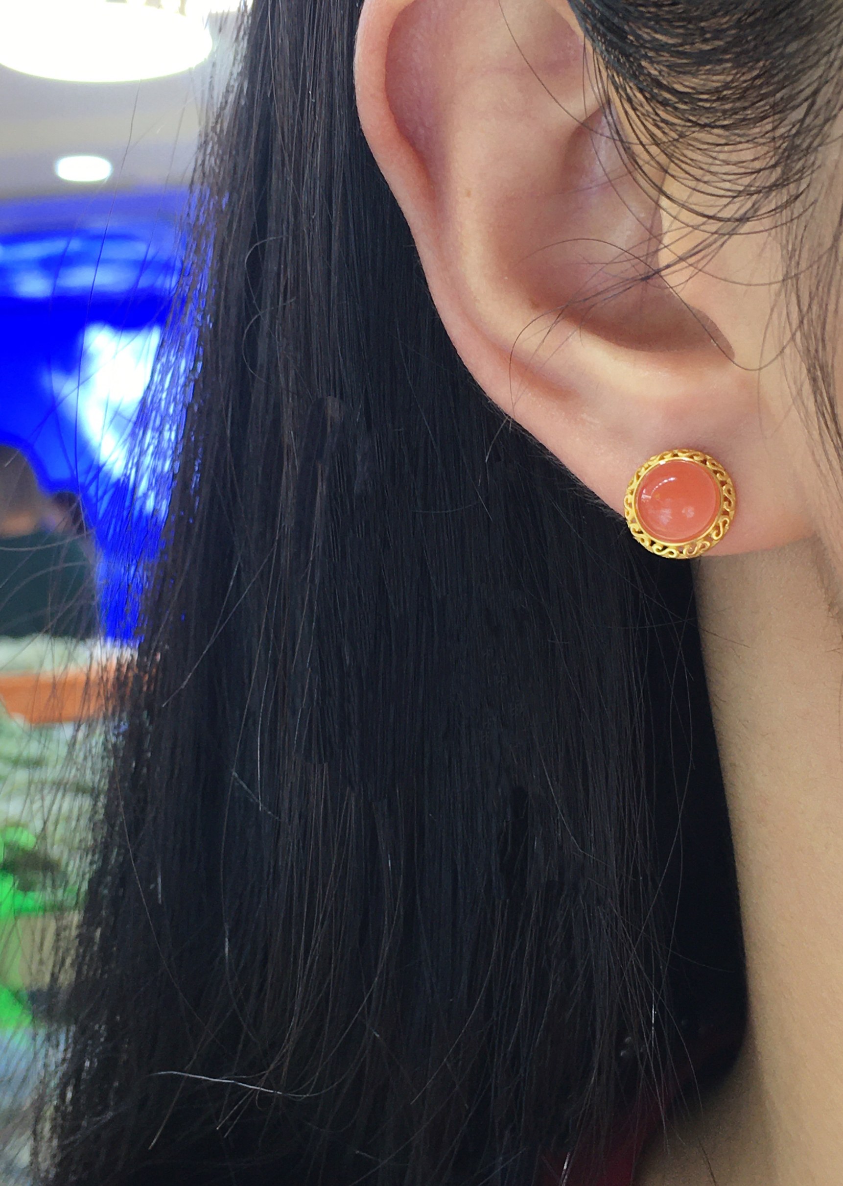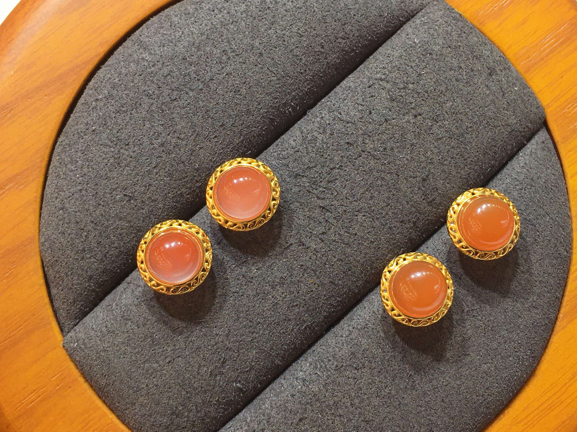 天然樱桃南红圆形耳钉✨ s925银镶嵌[爱心]尺寸7毫米左右🍁颜色红润冰透 [玫瑰]简约精致 佩戴特别美