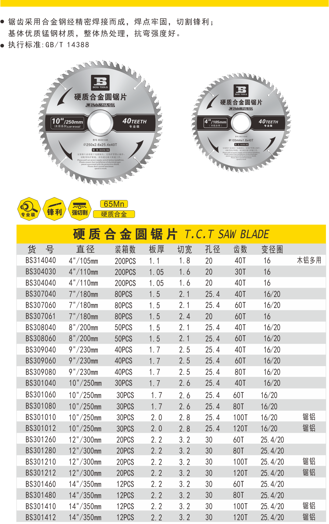 波斯 硬质合金圆锯片 黑武士 4"×30T BS304030