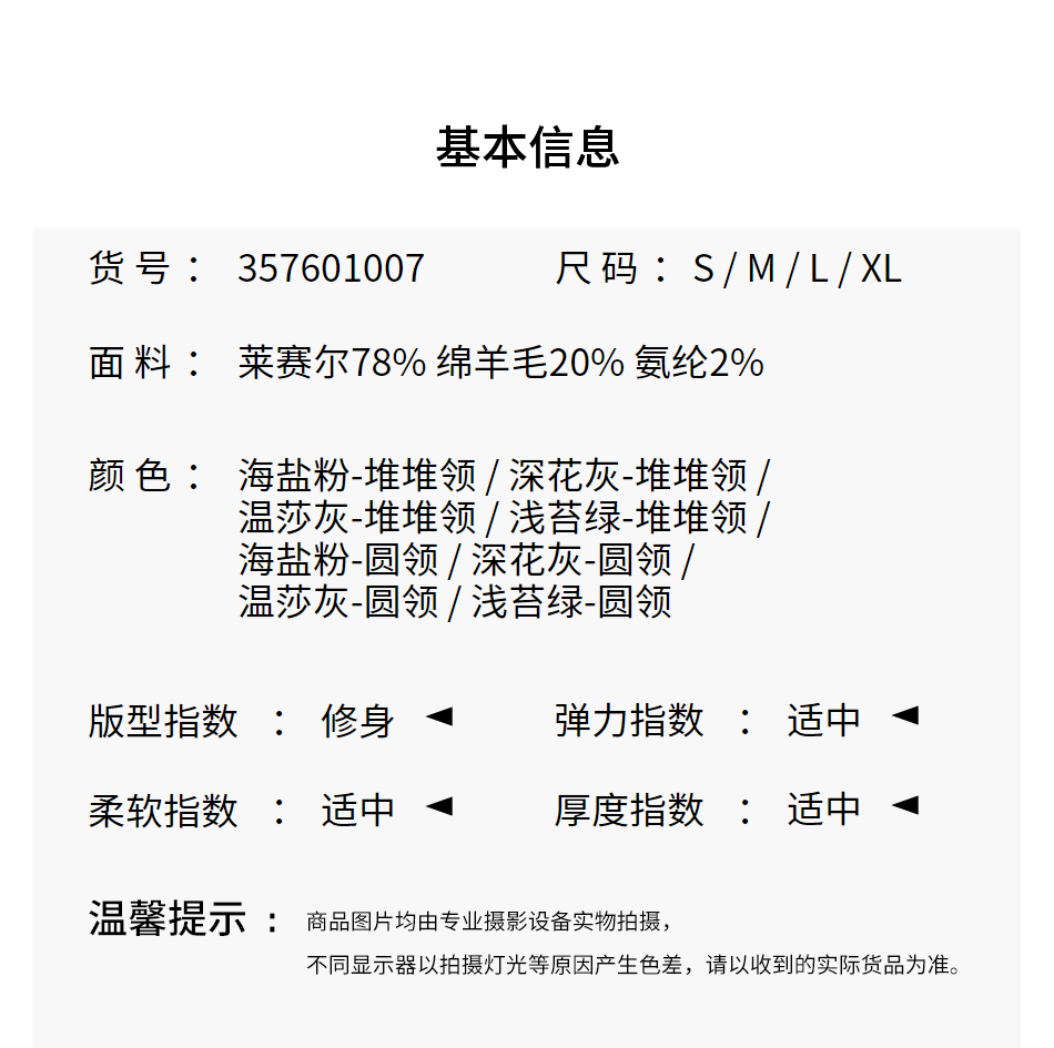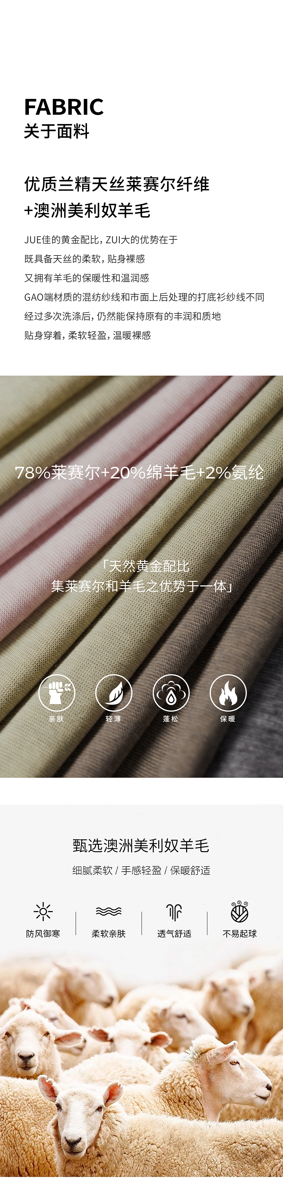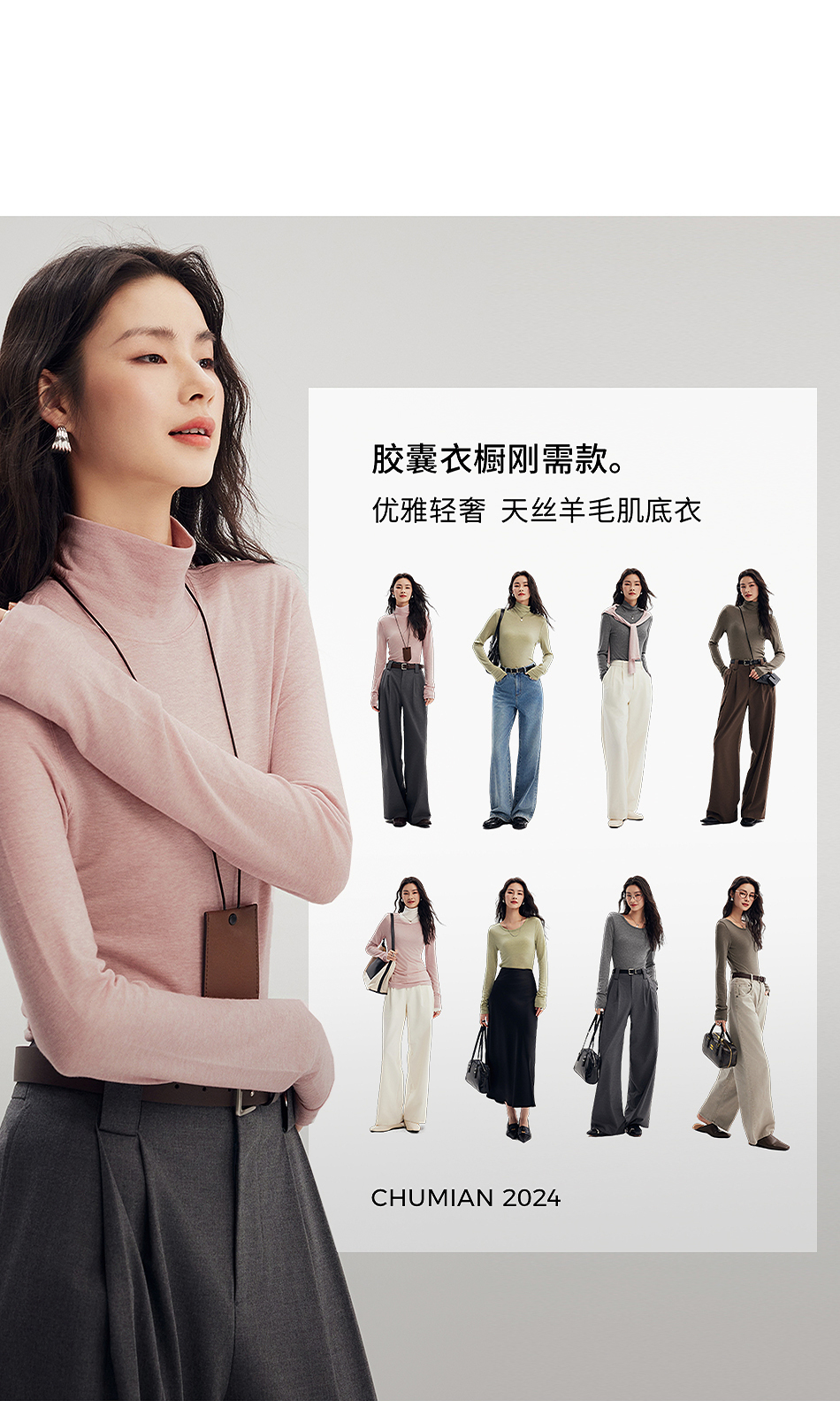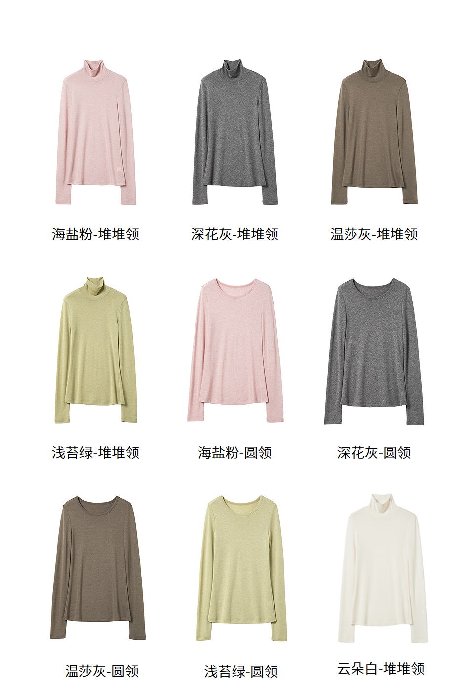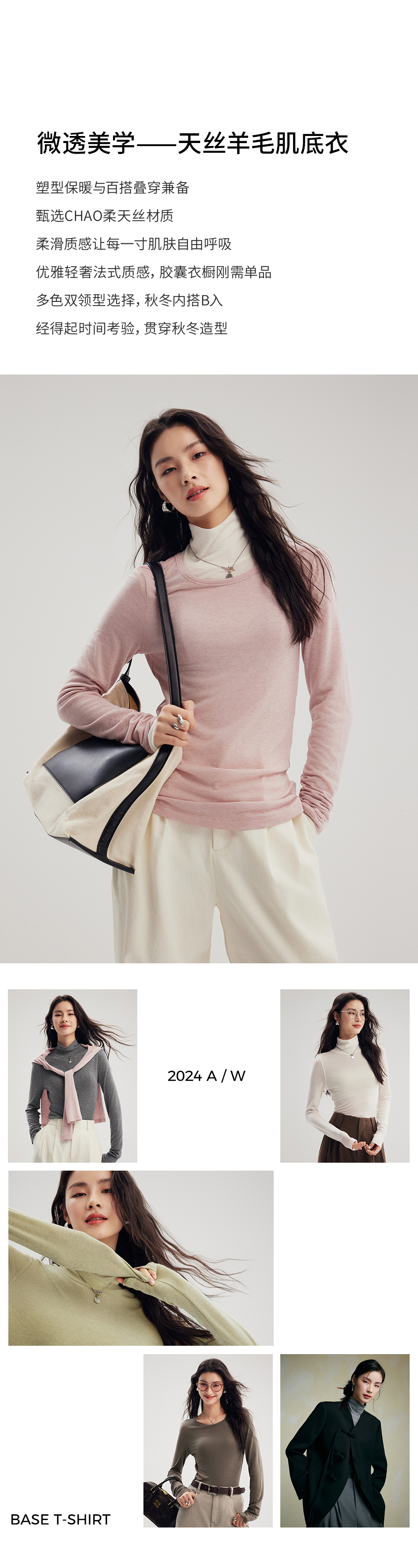 棉仓357601007-天丝羊毛奢感微透绝美打底衫合体微修身舒适轻暖打底衫。