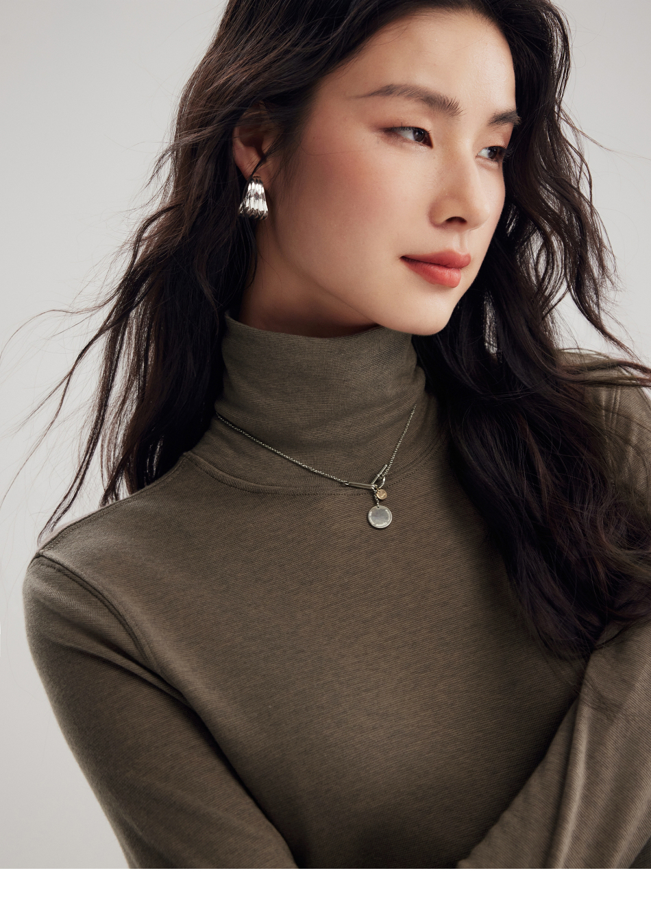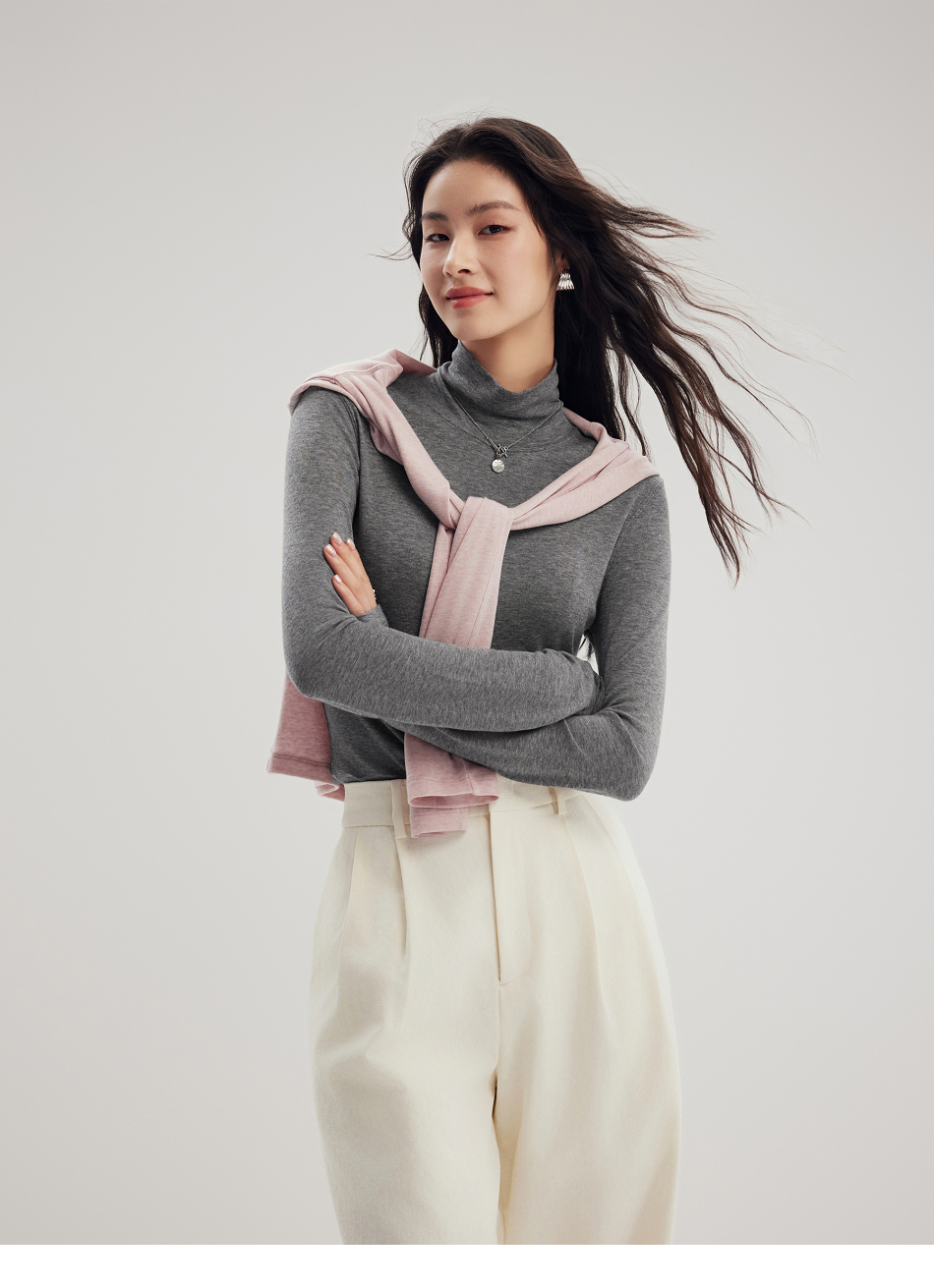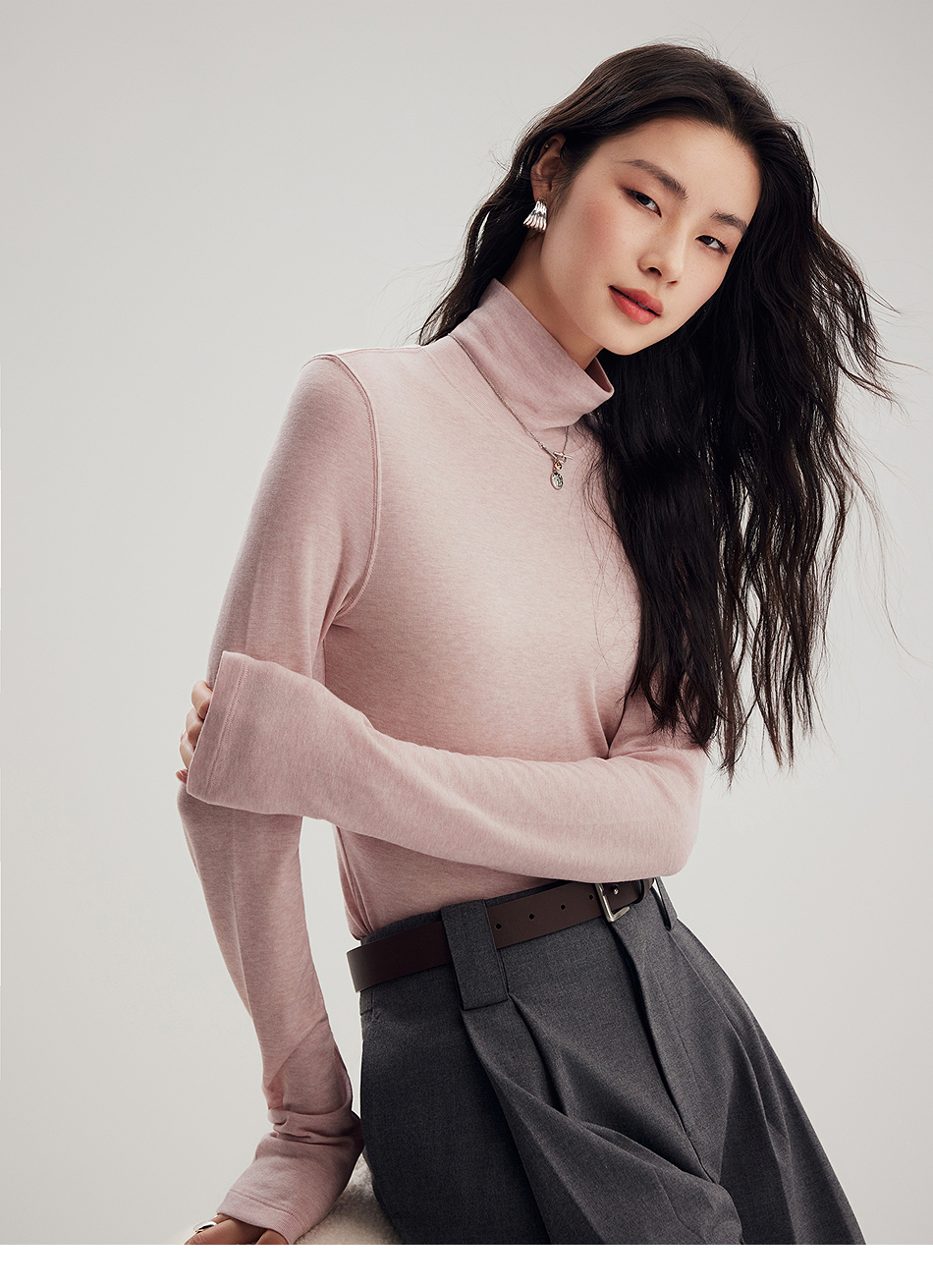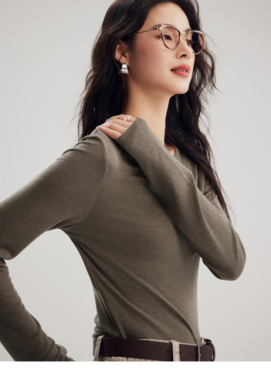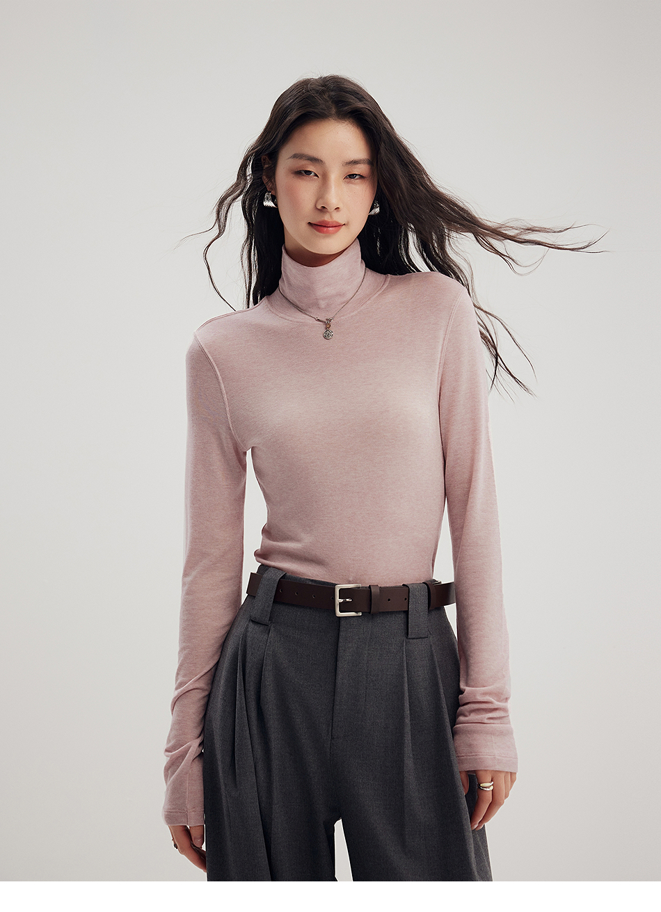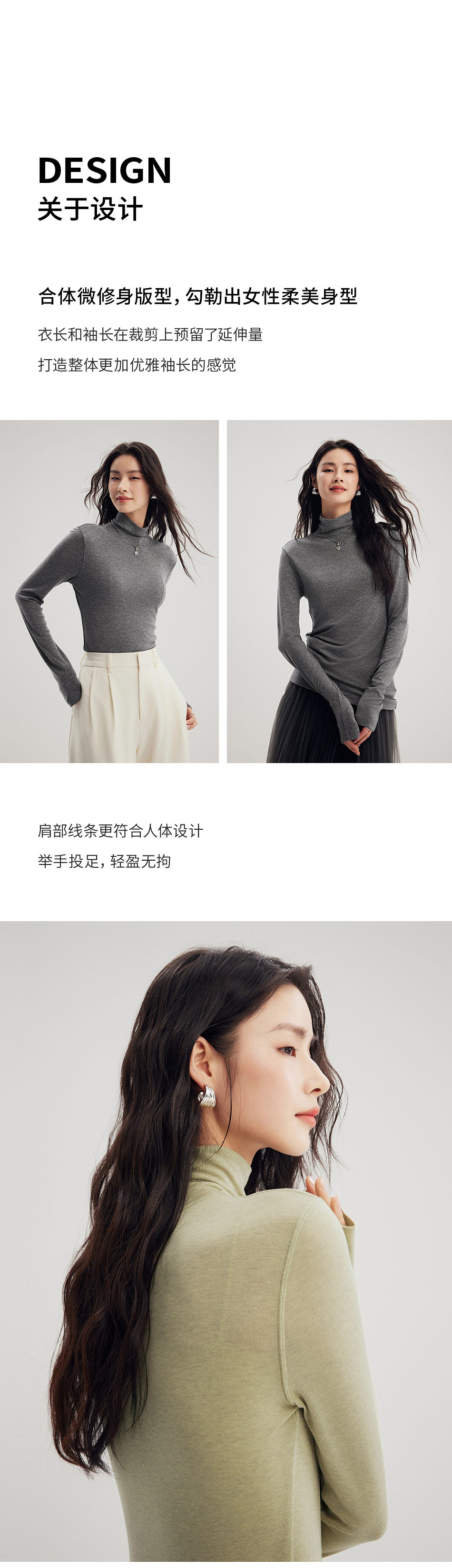 棉仓357601007-天丝羊毛奢感微透绝美打底衫合体微修身舒适轻暖打底衫。
