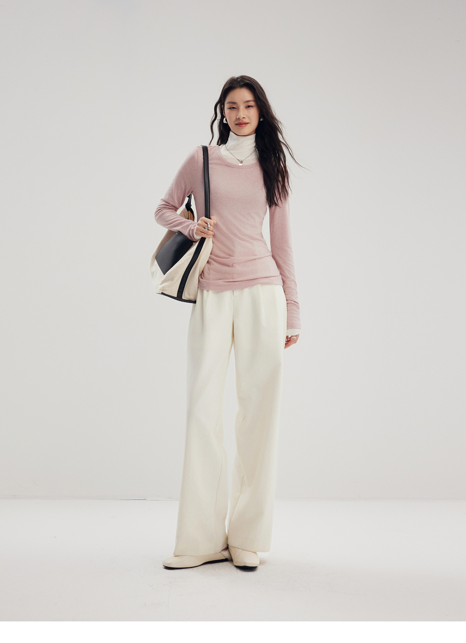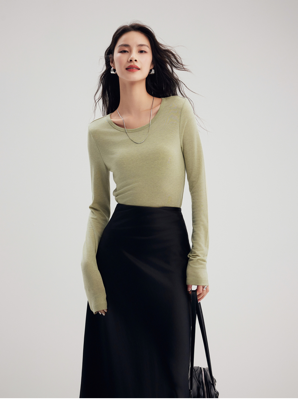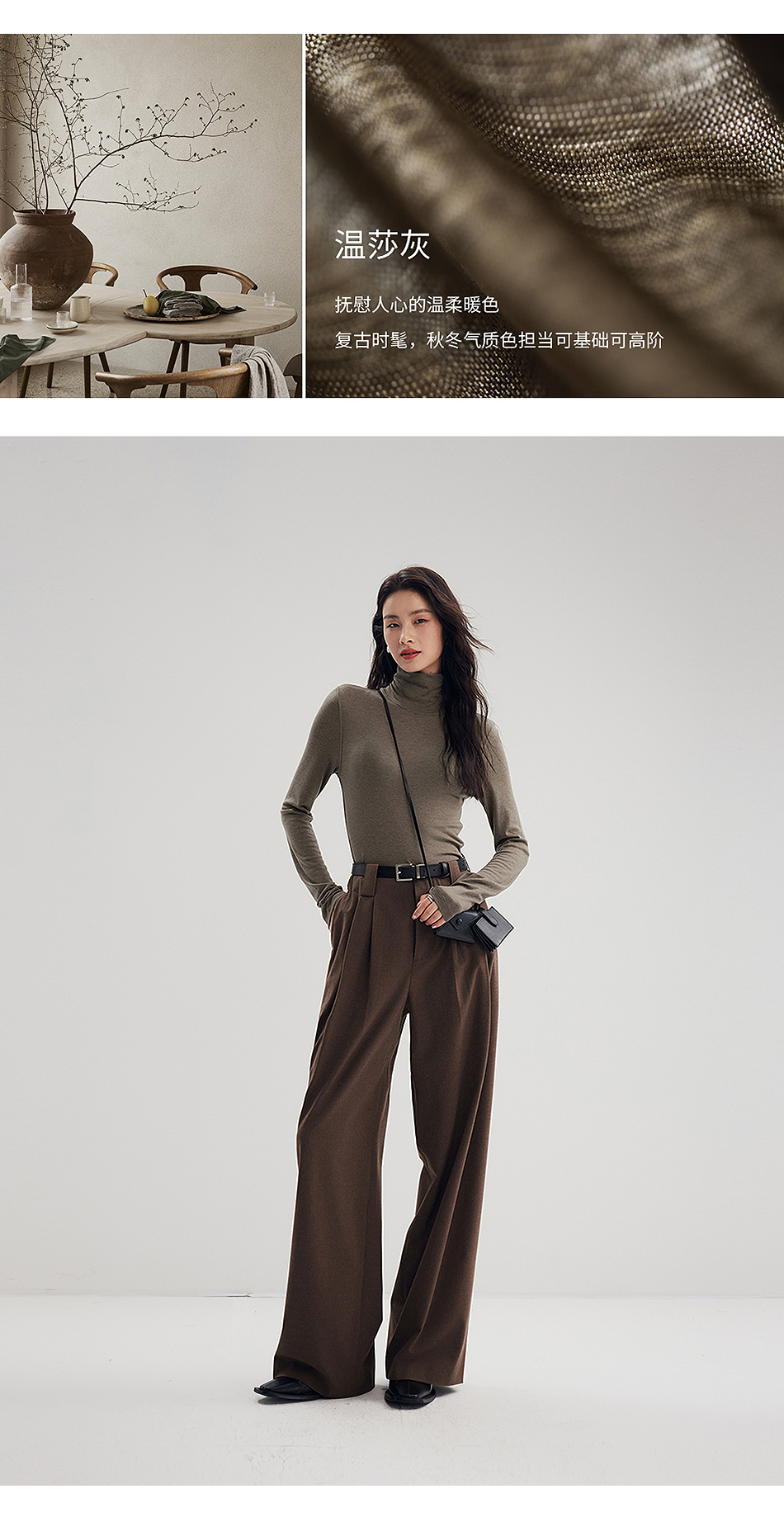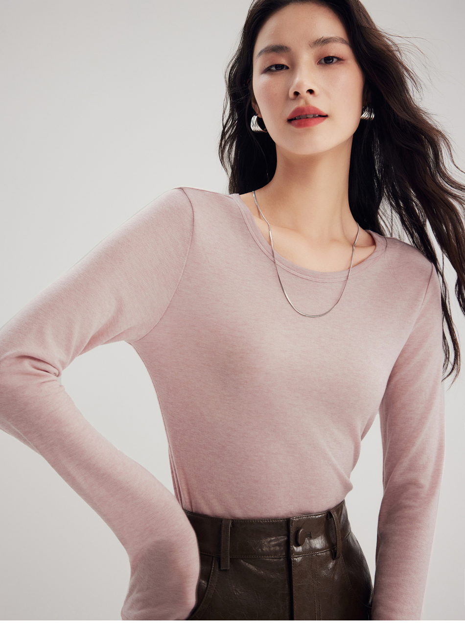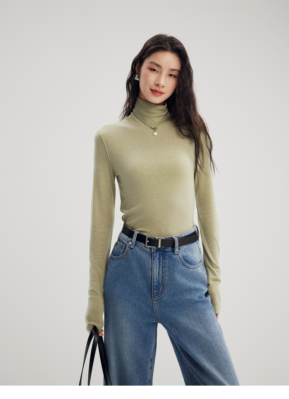 棉仓357601007-天丝羊毛奢感微透绝美打底衫合体微修身舒适轻暖打底衫。