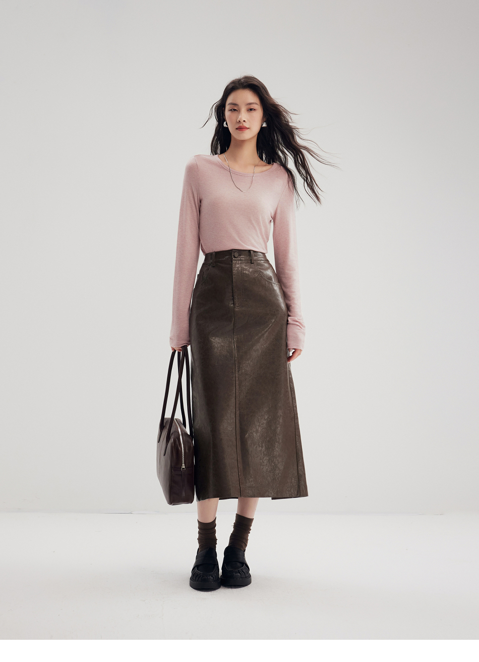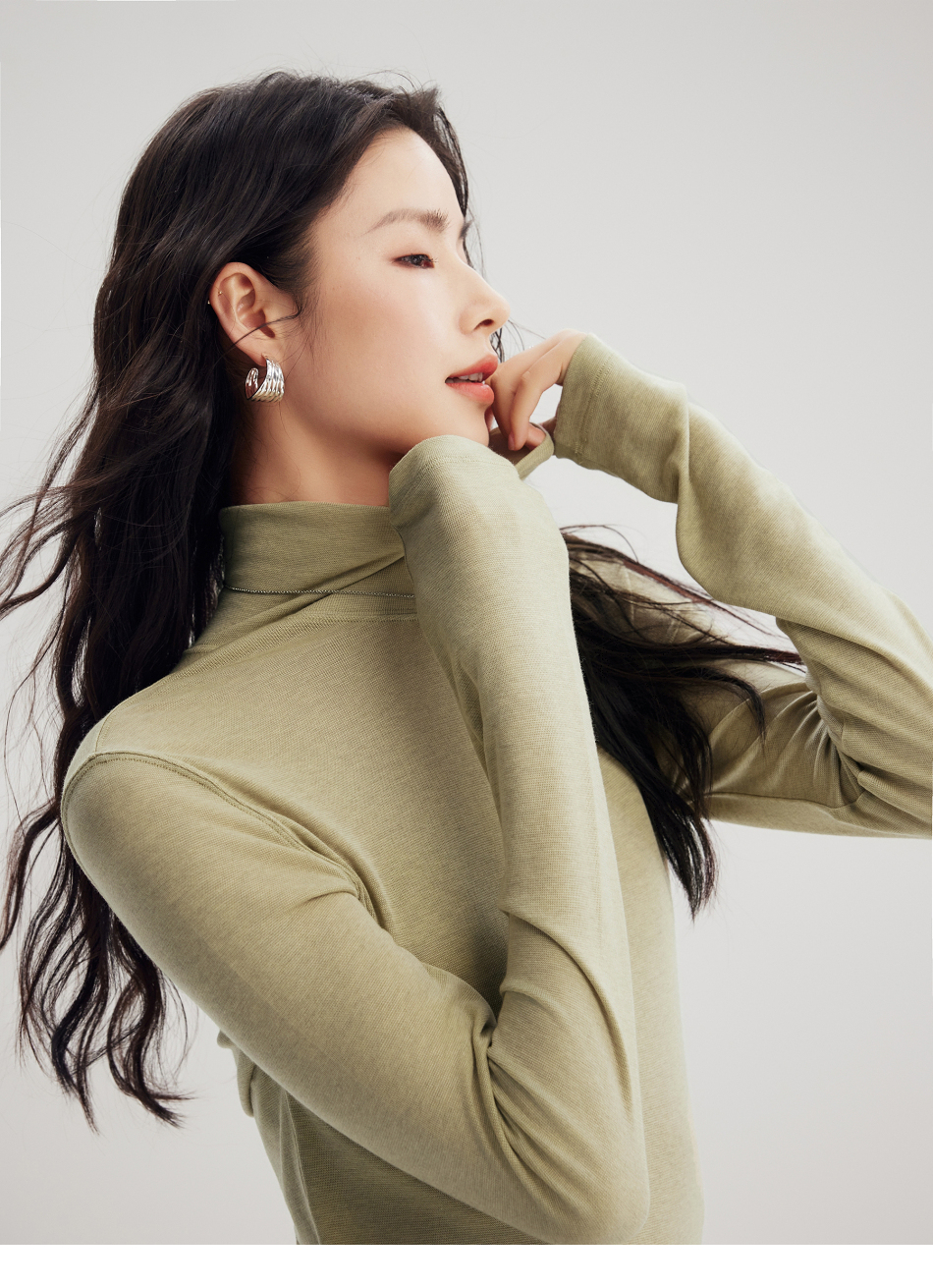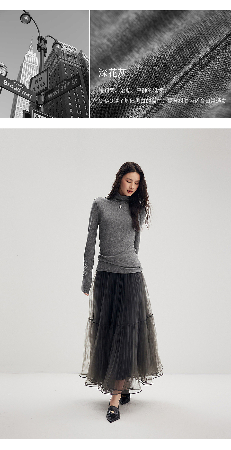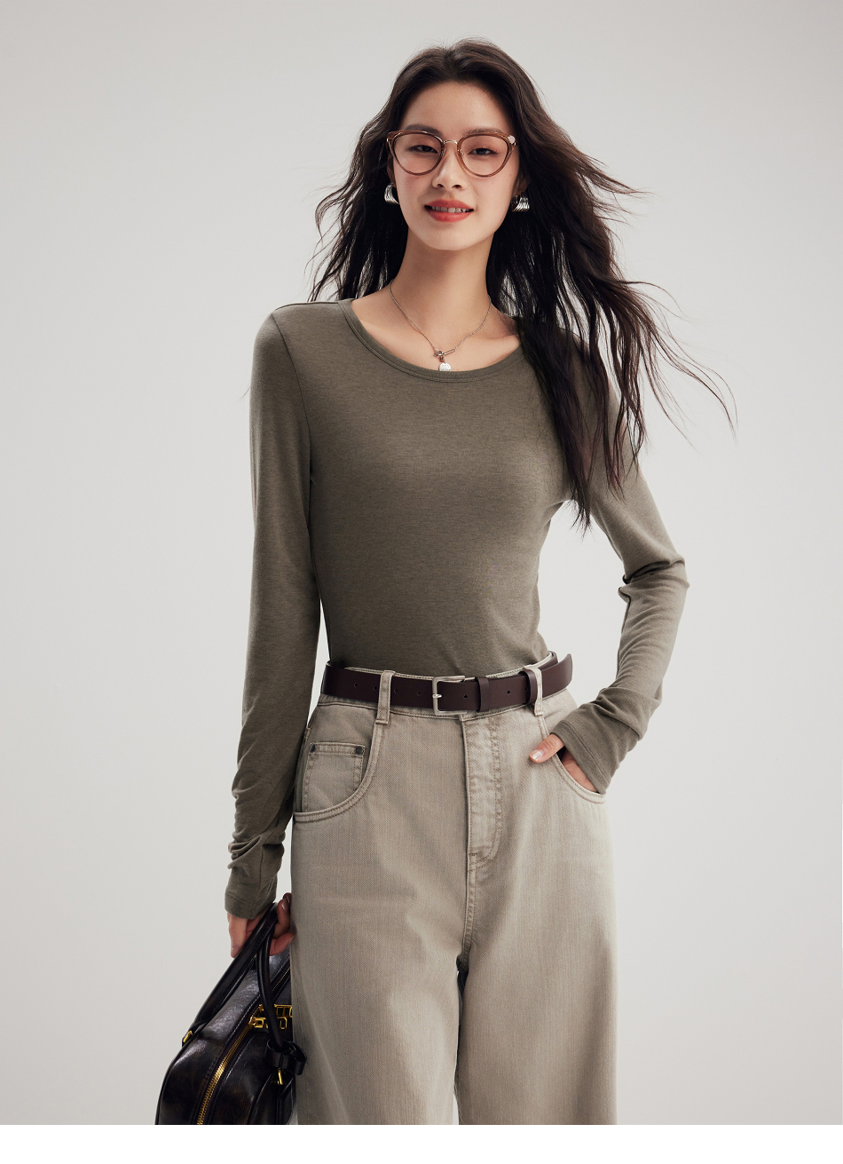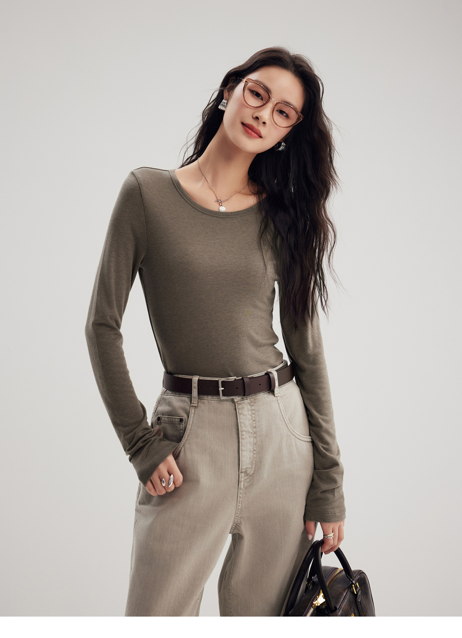 棉仓357601007-天丝羊毛奢感微透绝美打底衫合体微修身舒适轻暖打底衫。
