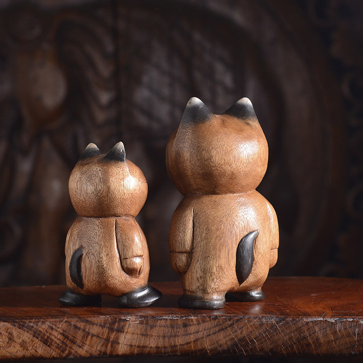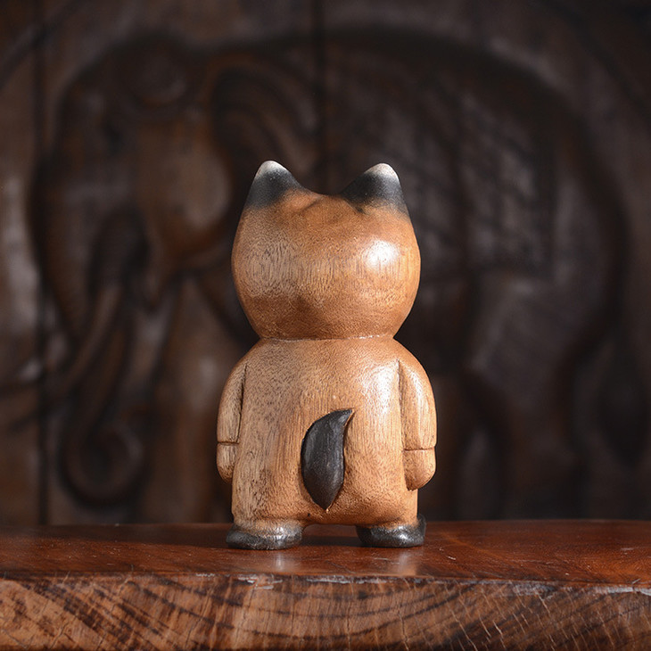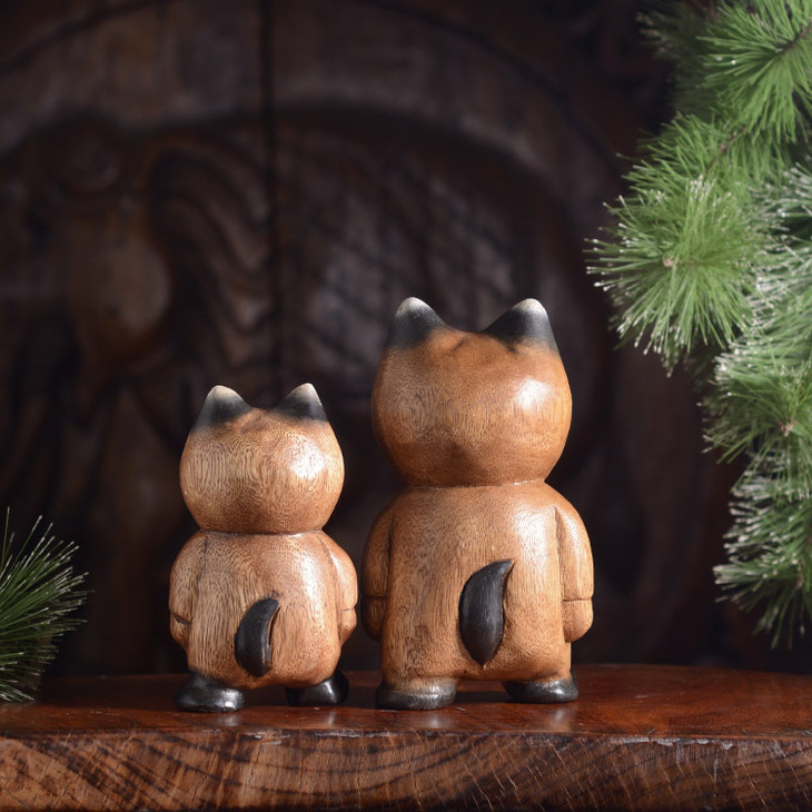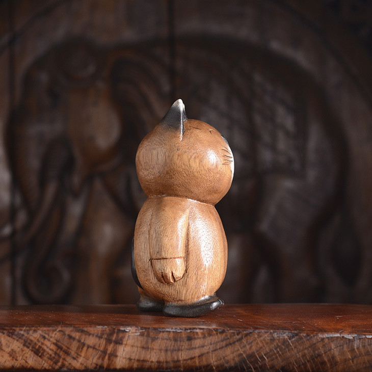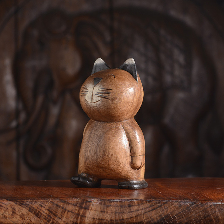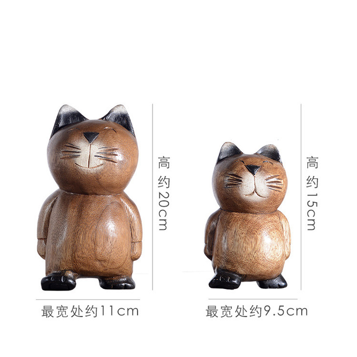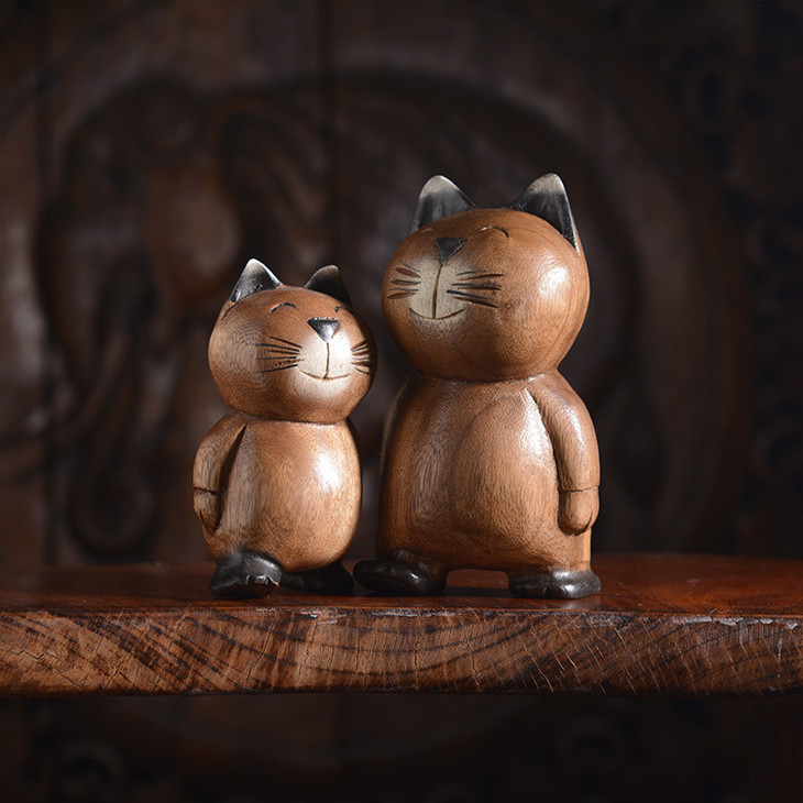 【家居摆件】东南亚风格散步实木小猫木雕家居摆件小猫咪摆件