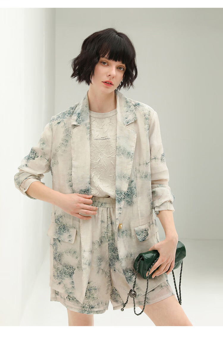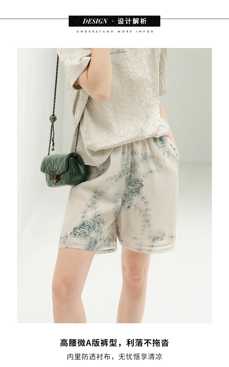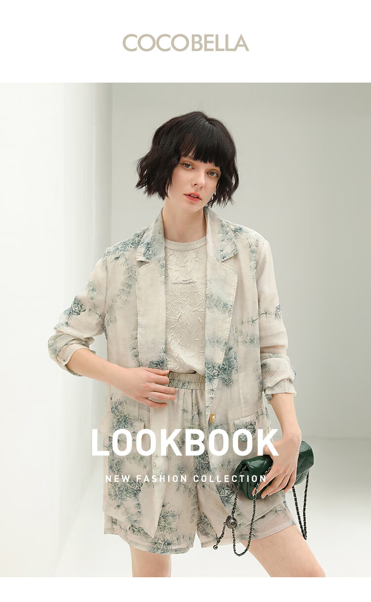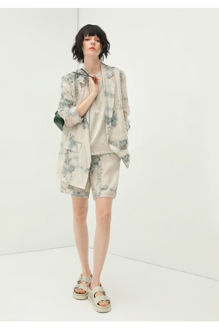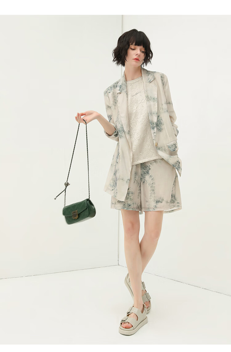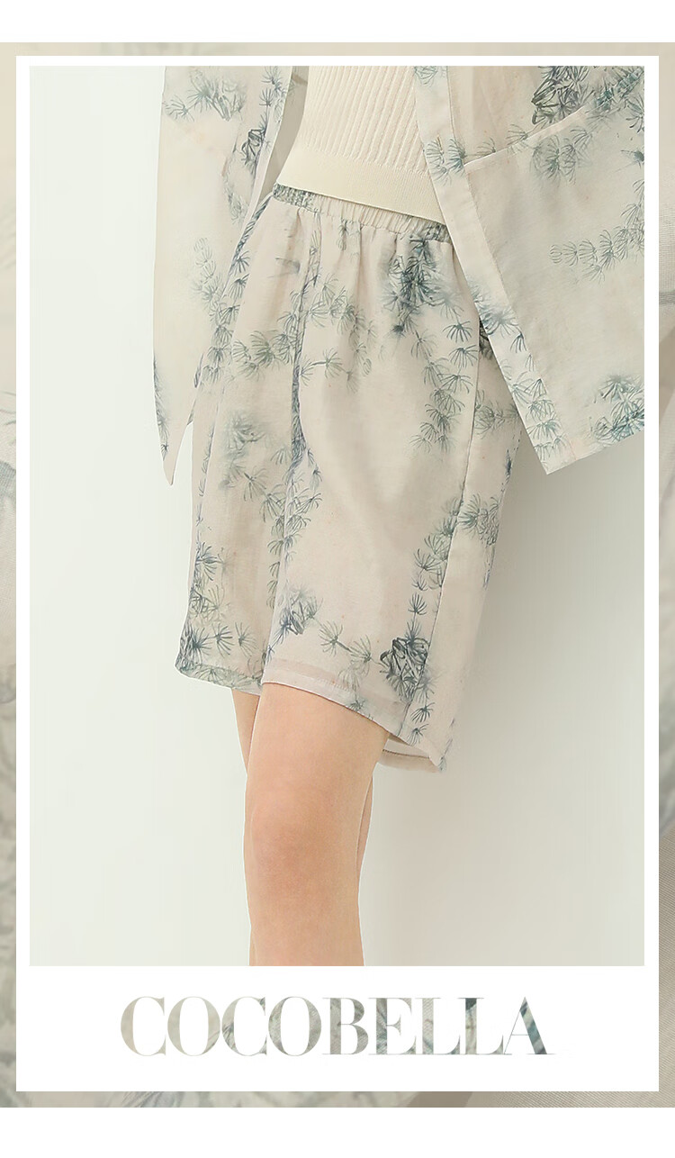 COCOBELLA国风写意印花西装短裤女夏通勤薄款莱赛尔短裤SO18
