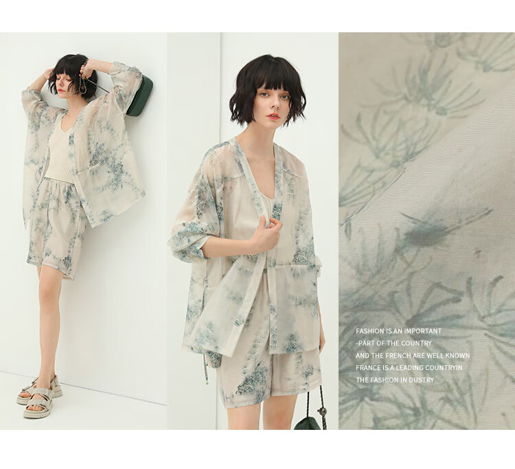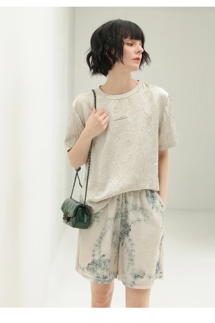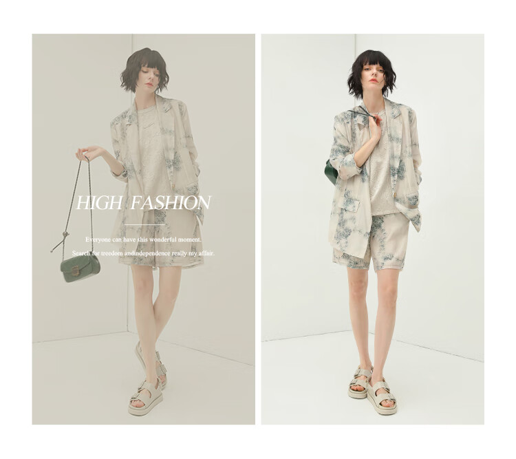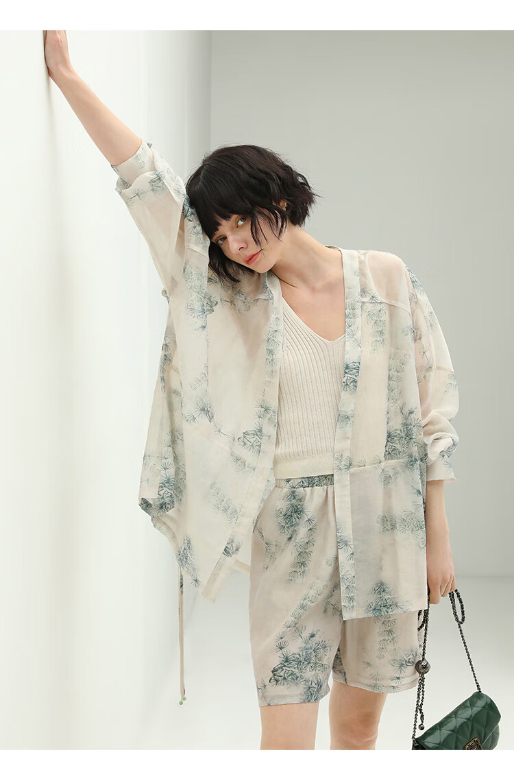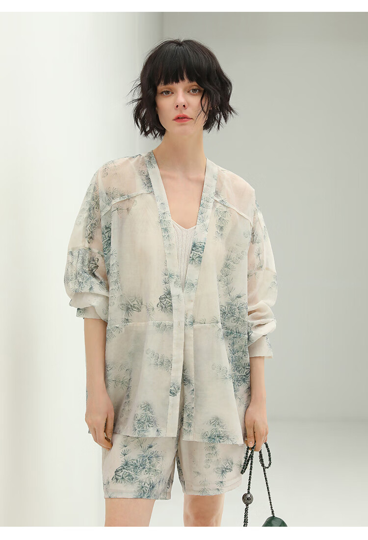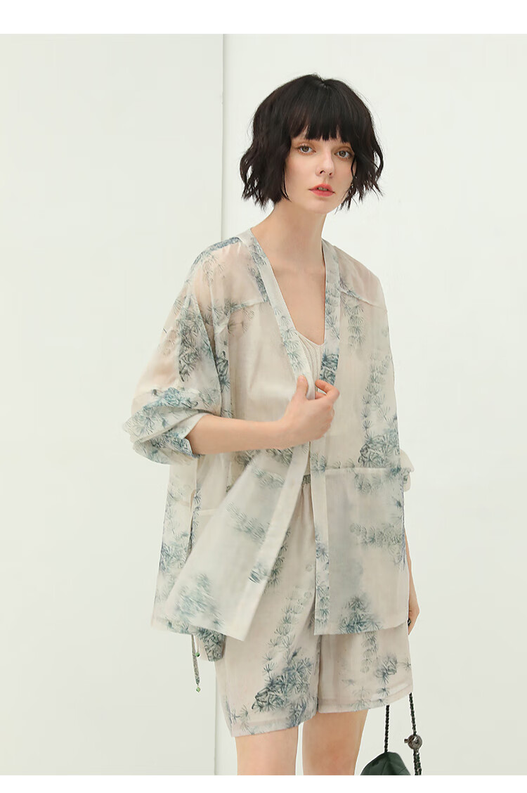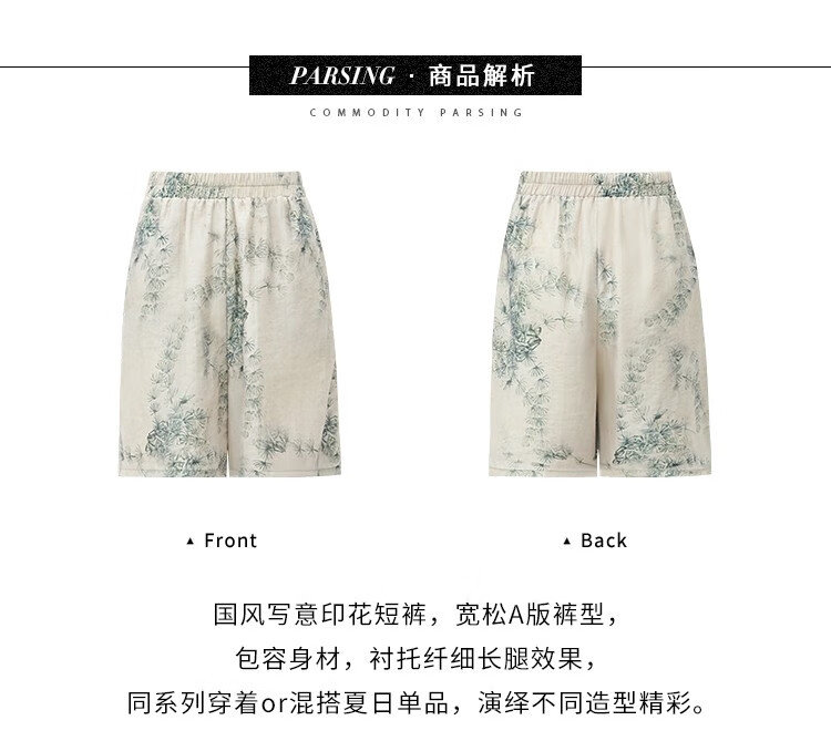 COCOBELLA国风写意印花西装短裤女夏通勤薄款莱赛尔短裤SO18