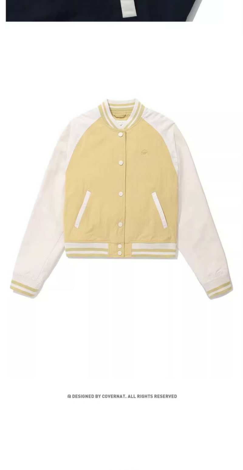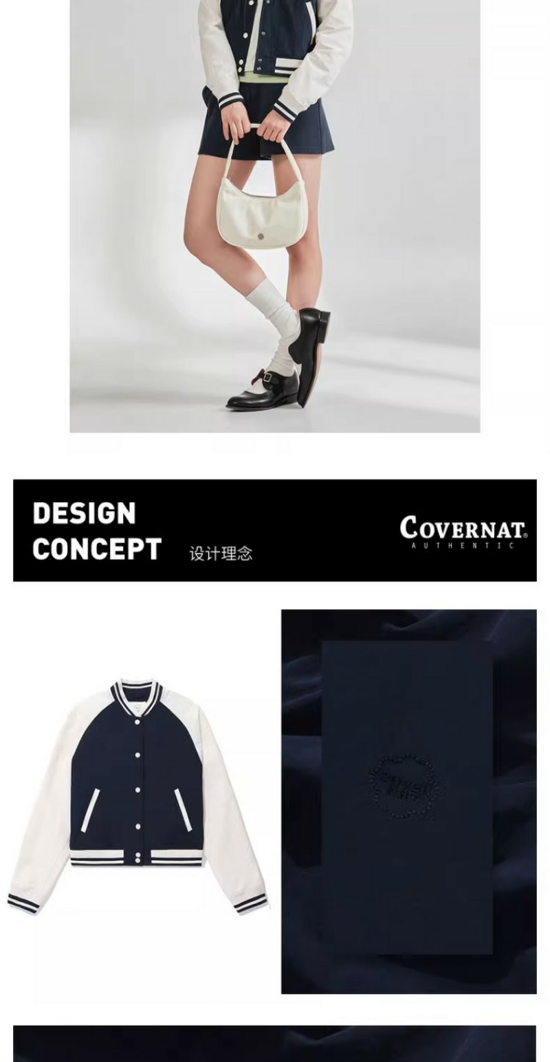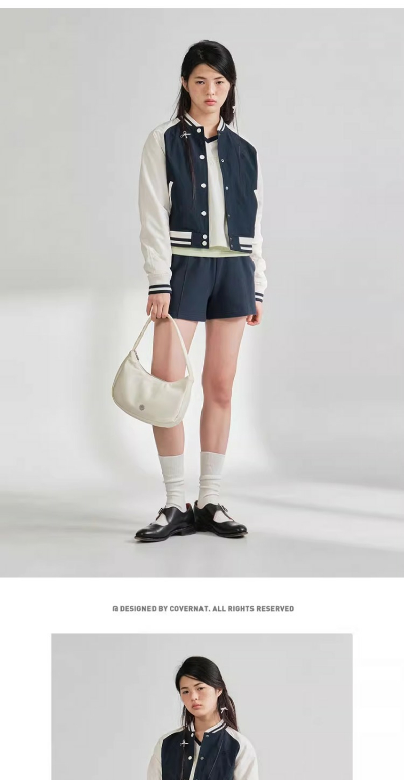 covernat2024春新款女短款光泽感撞色拼接夹克棒球外套CO2401JK70