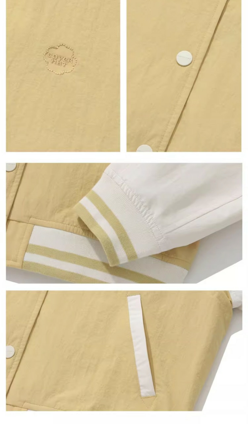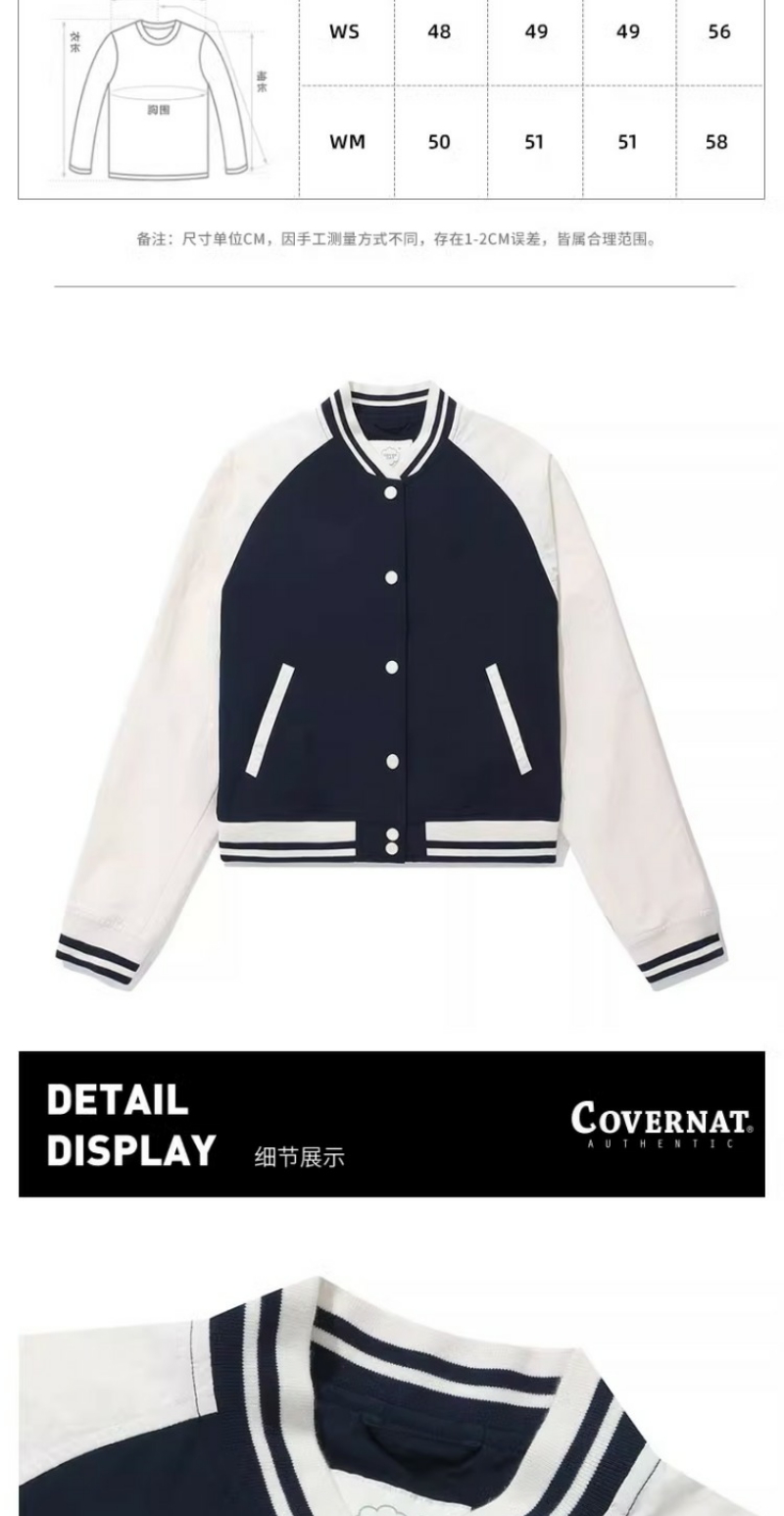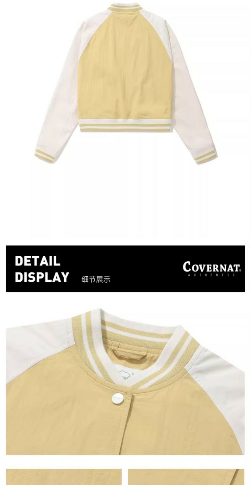 covernat2024春新款女短款光泽感撞色拼接夹克棒球外套CO2401JK70