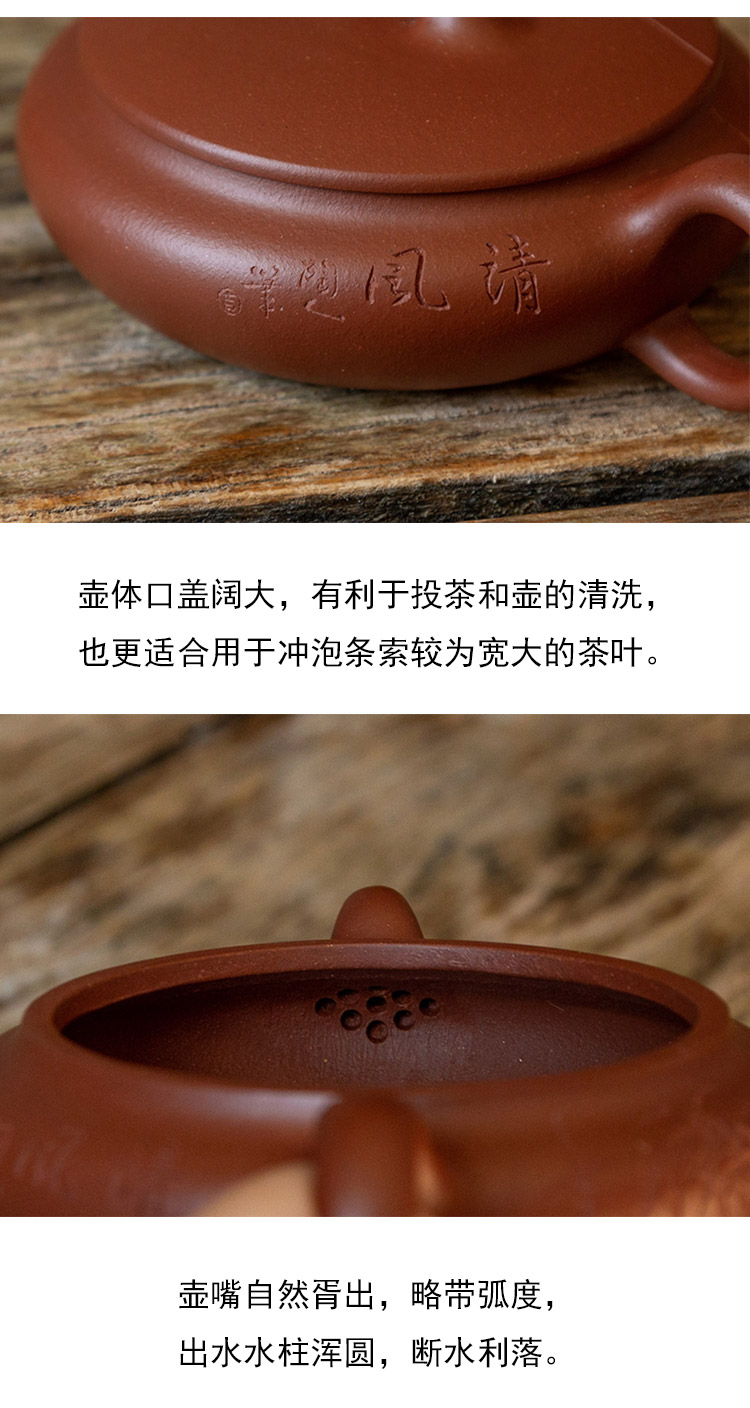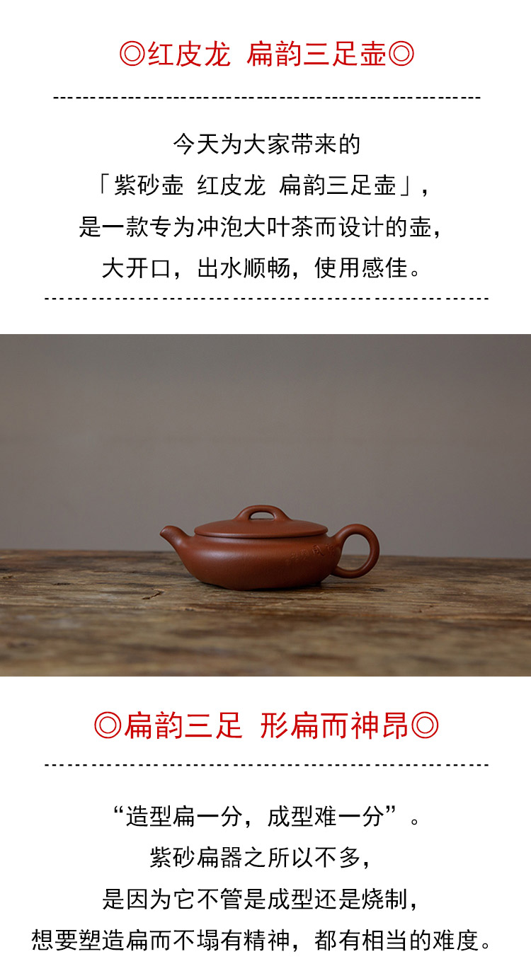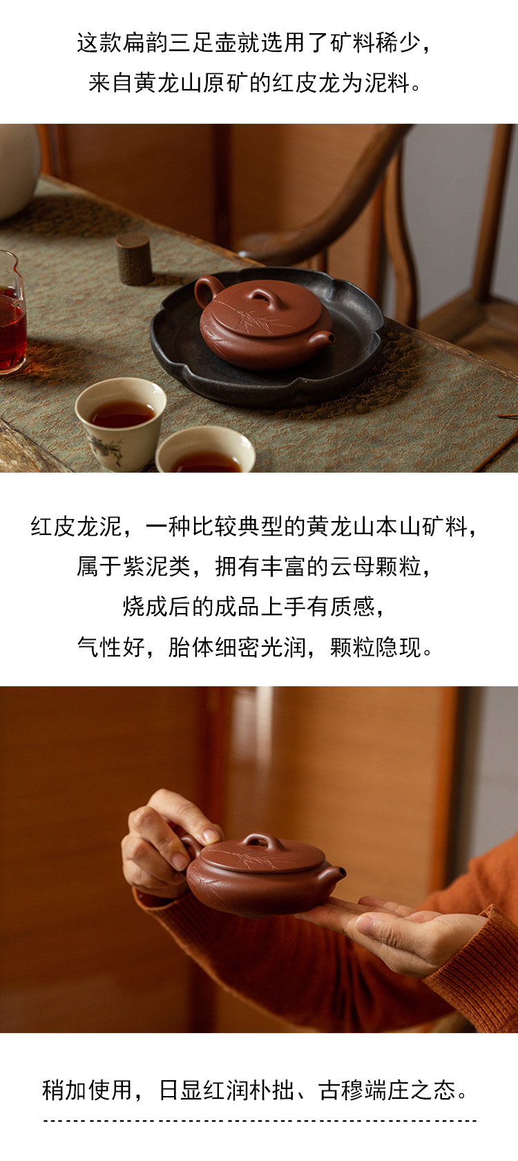 茶香记 紫砂壶 红皮龙 扁韵三足壶 黄龙山原矿 稳重大气 神韵饱满 实用设计