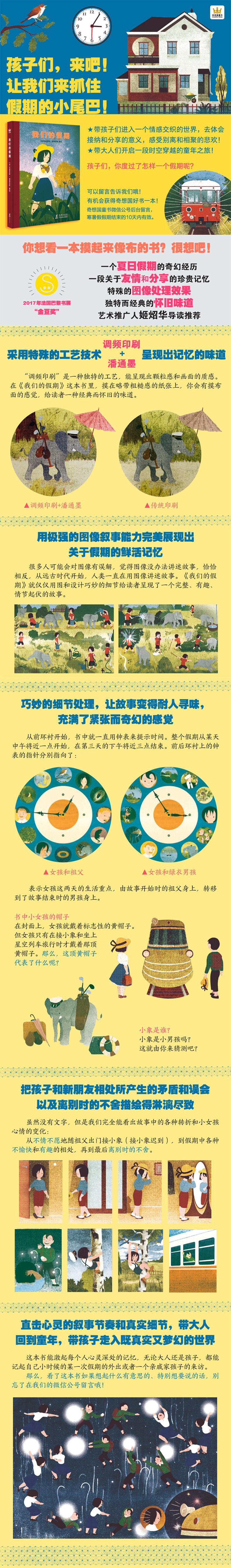 * 法国巴黎书展“金豆奖”获奖图画书* 艺术推广人姬炤华导读推荐* 一个夏日假期的奇幻经历,一段关于友情和分享的珍贵记忆* 采用特殊的图像处理效果,让整本书呈现出独特而经典的怀旧味道* 内附折页,姬炤华老师深度解读文本,以及对无字书的解读,让阅读更有启发性。