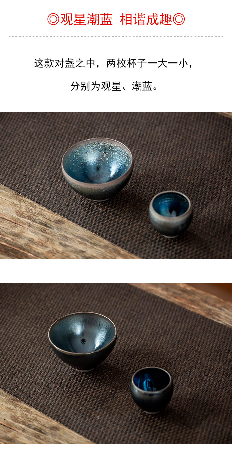 茶香记 建阳 廖铭建盏 油滴对盏观星 对盏潮蓝 主人杯 品茗杯