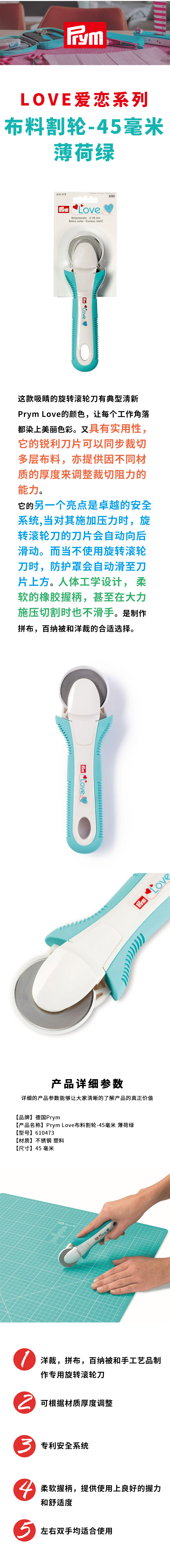 德国Prymlove爱恋系列布料割滑轮 45毫米薄荷绿