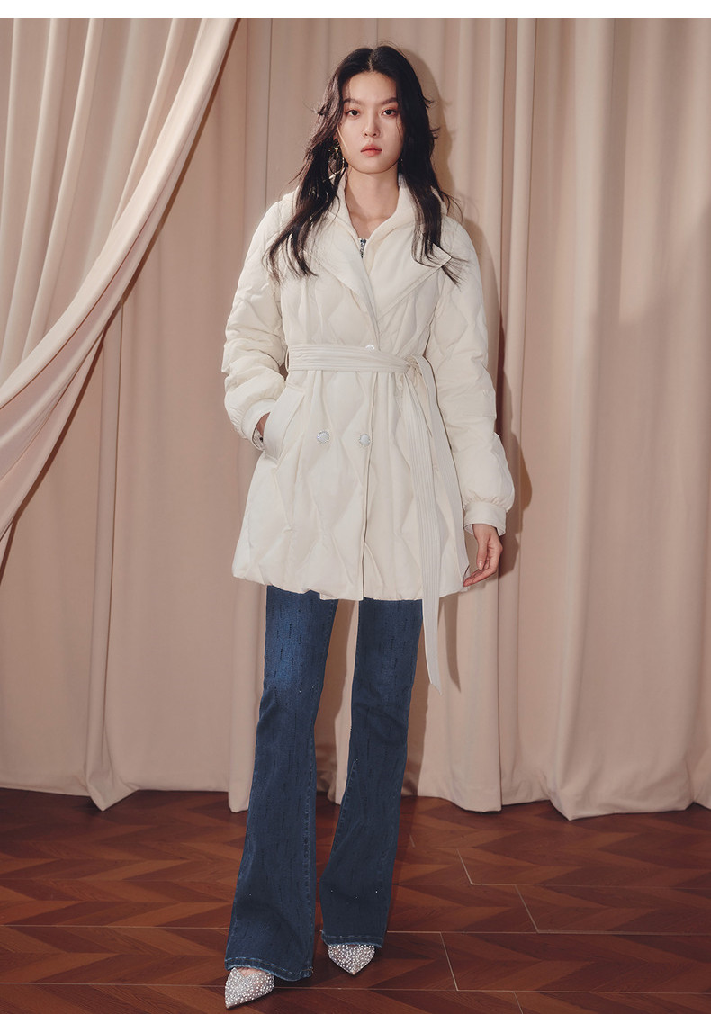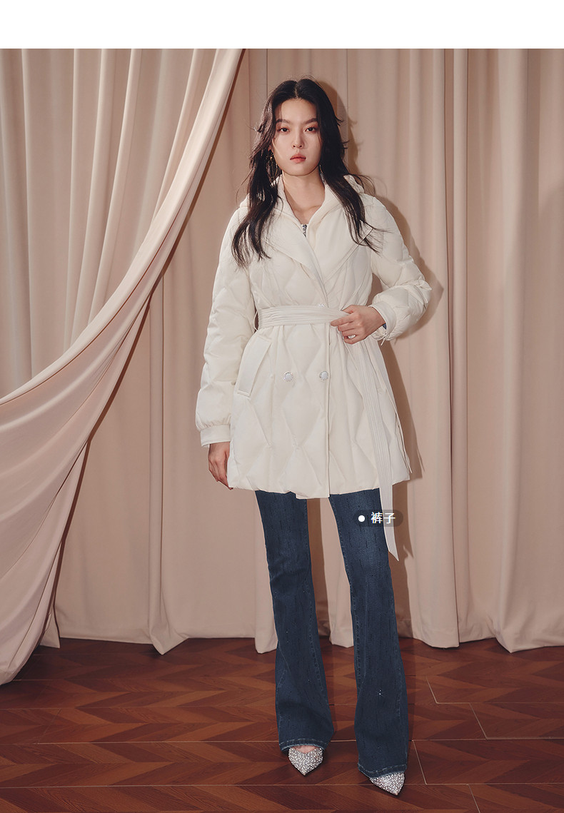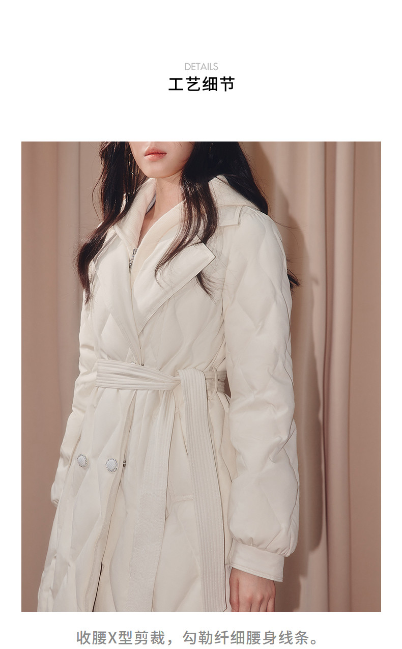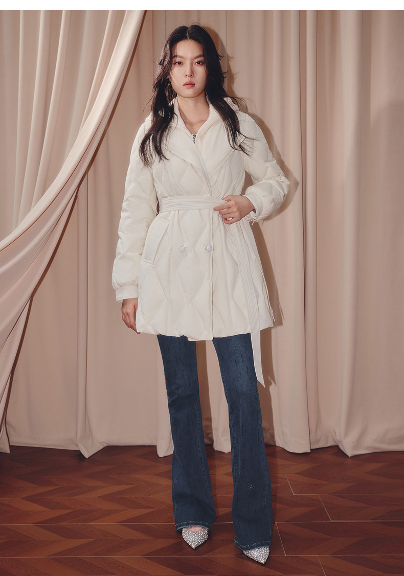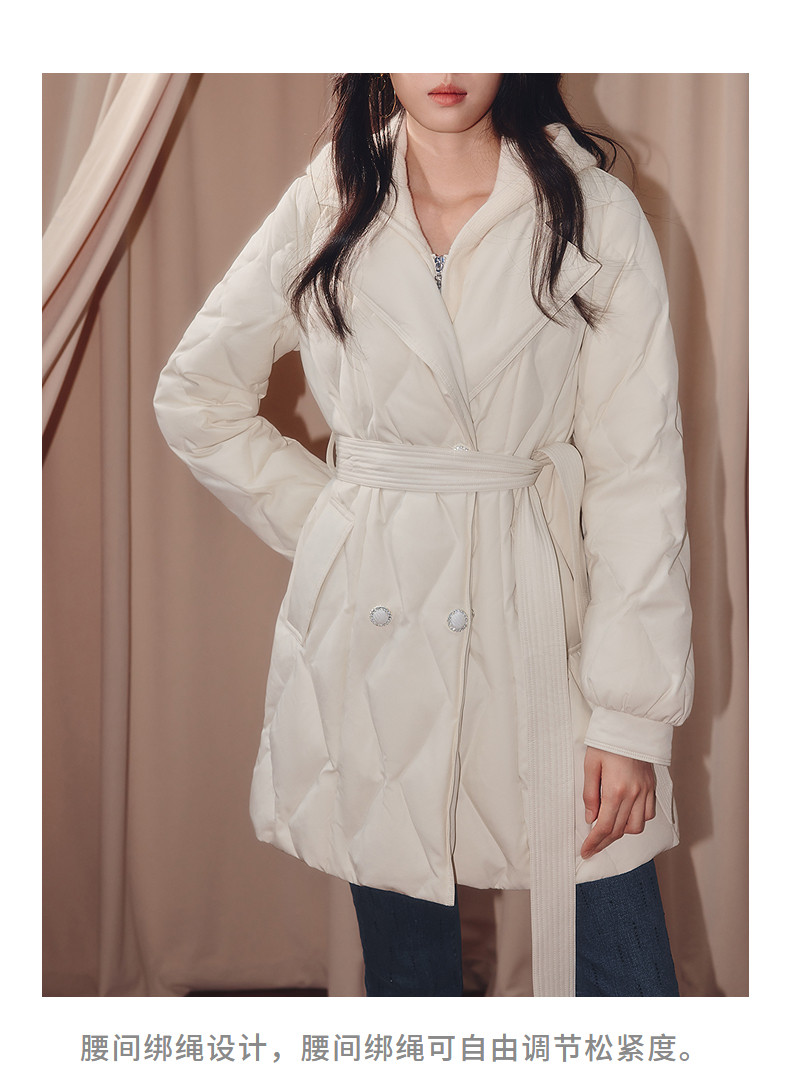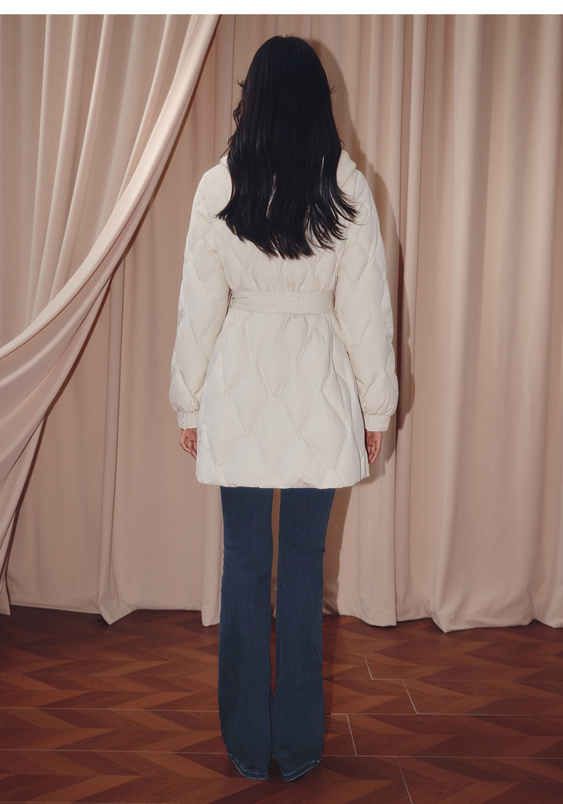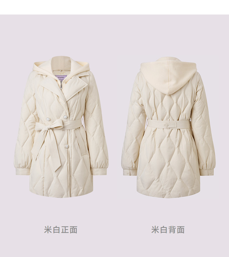 MAXRIENY肌理感菱形格纹x型系带收腰羽绒服25冬优雅通勤穿搭外套(货号:MF86DC508)