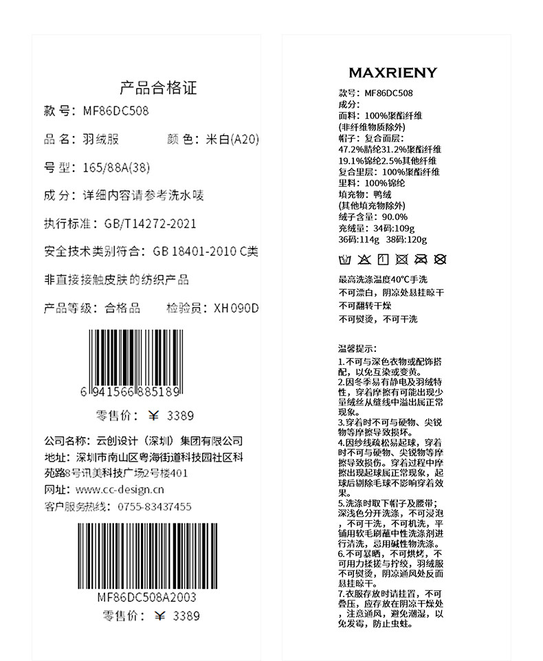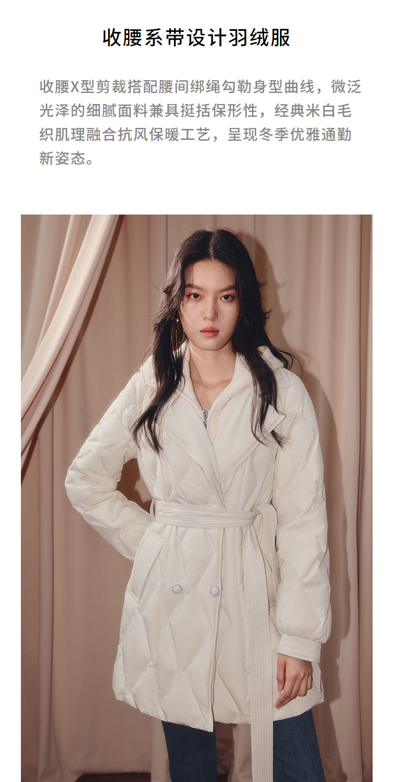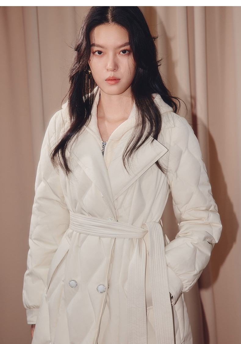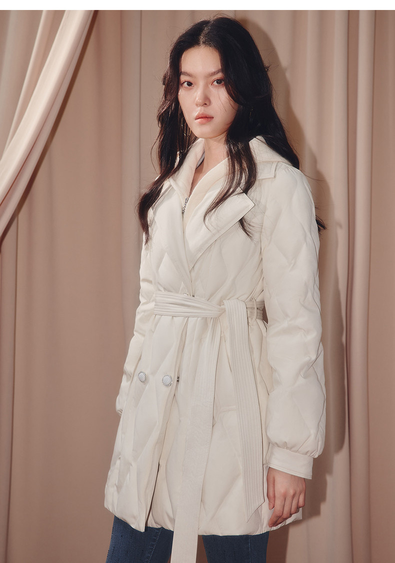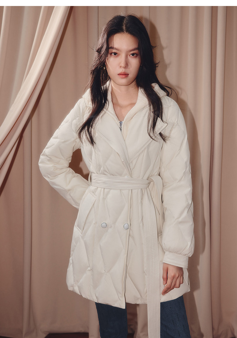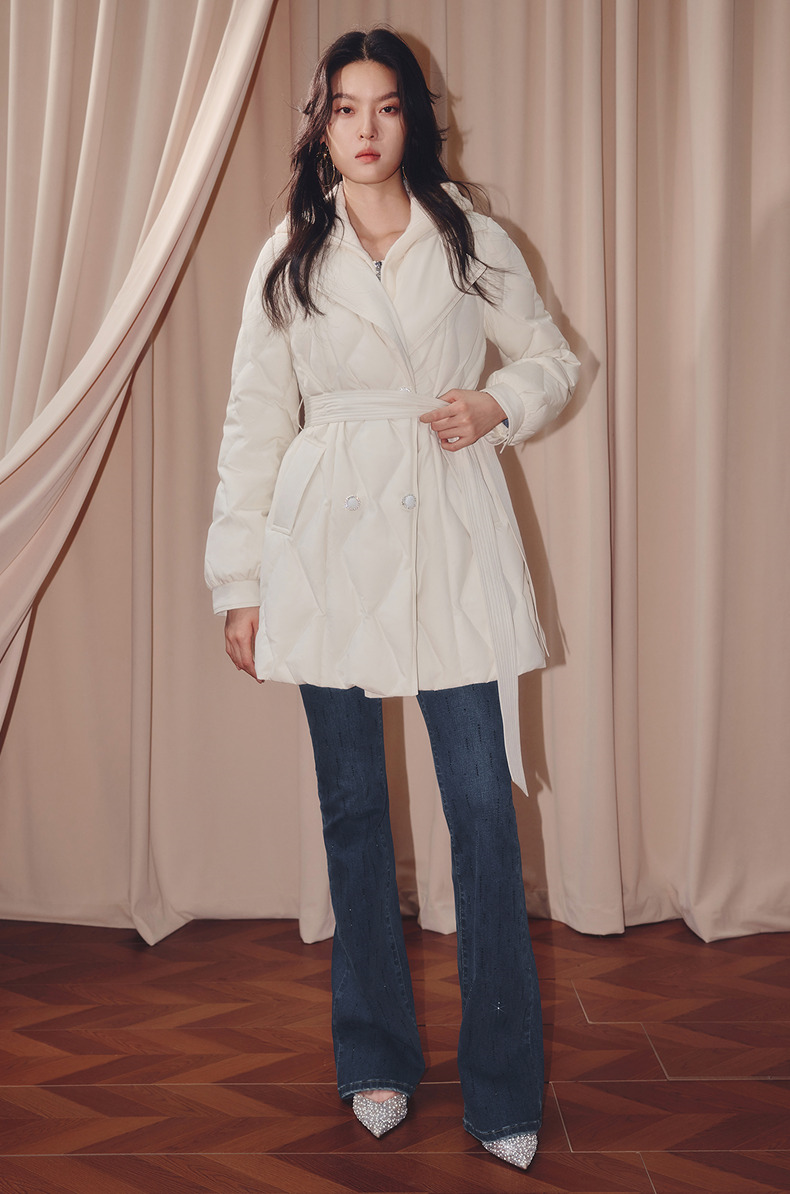 MAXRIENY肌理感菱形格纹x型系带收腰羽绒服25冬优雅通勤穿搭外套(货号:MF86DC508)