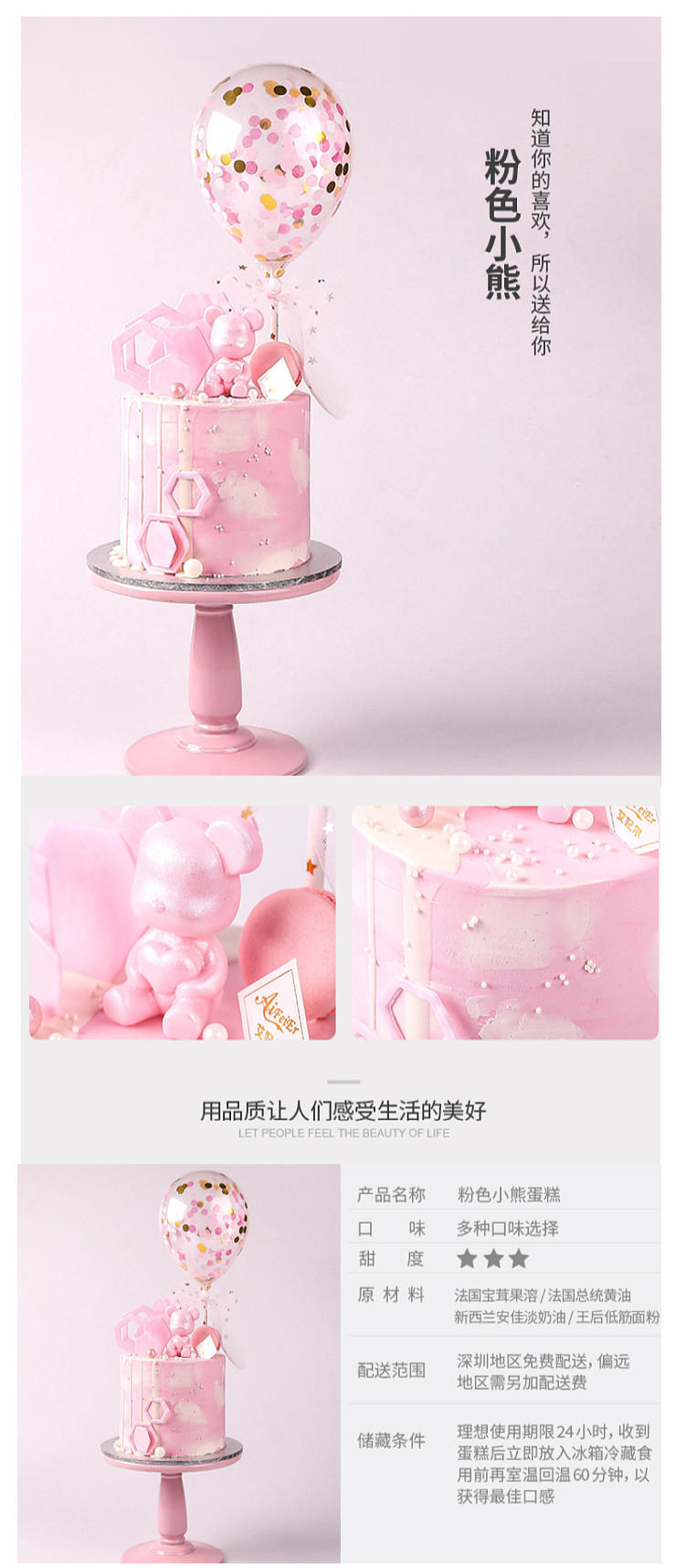 抖音小熊气球可爱女孩女神款公主儿童生日蛋糕深圳同城配送