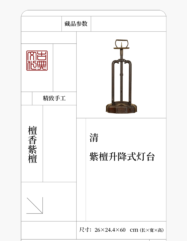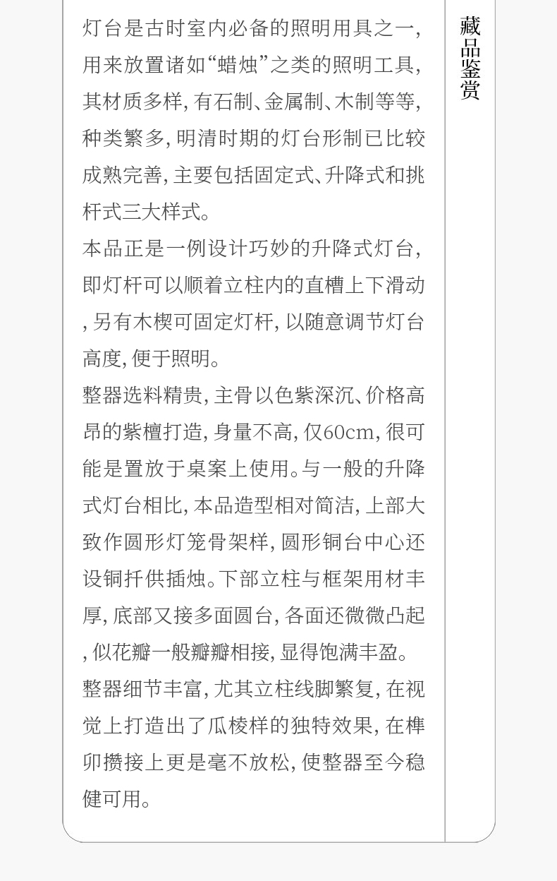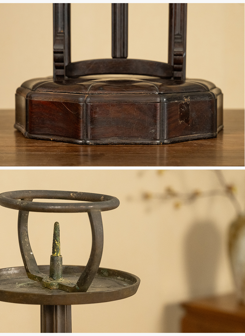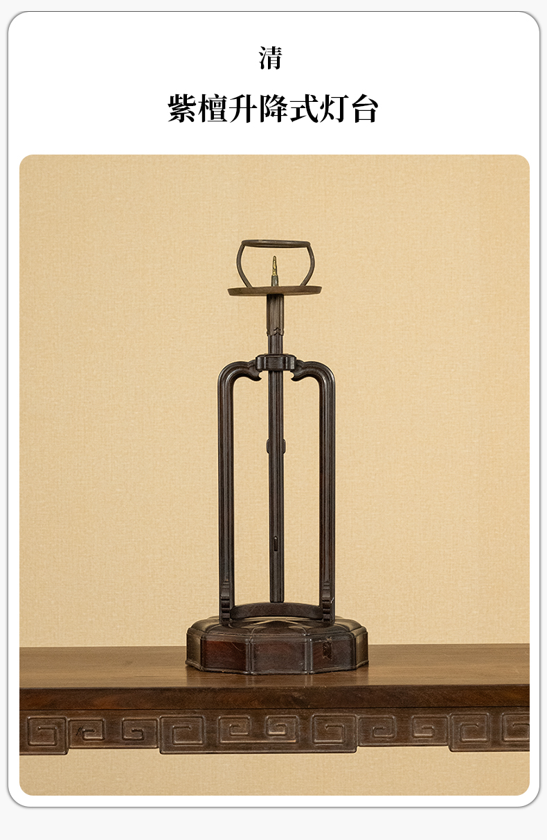 清 紫檀升降式灯台