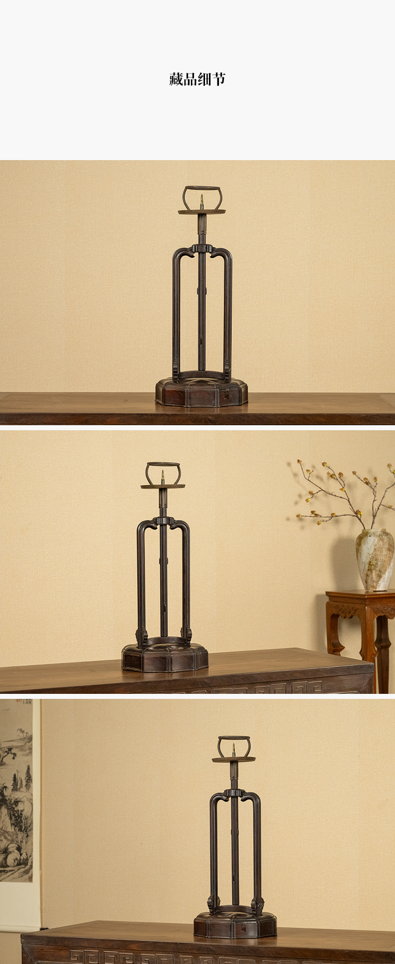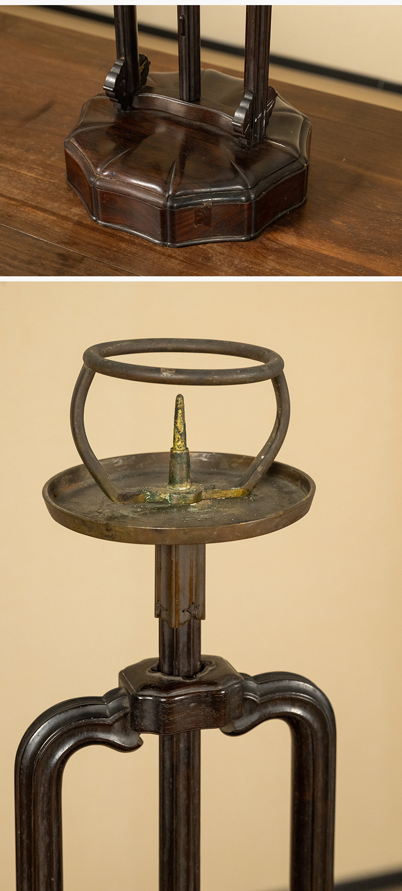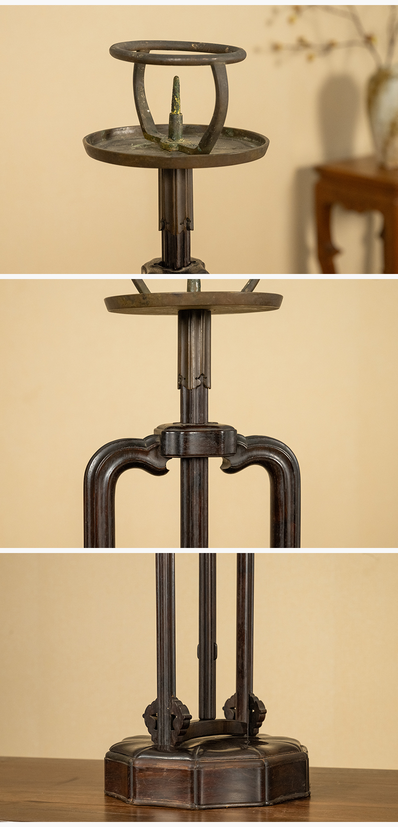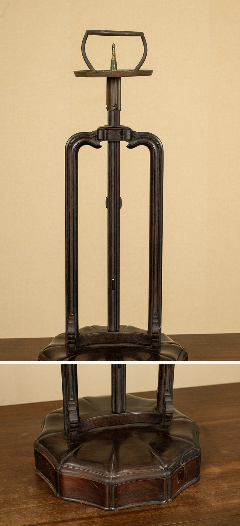 清 紫檀升降式灯台