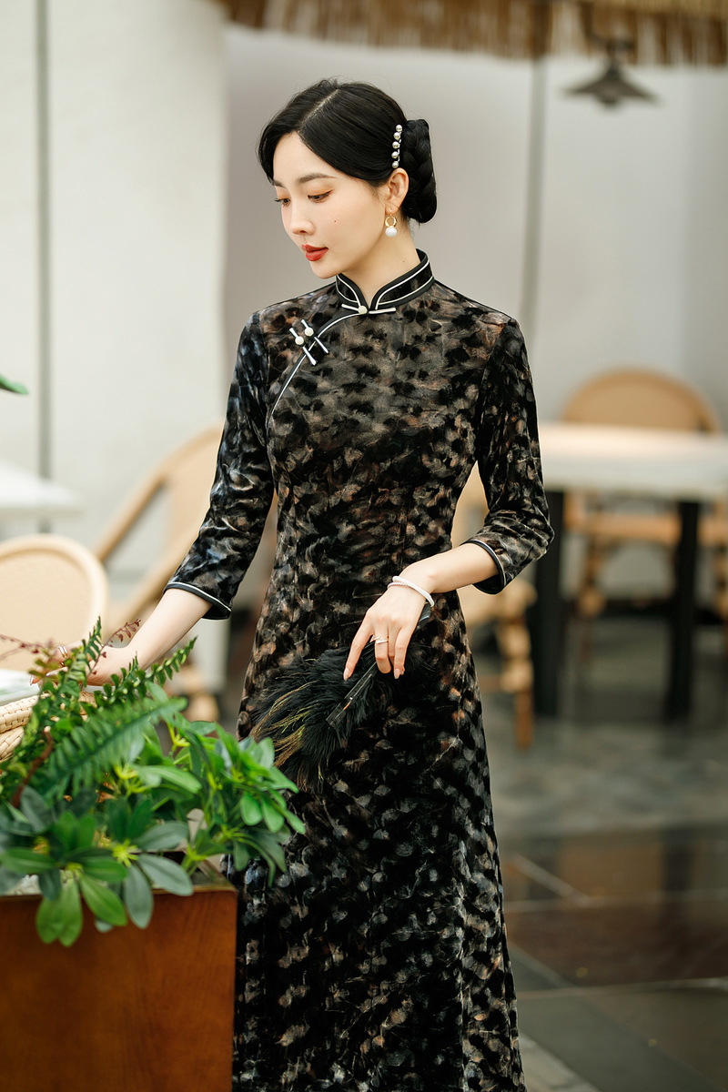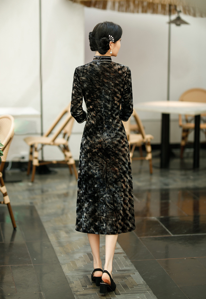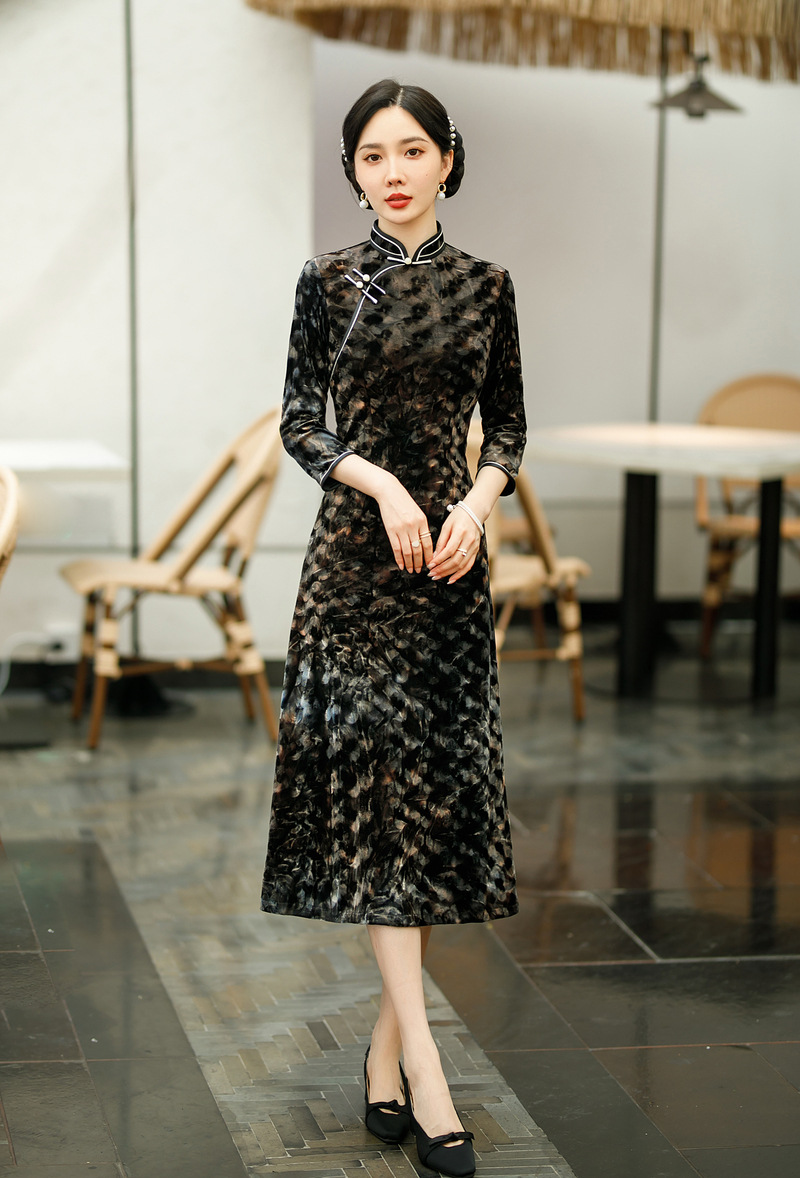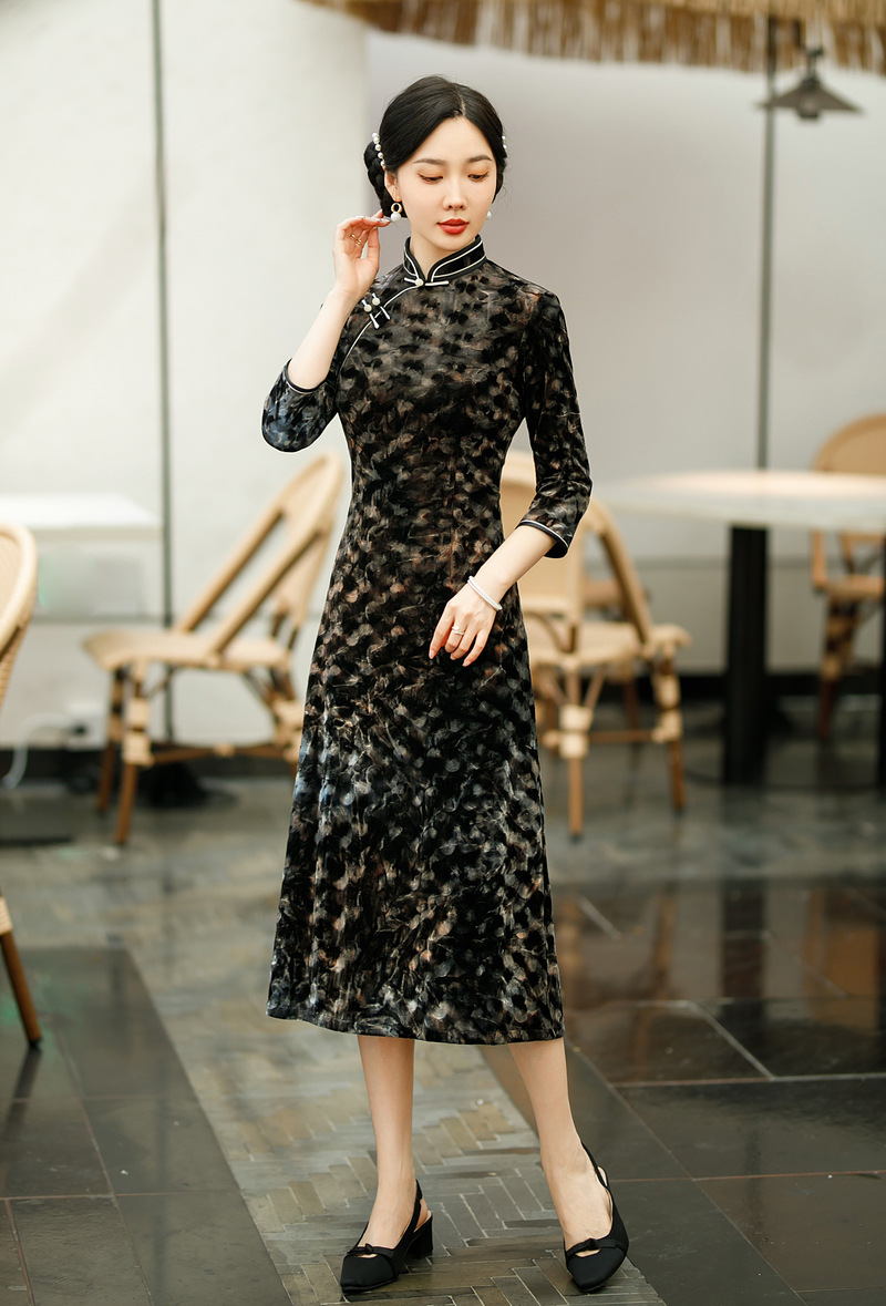 SYG-681秋新款韩国绒连衣裙长袖女高贵气质秋冬长裙子