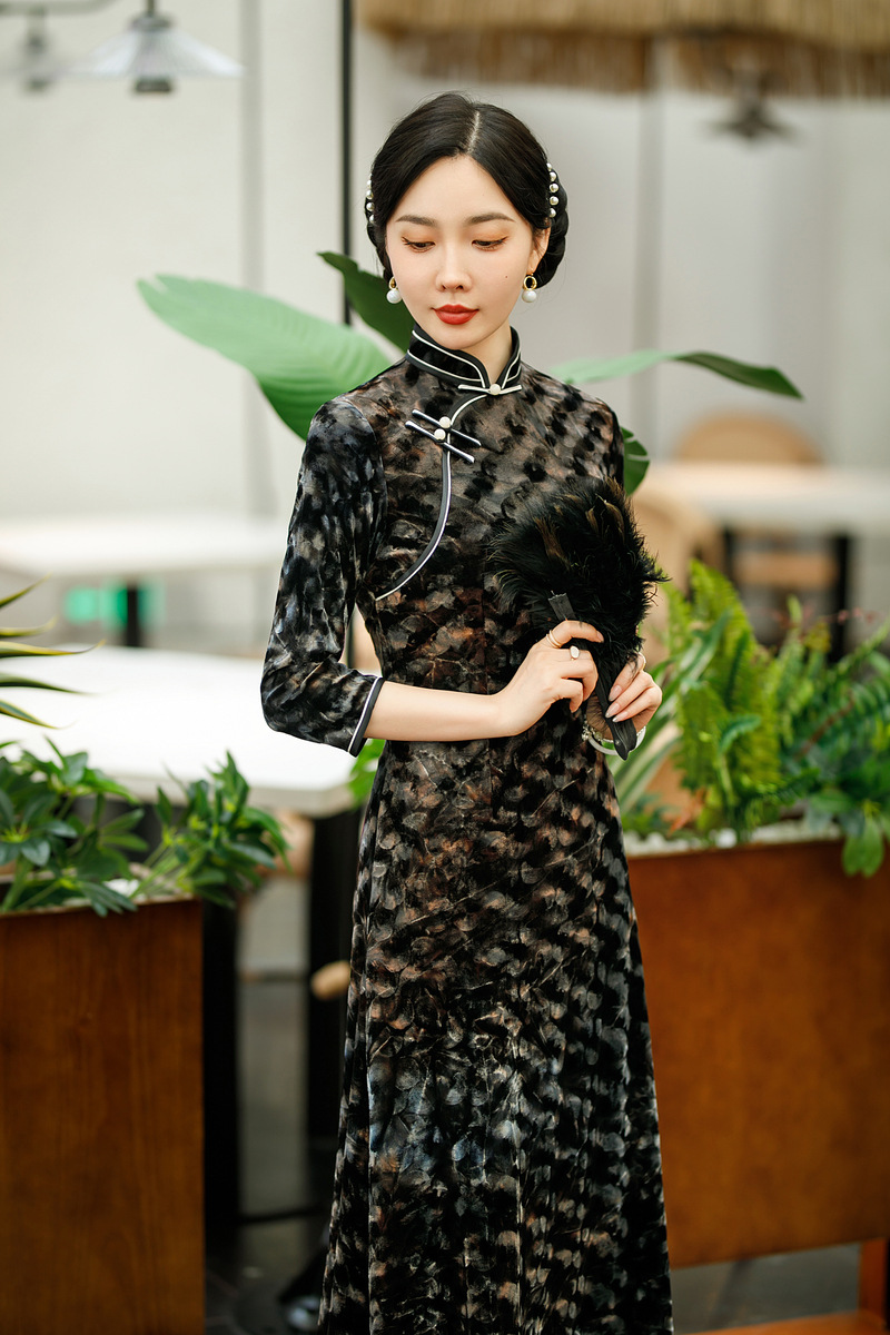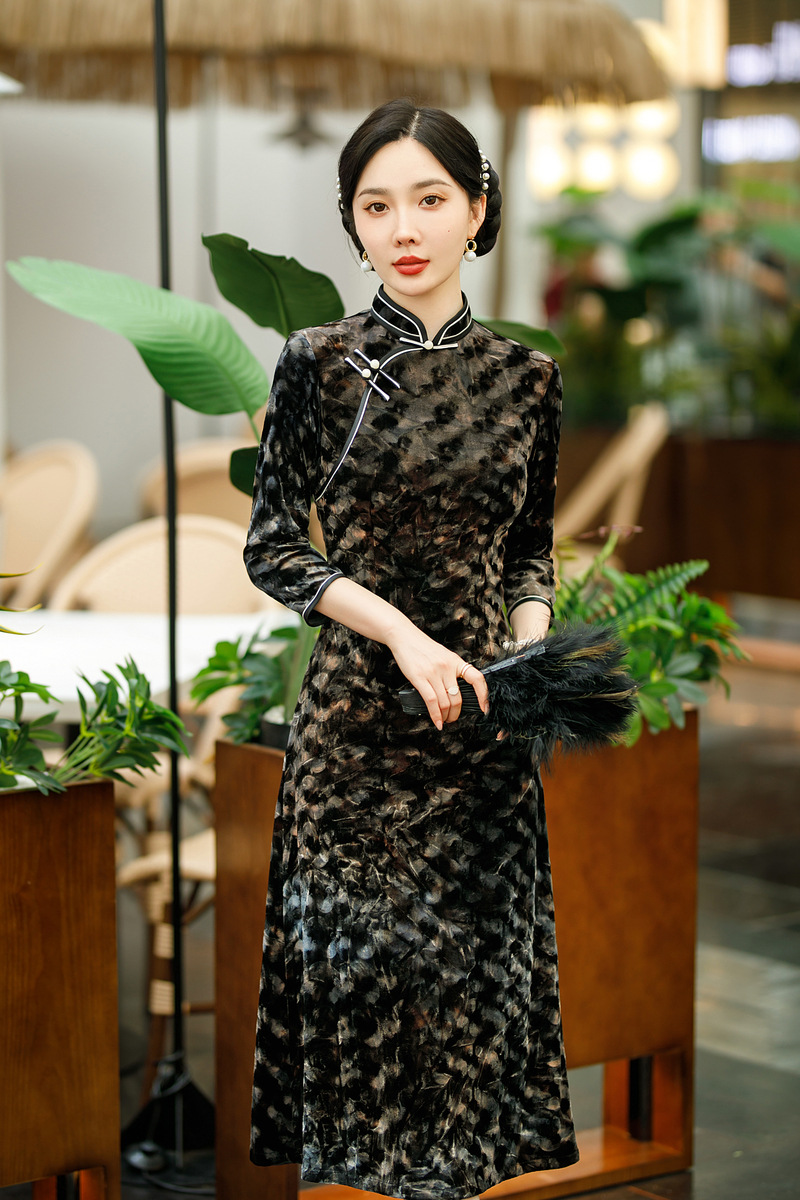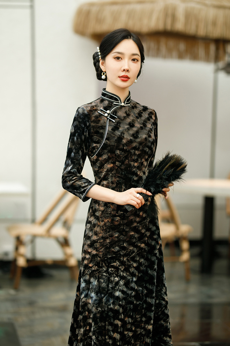 SYG-681秋新款韩国绒连衣裙长袖女高贵气质秋冬长裙子