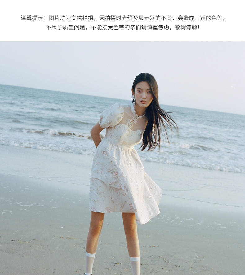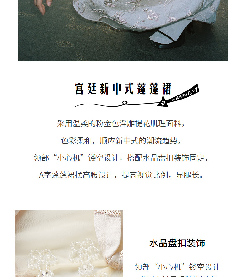 MAXRIENY宫廷新中式娃娃裙夏浮雕提花连衣裙蓬蓬裙(货号:MC87DR320)