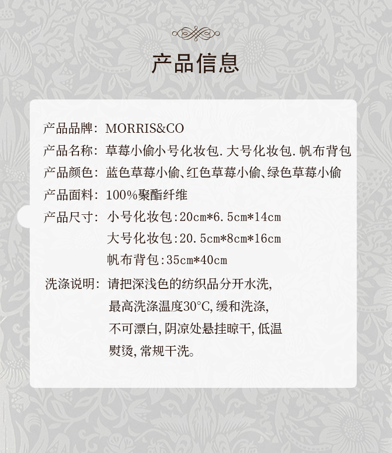 英国Morris草莓小偷化妆包/帆布包/围裙(YZ)