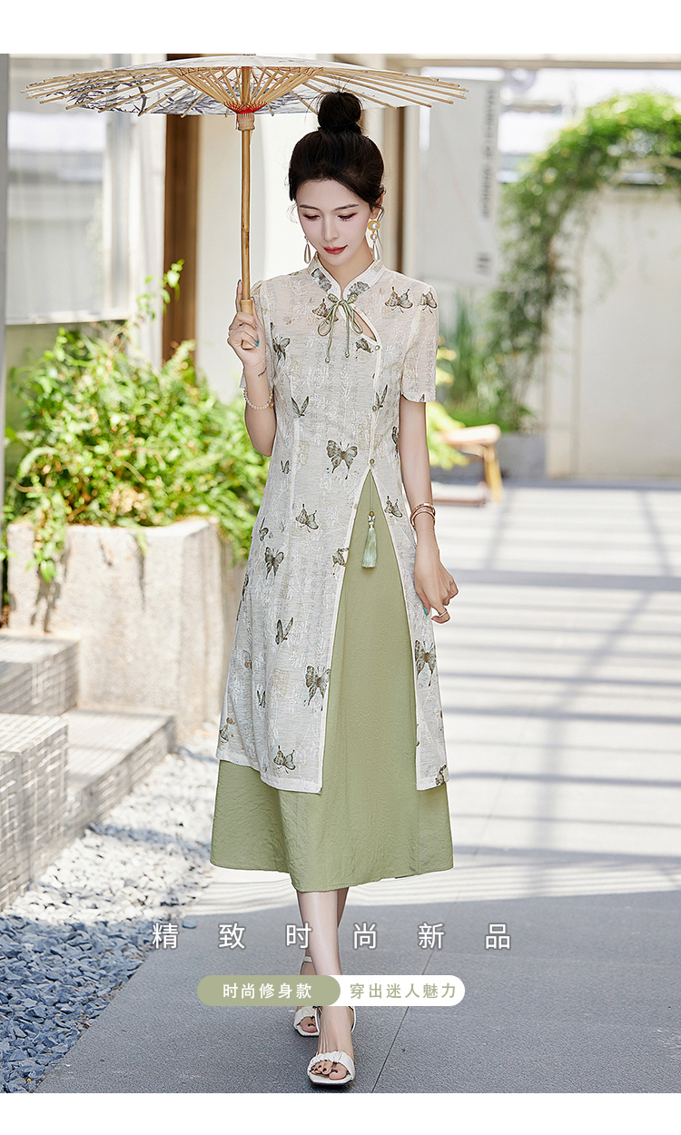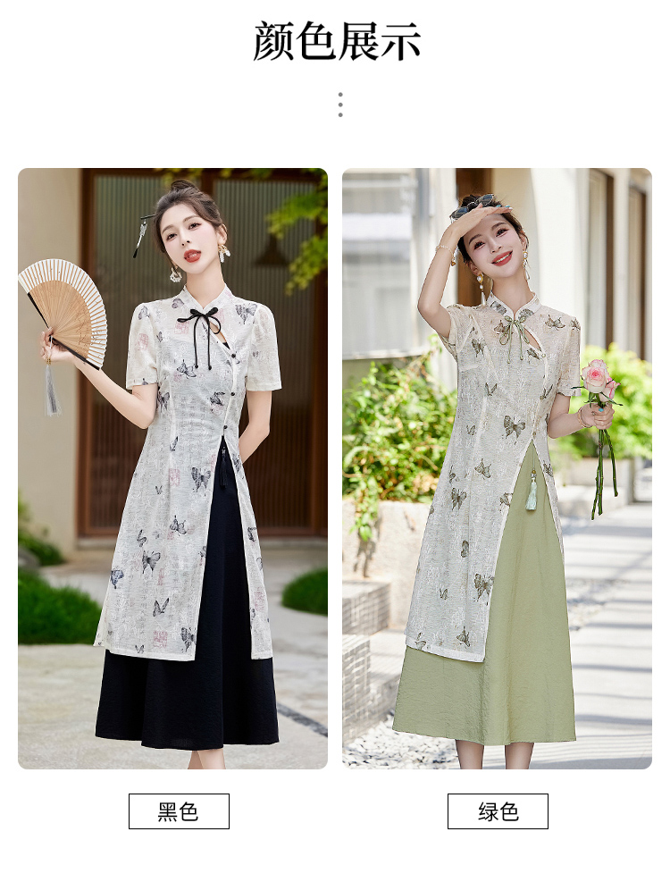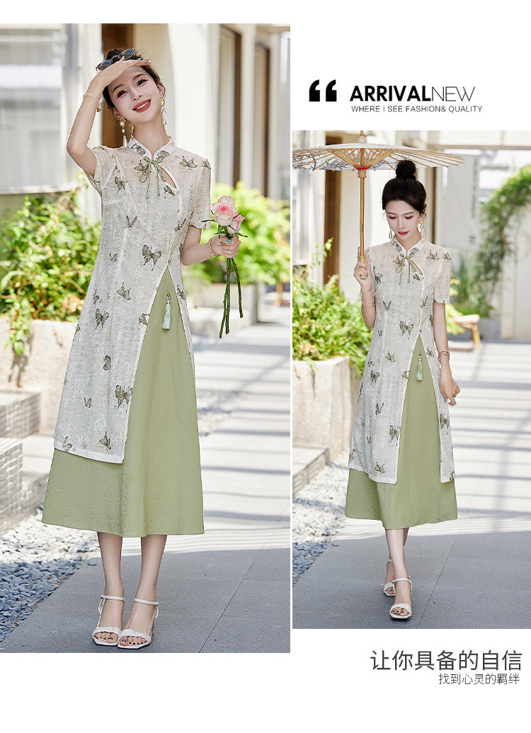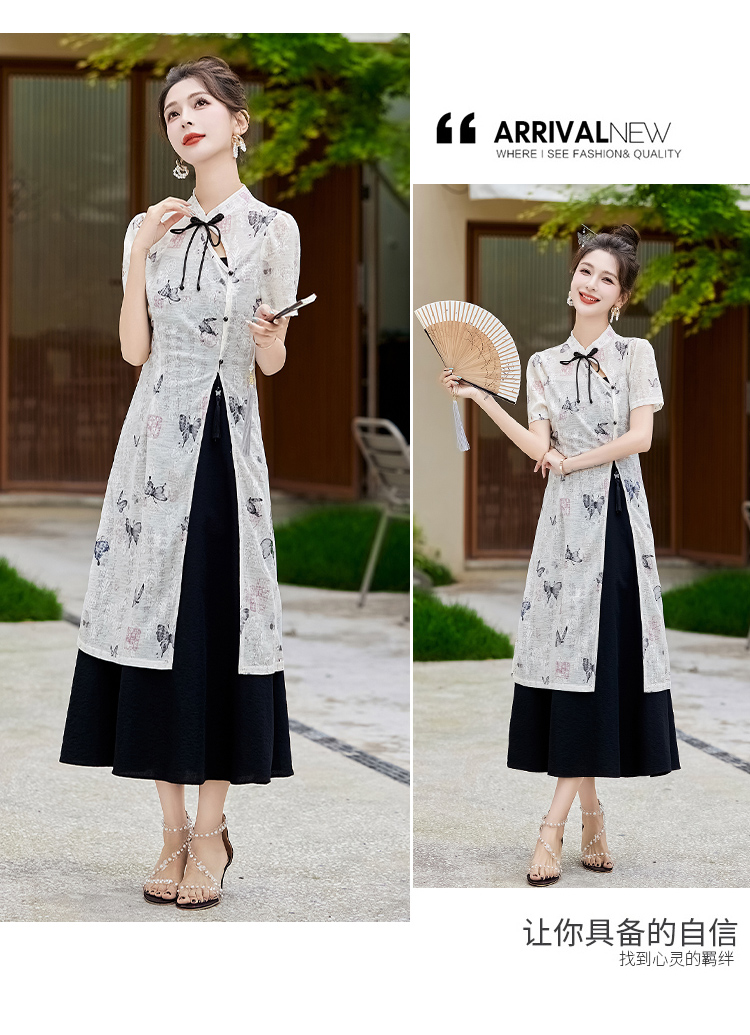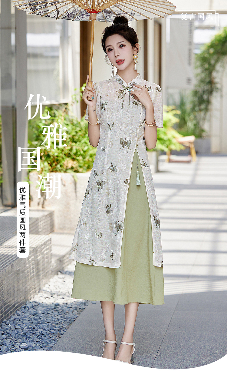 百搭新中式,蝴蝶印花连衣裙两件套HR-BX2539