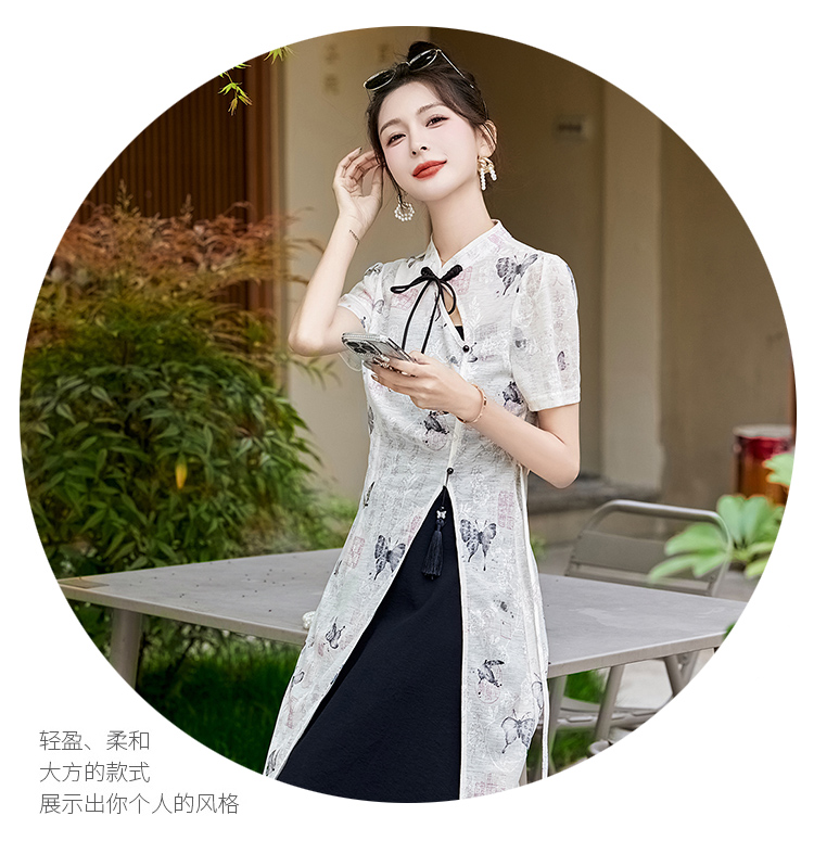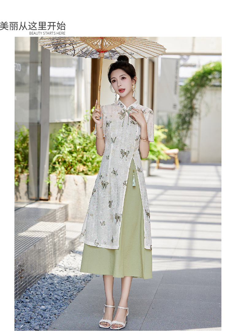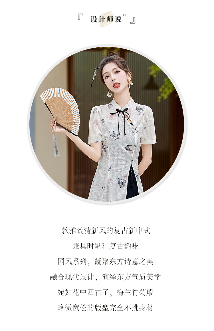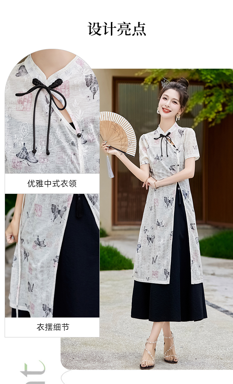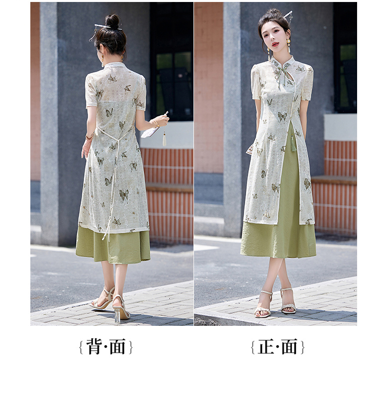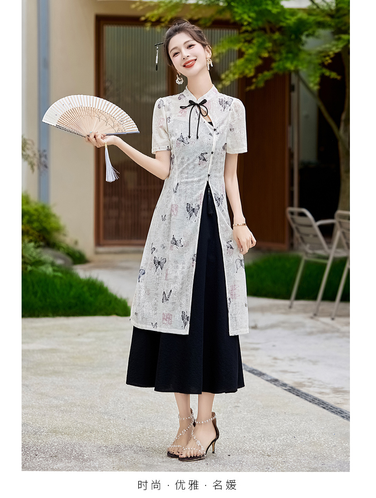 百搭新中式,蝴蝶印花连衣裙两件套HR-BX2539