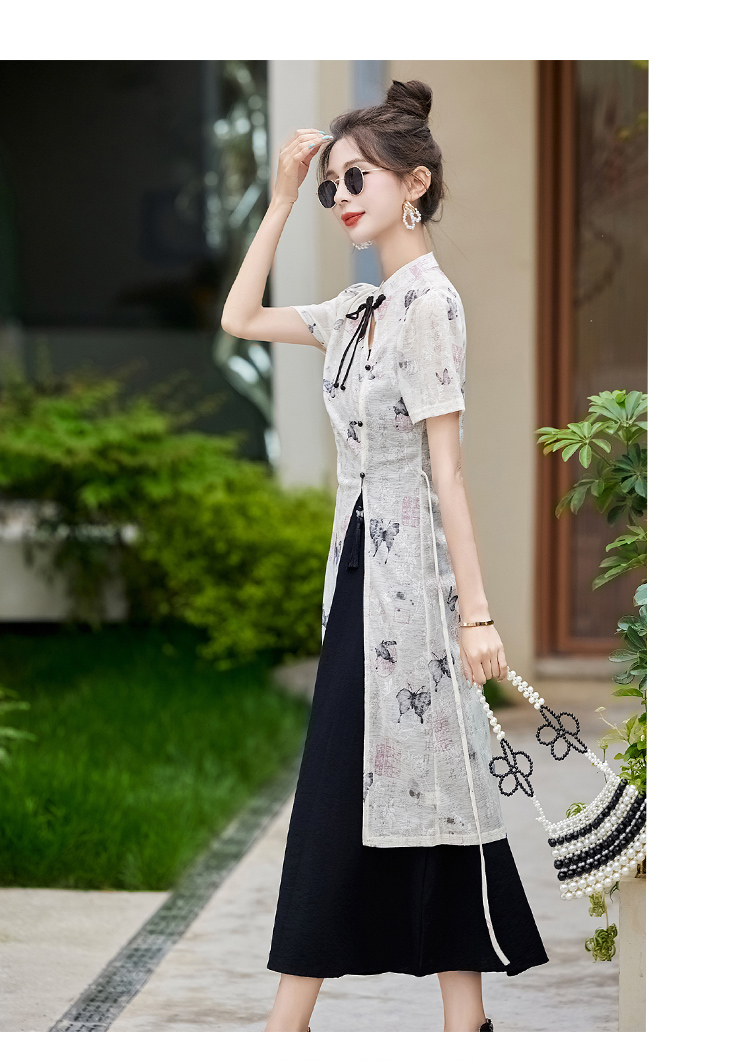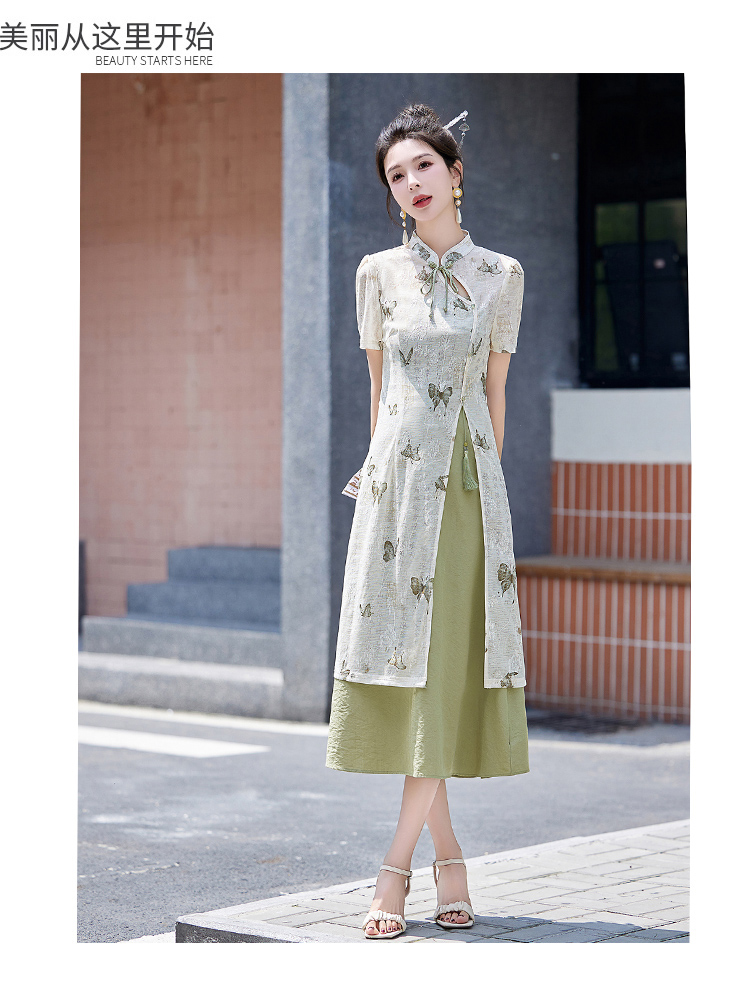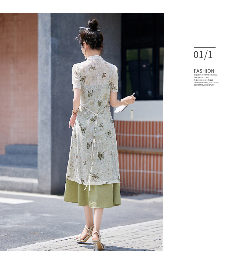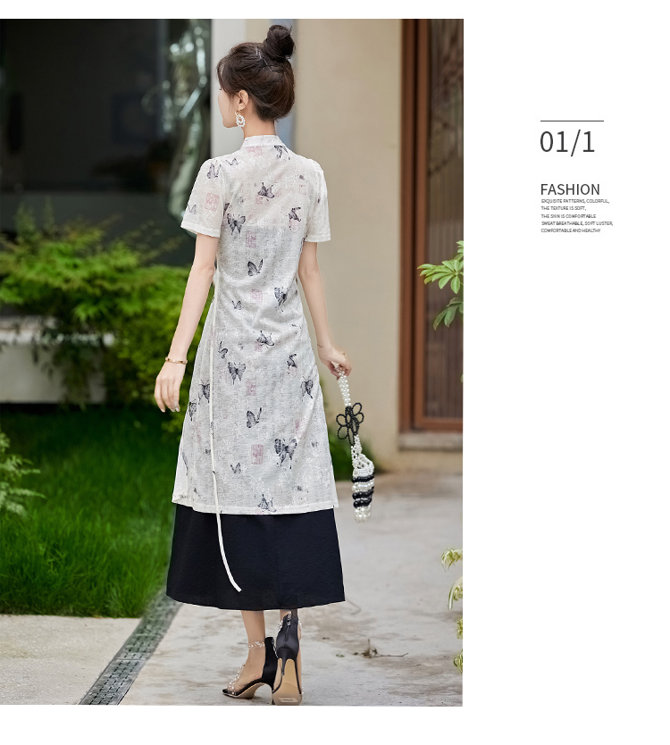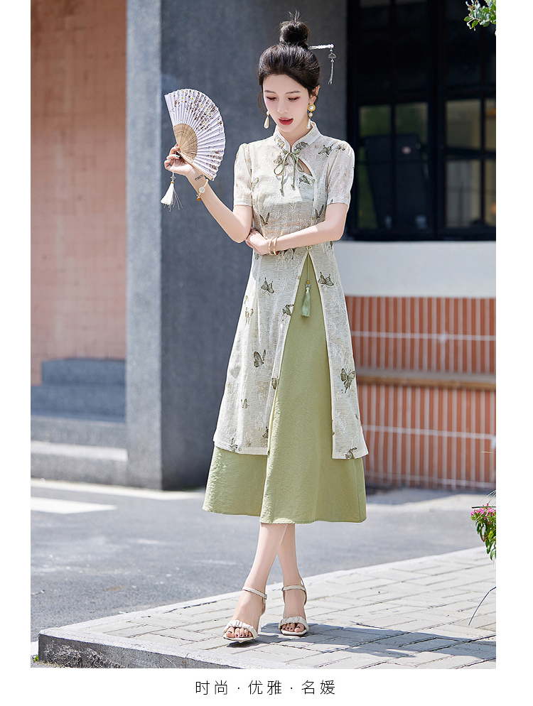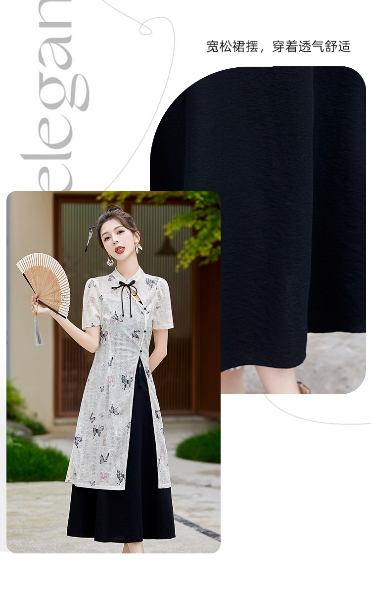 百搭新中式,蝴蝶印花连衣裙两件套HR-BX2539