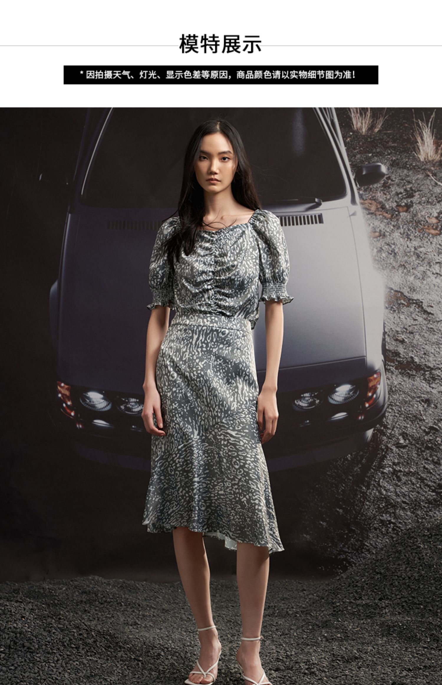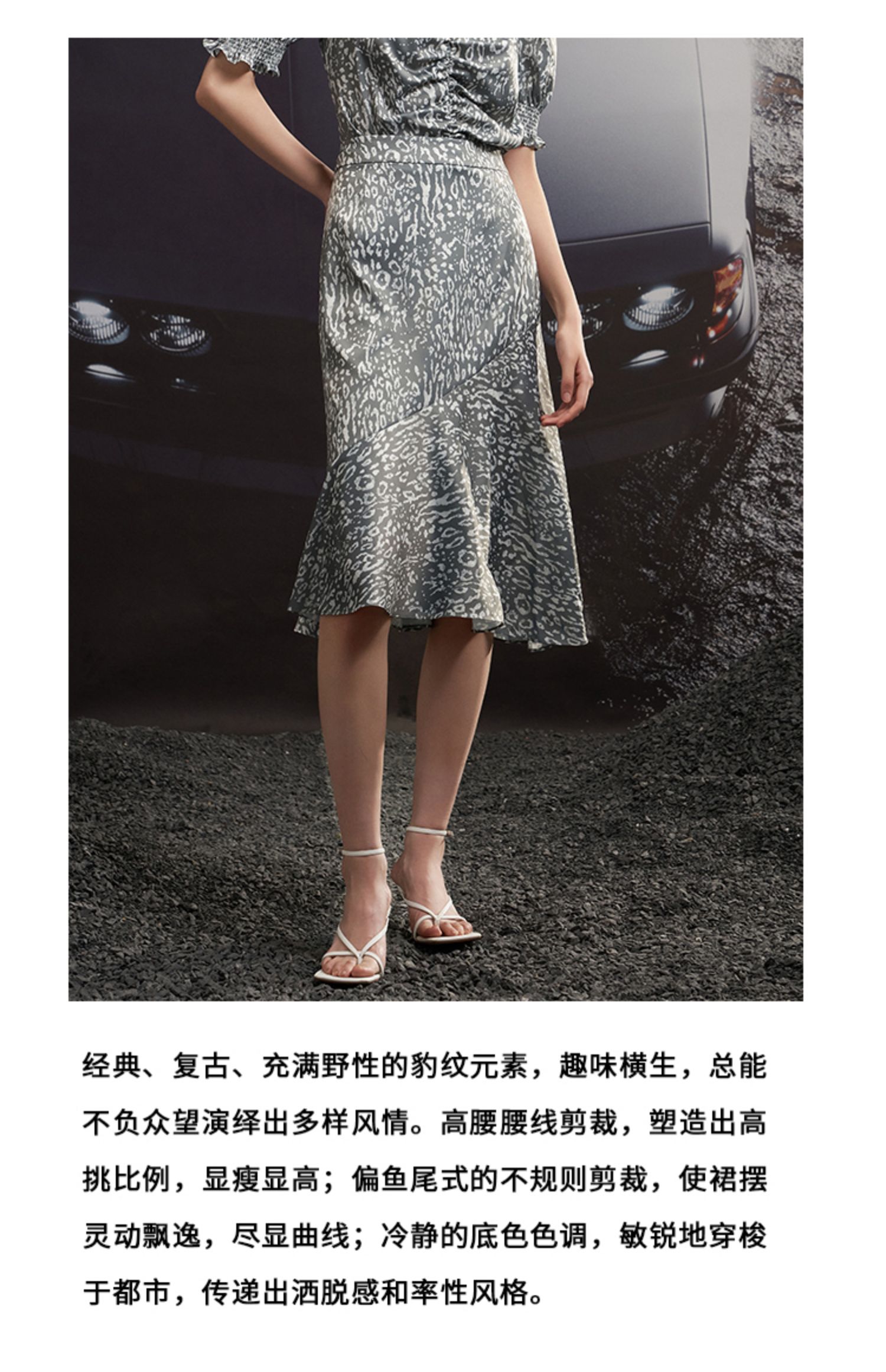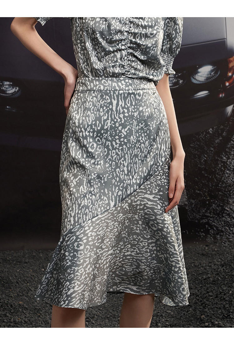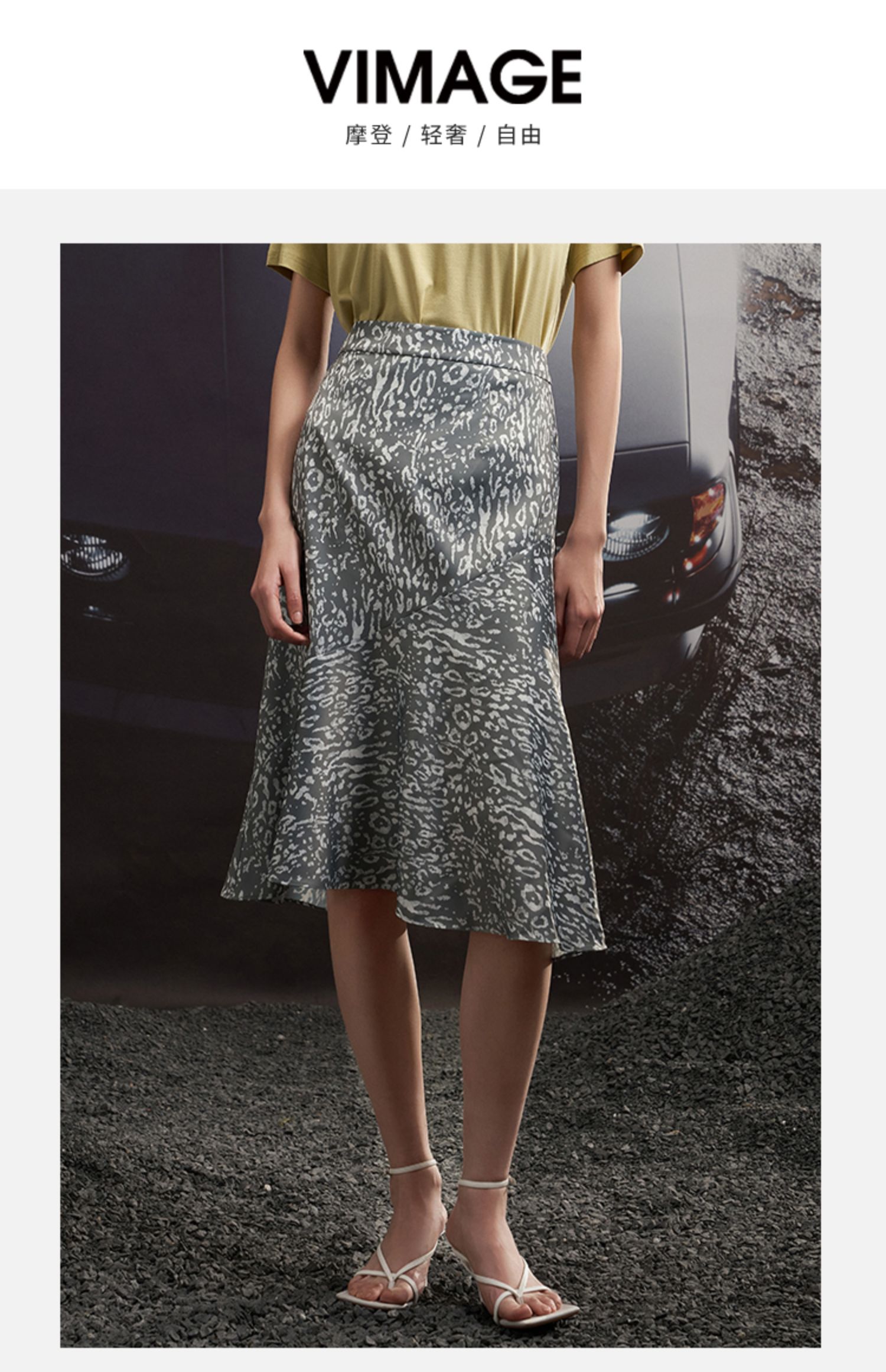 VIMAGE/纬漫纪夏季新款高腰复古印花鱼尾裙摆半身裙VB2206906