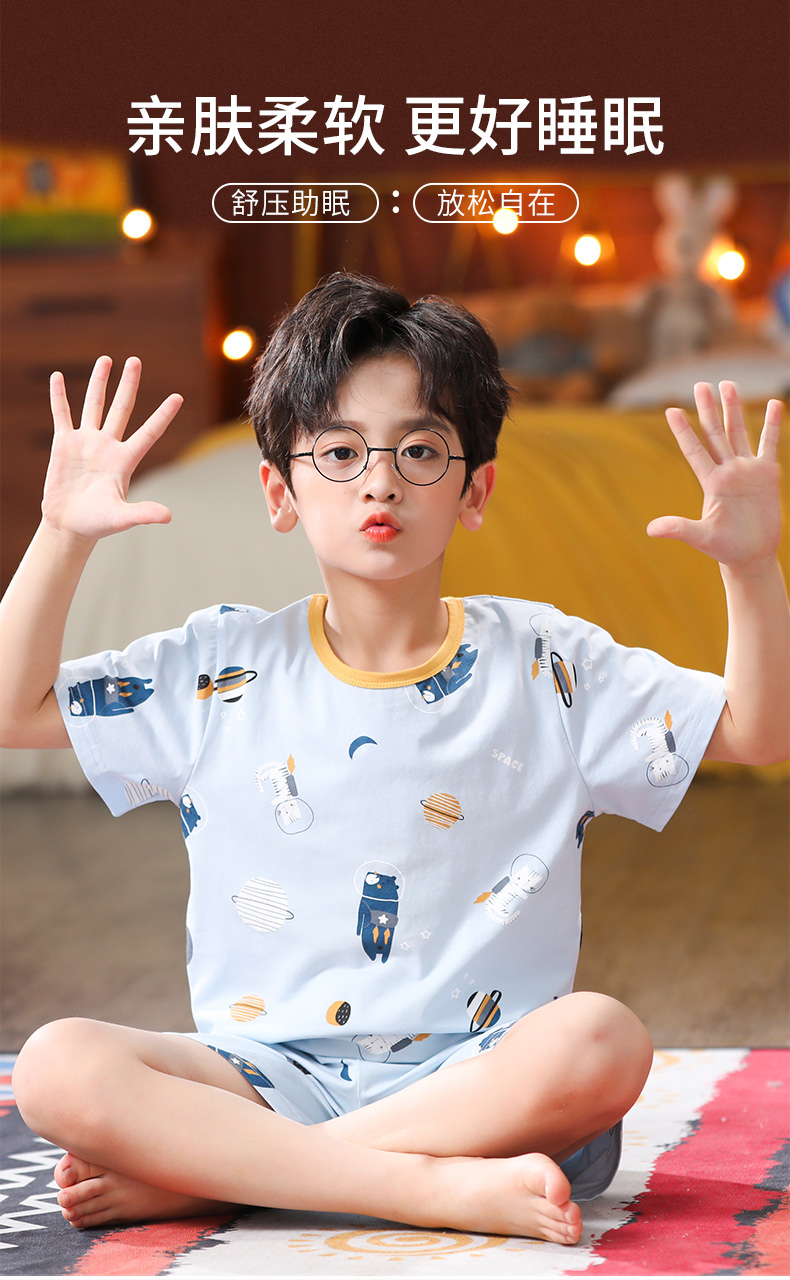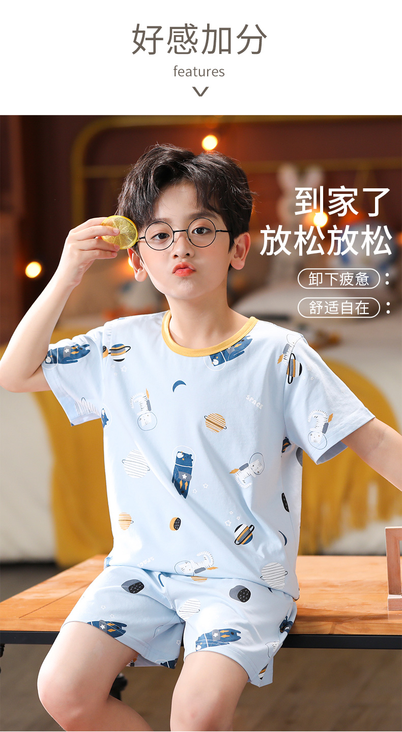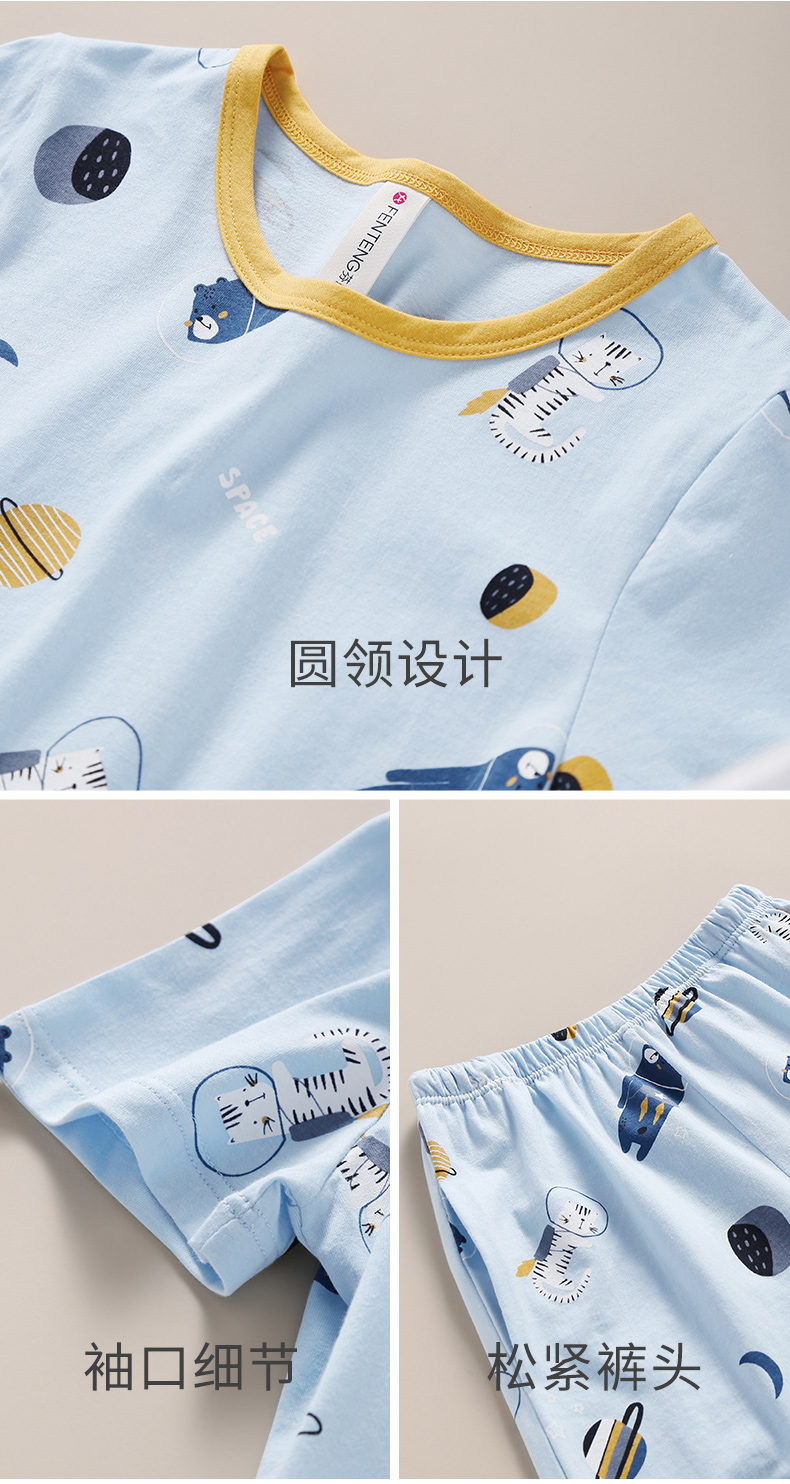 芬腾夏季男童睡衣短袖短裤宝宝纯棉薄款卡通儿童小男孩家居服套装