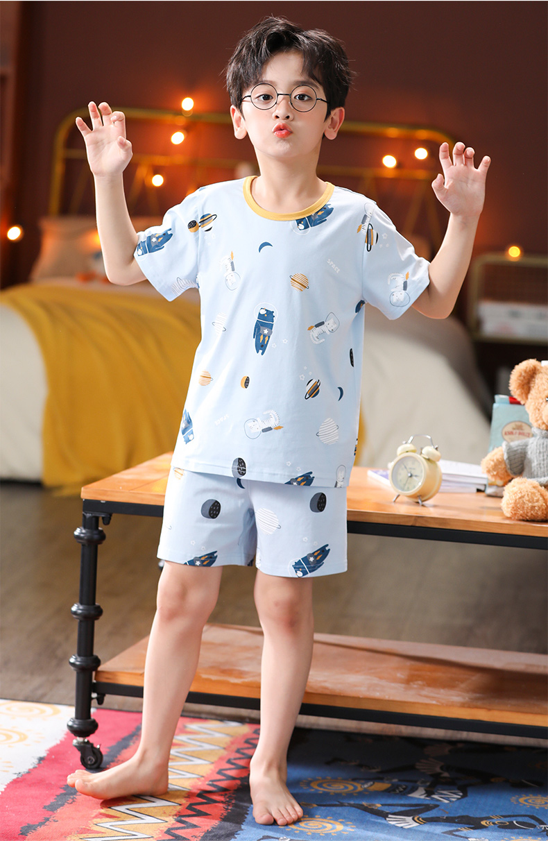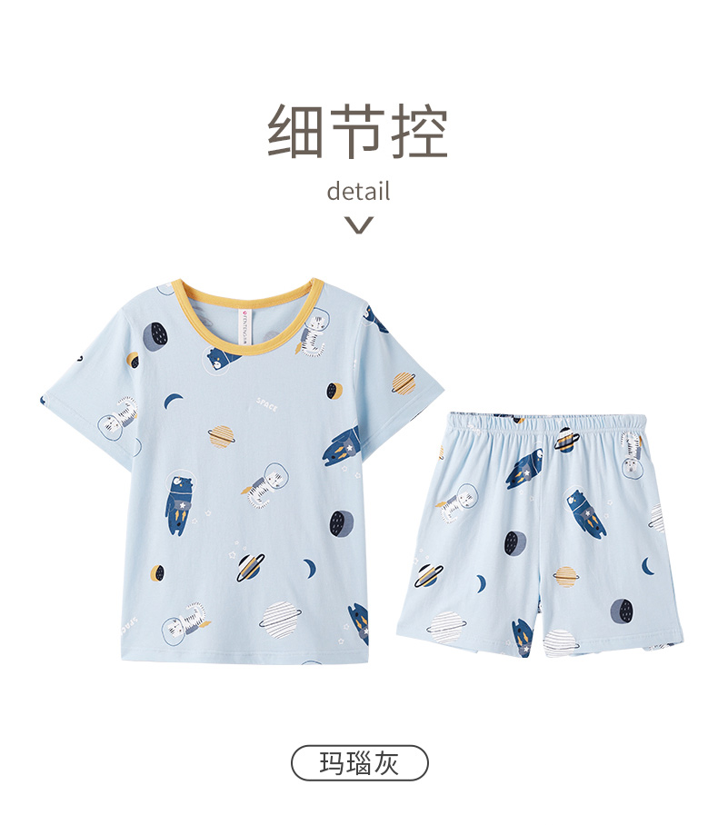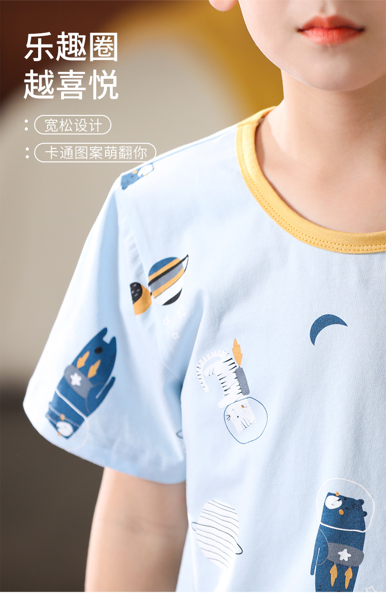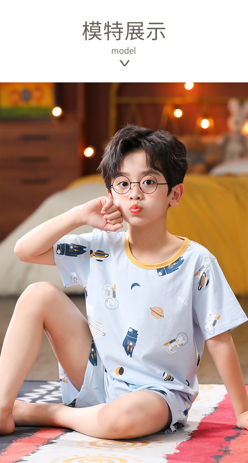 芬腾夏季男童睡衣短袖短裤宝宝纯棉薄款卡通儿童小男孩家居服套装