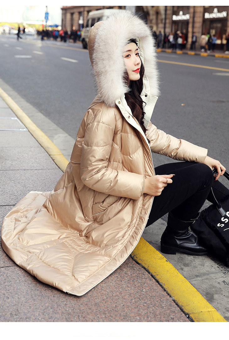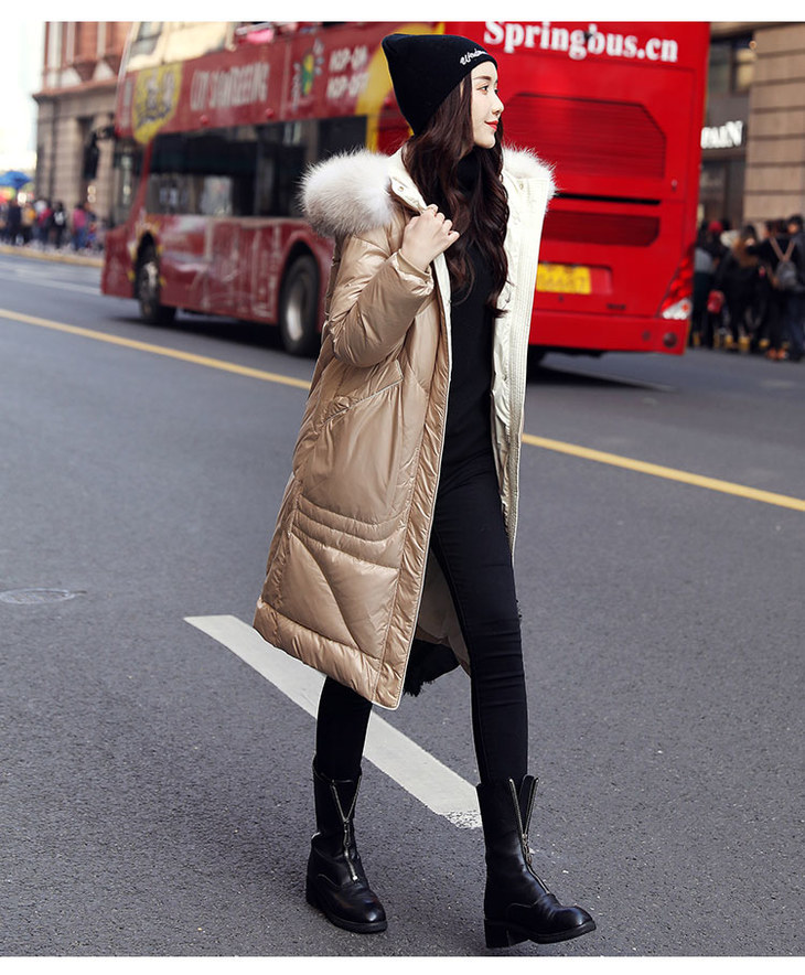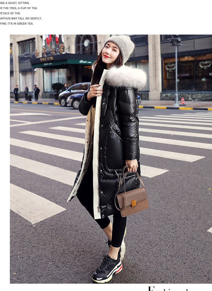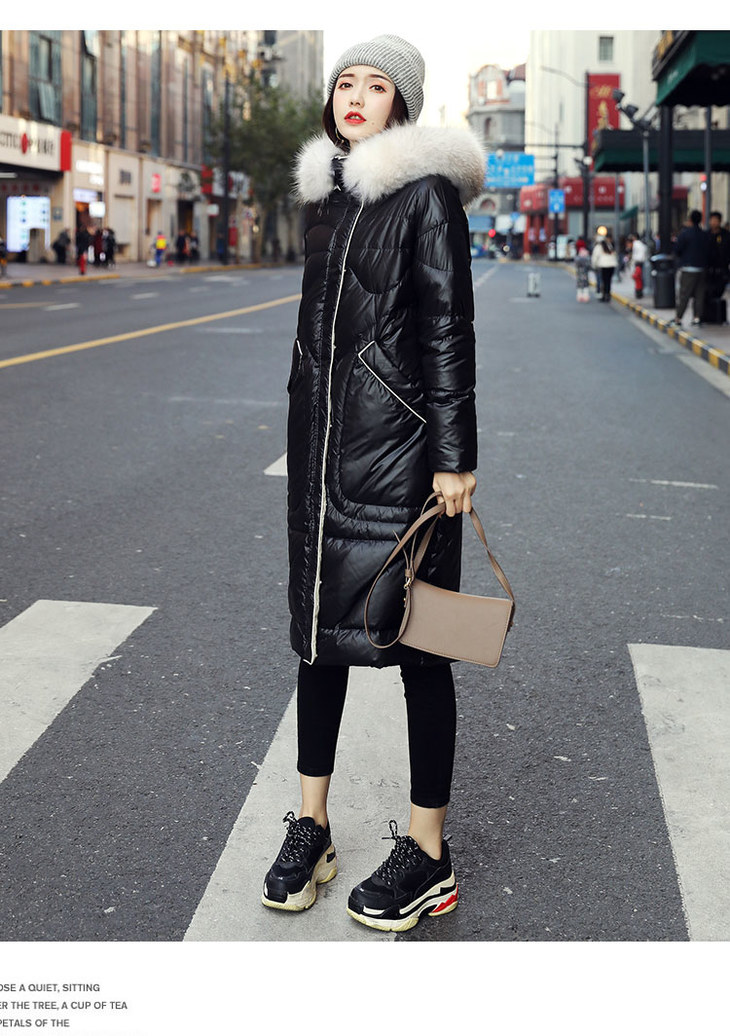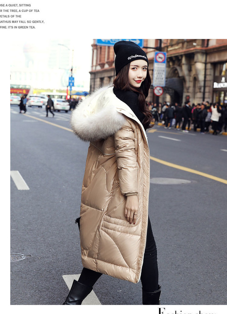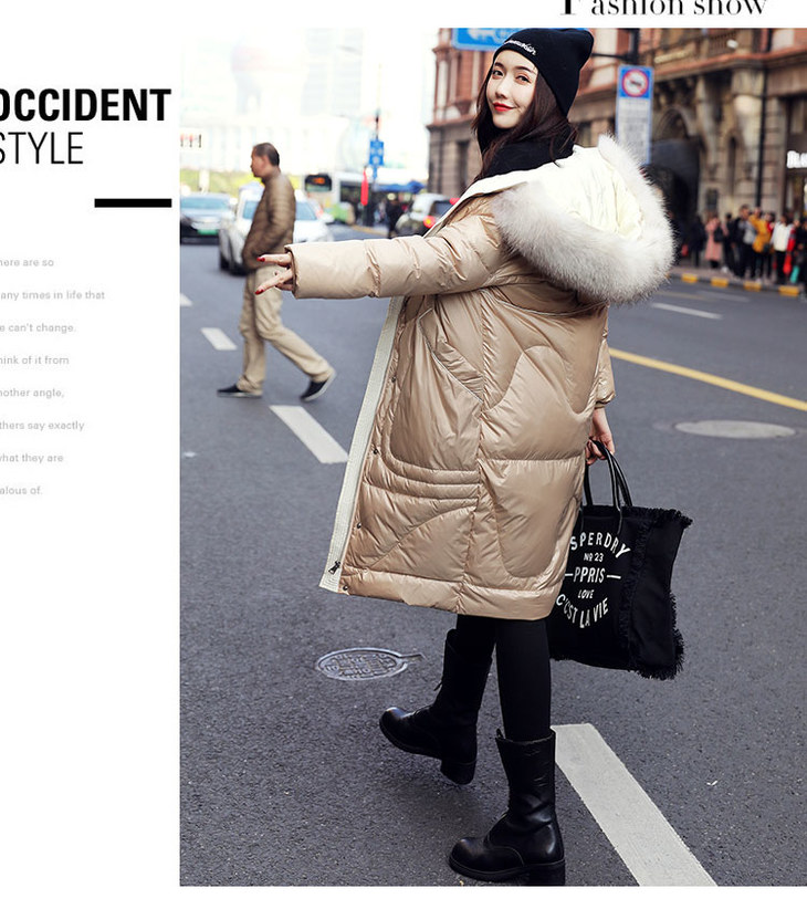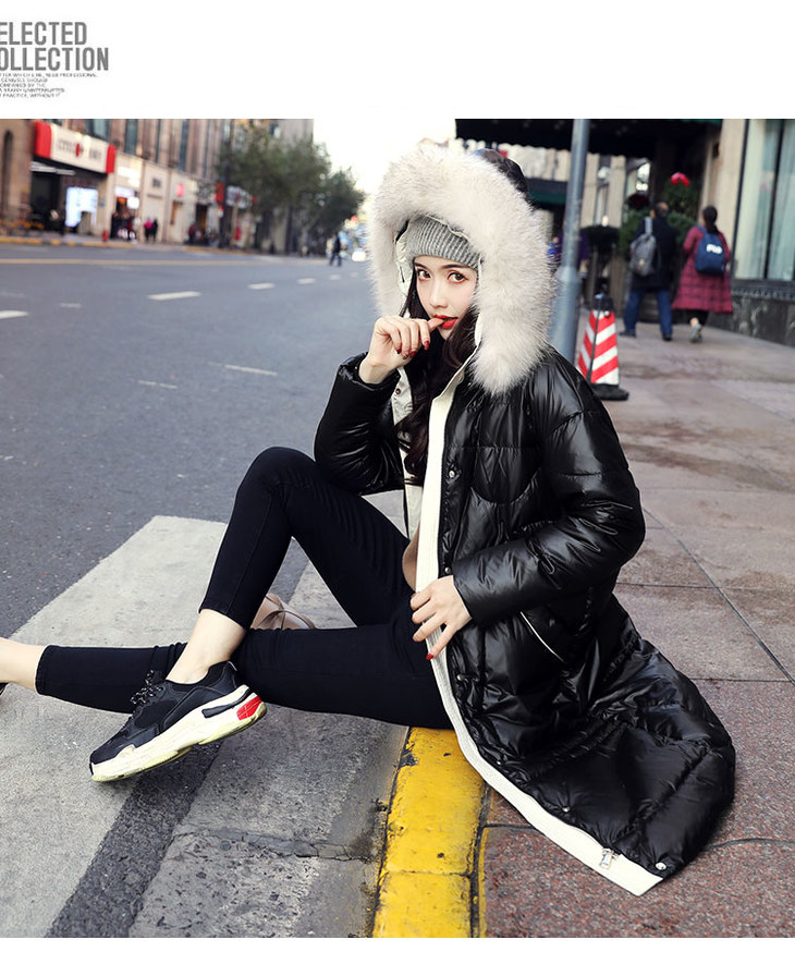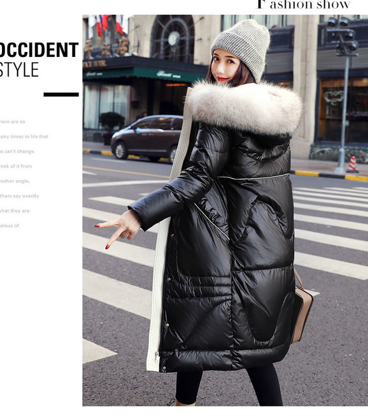 KENY-98216韩版大毛领亮面羽绒服