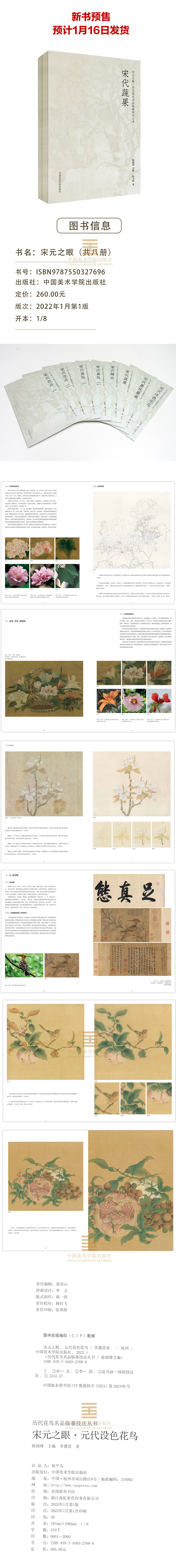 《宋元之眼·历代花鸟名品临摹技法丛书》·元代设色花鸟 墨花墨禽 宋代花鸟小品 花卉 蔬果 鳞介禽鸟 白描入门国画画法——中国美术学院出版社