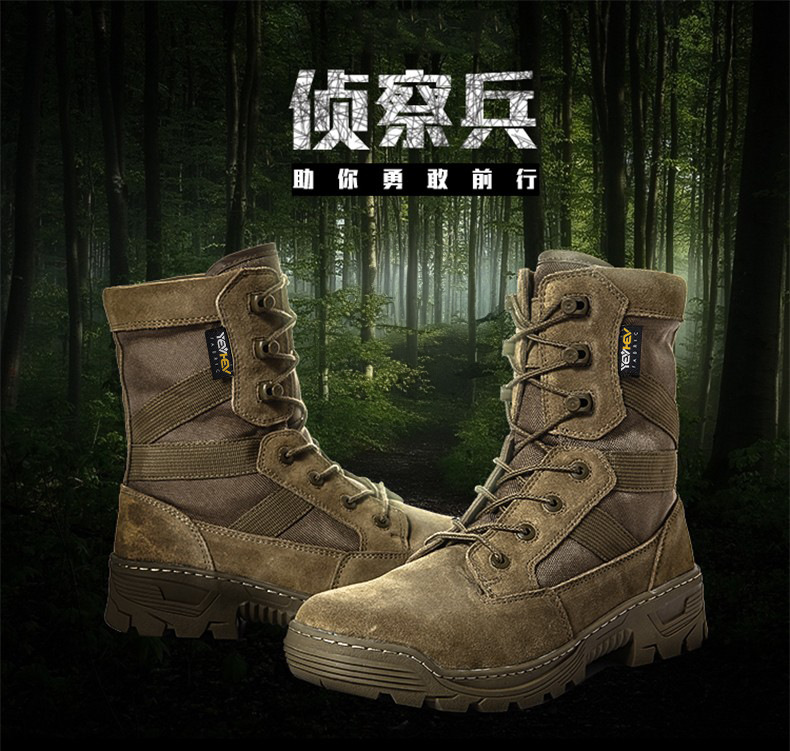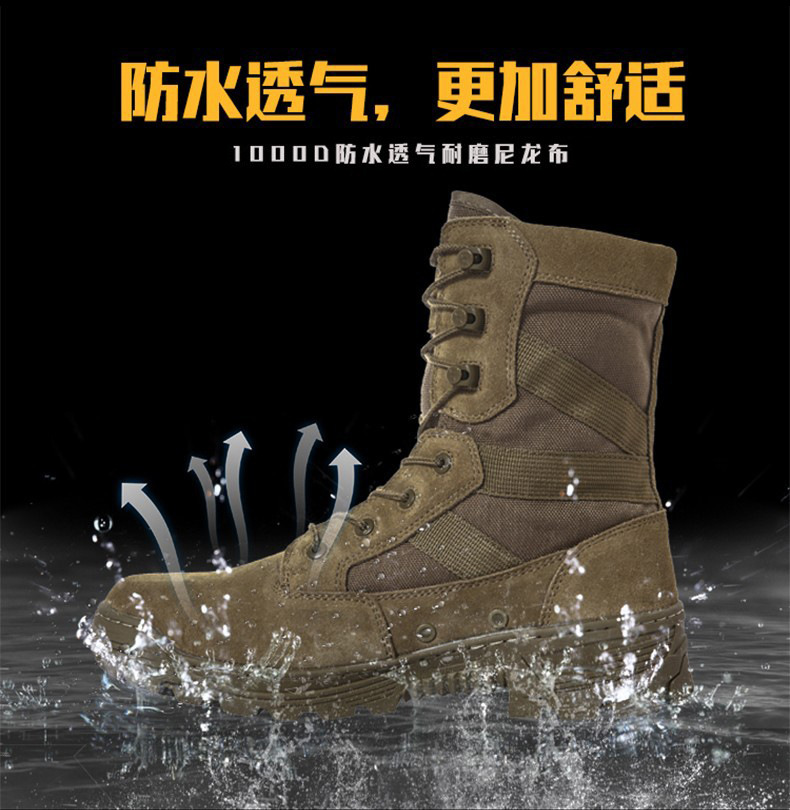 【1000D防泼透气耐磨尼龙 头层牛皮】侦察兵防滑耐磨高帮战术靴(黑色/狼棕色)ds(dq)