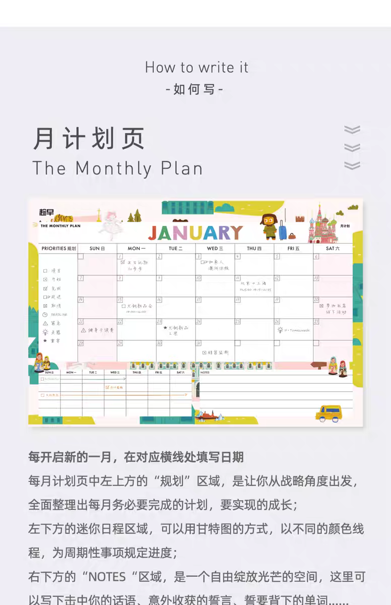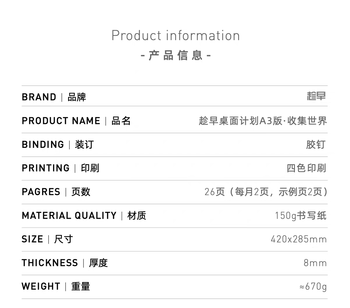 【趁早】A3自填日期桌面计划时间管理日程办公备忘追踪打卡表单