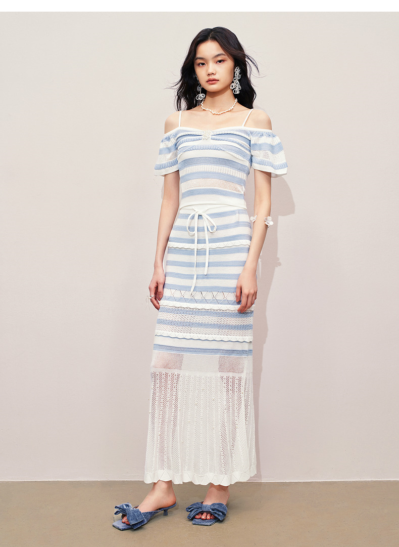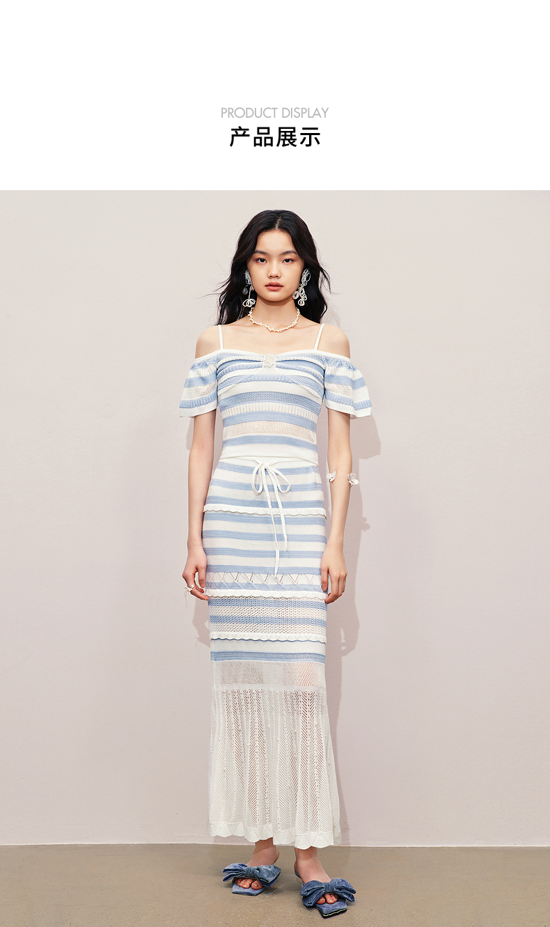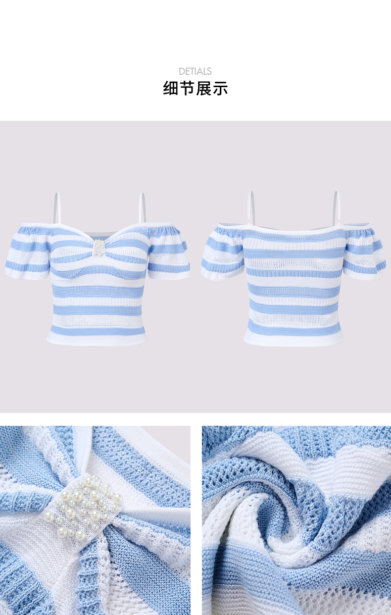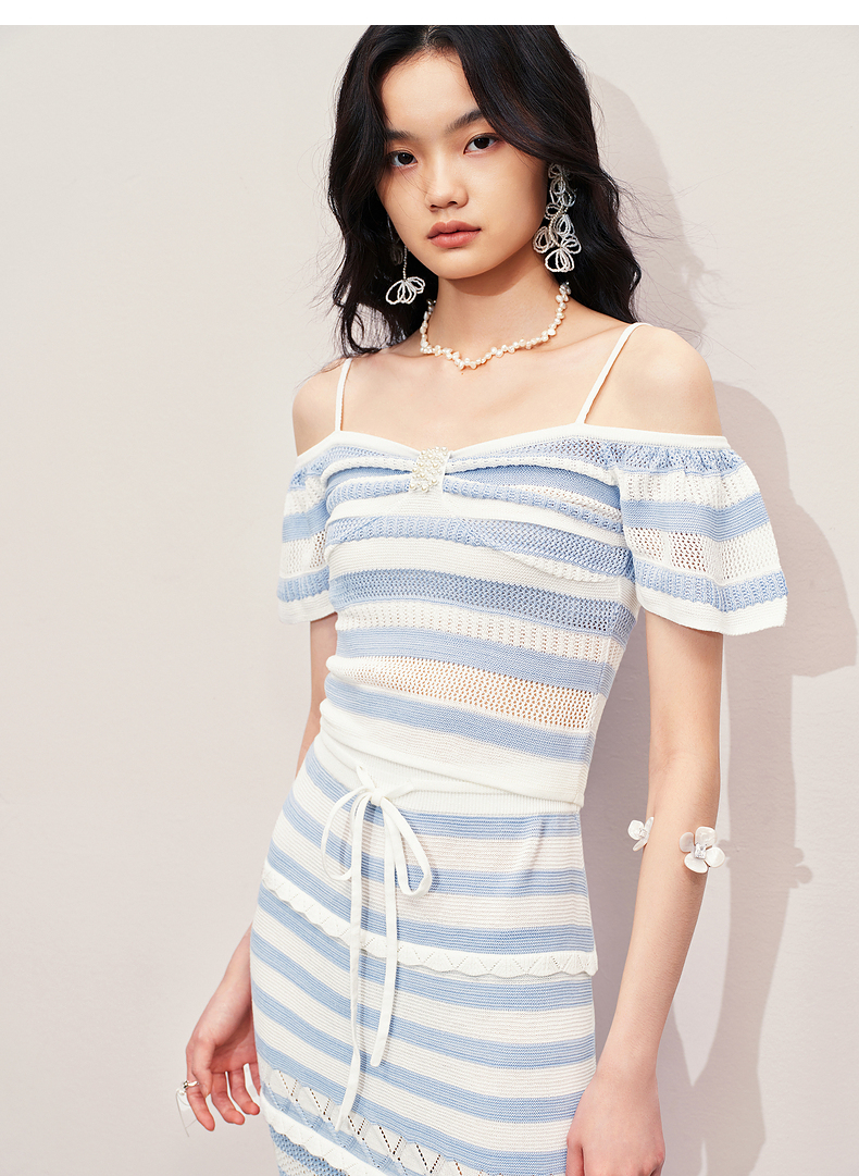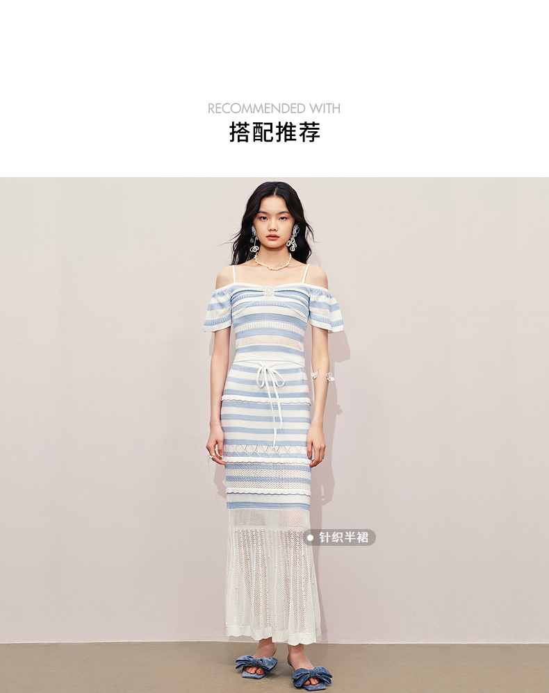 【商场同款】MAXRIENY甜美少女感一字肩吊带针织上衣女修身显瘦(货号:MS85SW264)