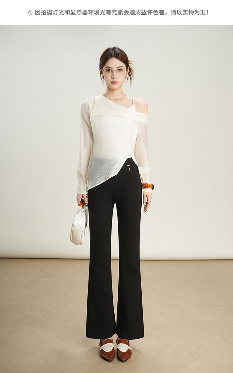 KDFY-2587时尚通勤微喇裤修身显瘦黑色长裤女2025年秋季新款高腰休闲喇叭裤 商品图4