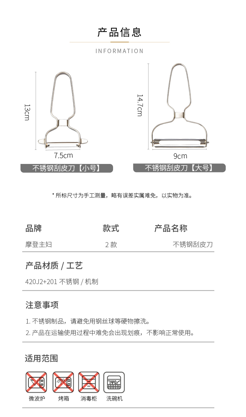 摩登主妇不锈钢削皮刀厨房去皮神器包菜刨丝器水果刨刀土豆刮皮刀