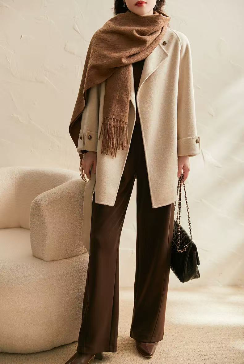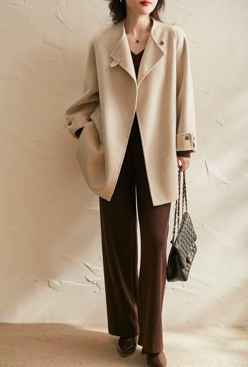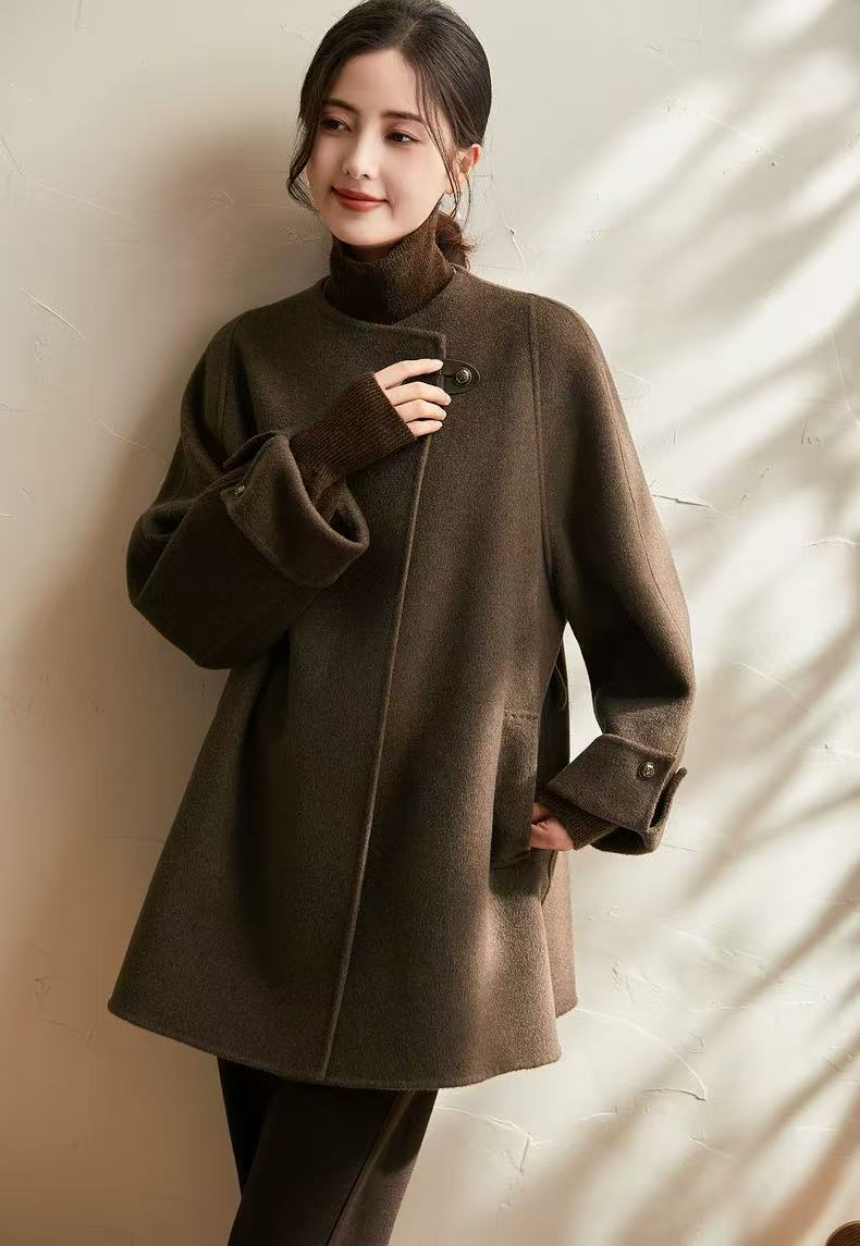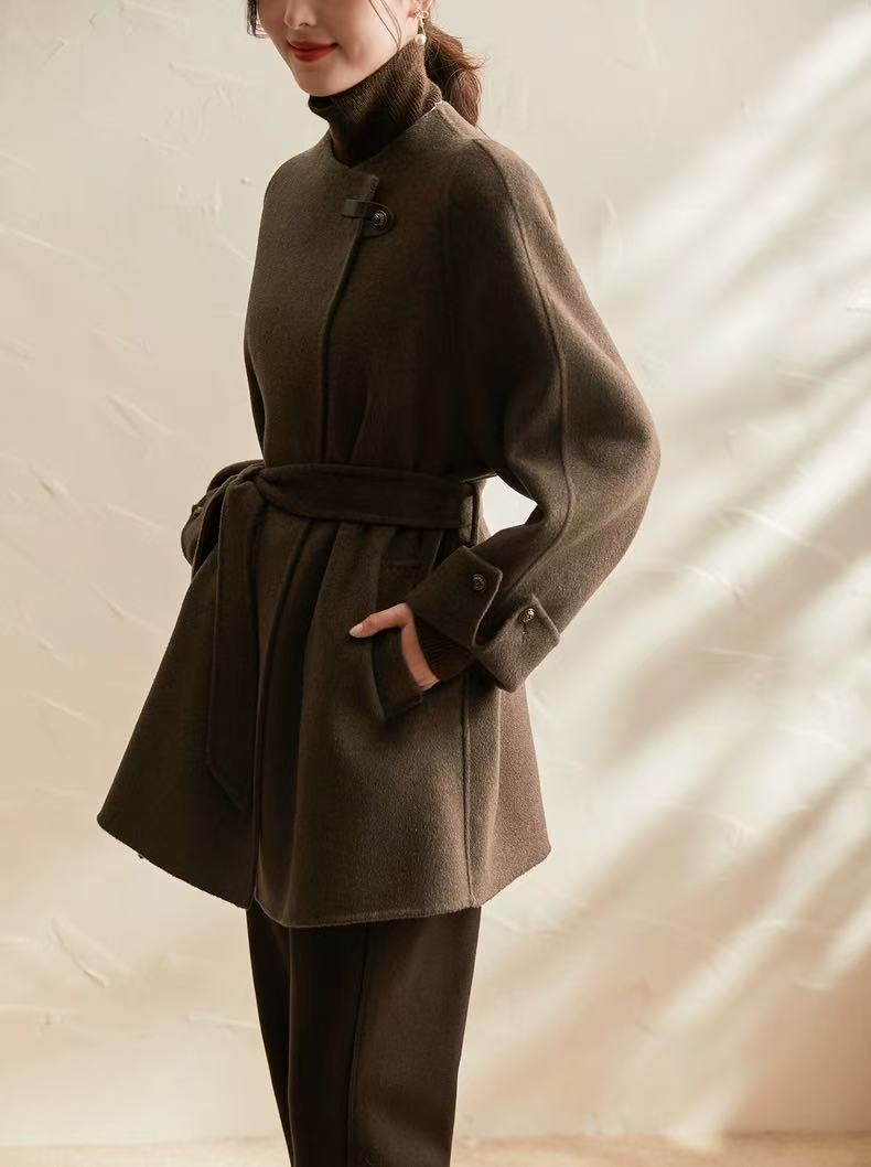 【高端系列】手工定制3086款100%羊毛皮袢一粒扣中款双面尼大衣-喜出
