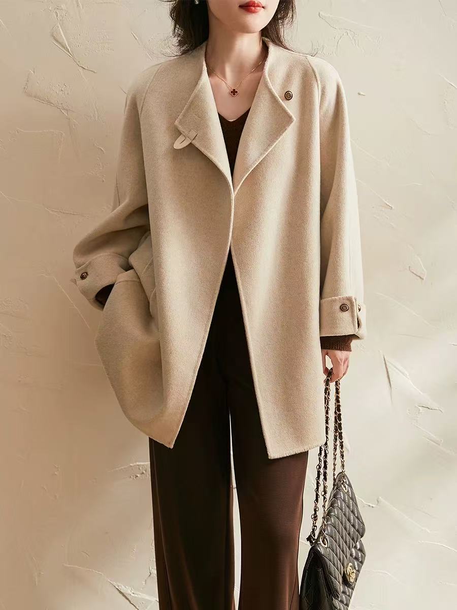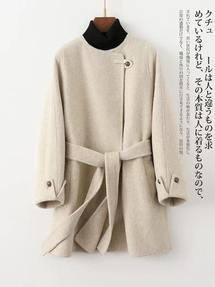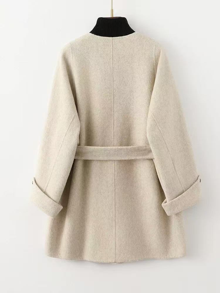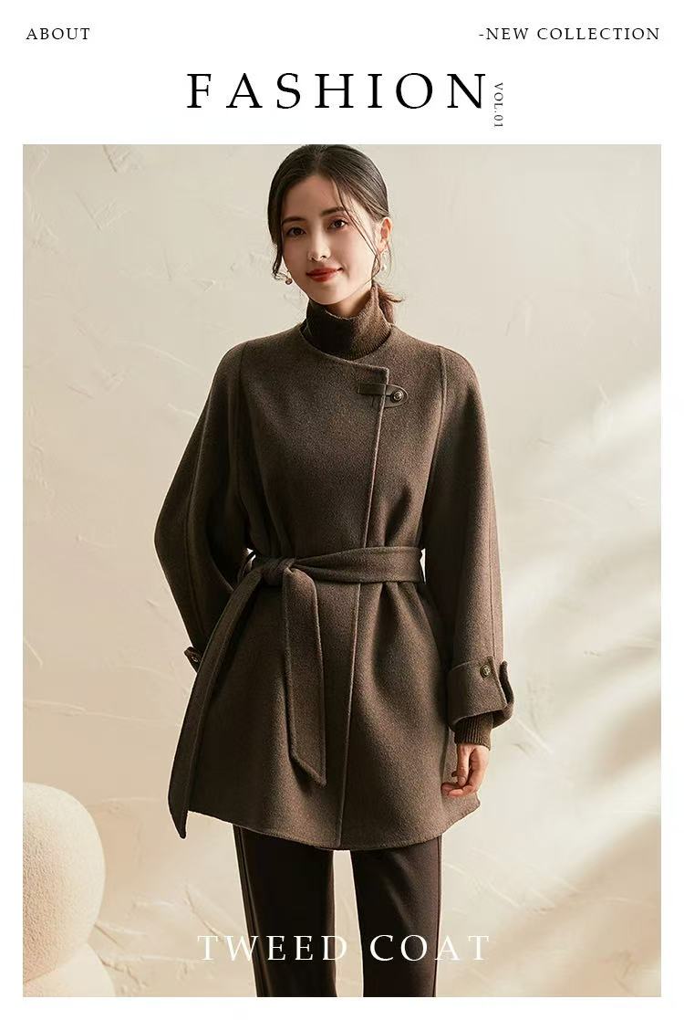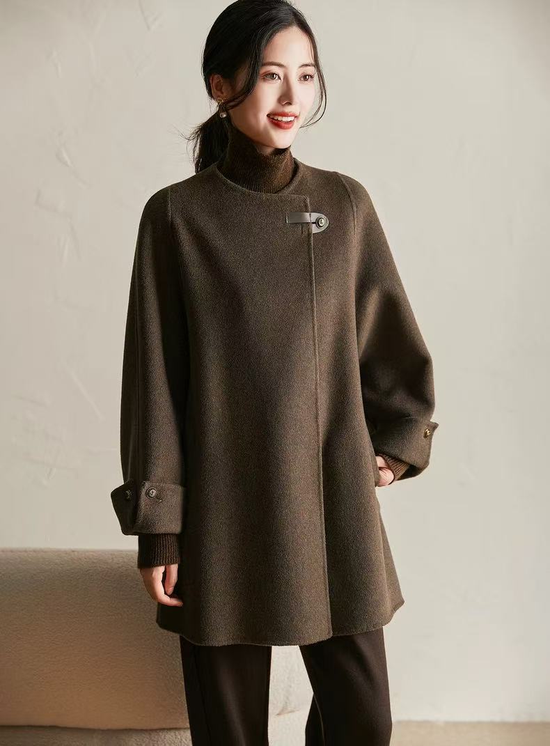 【高端系列】手工定制3086款100%羊毛皮袢一粒扣中款双面尼大衣-喜出